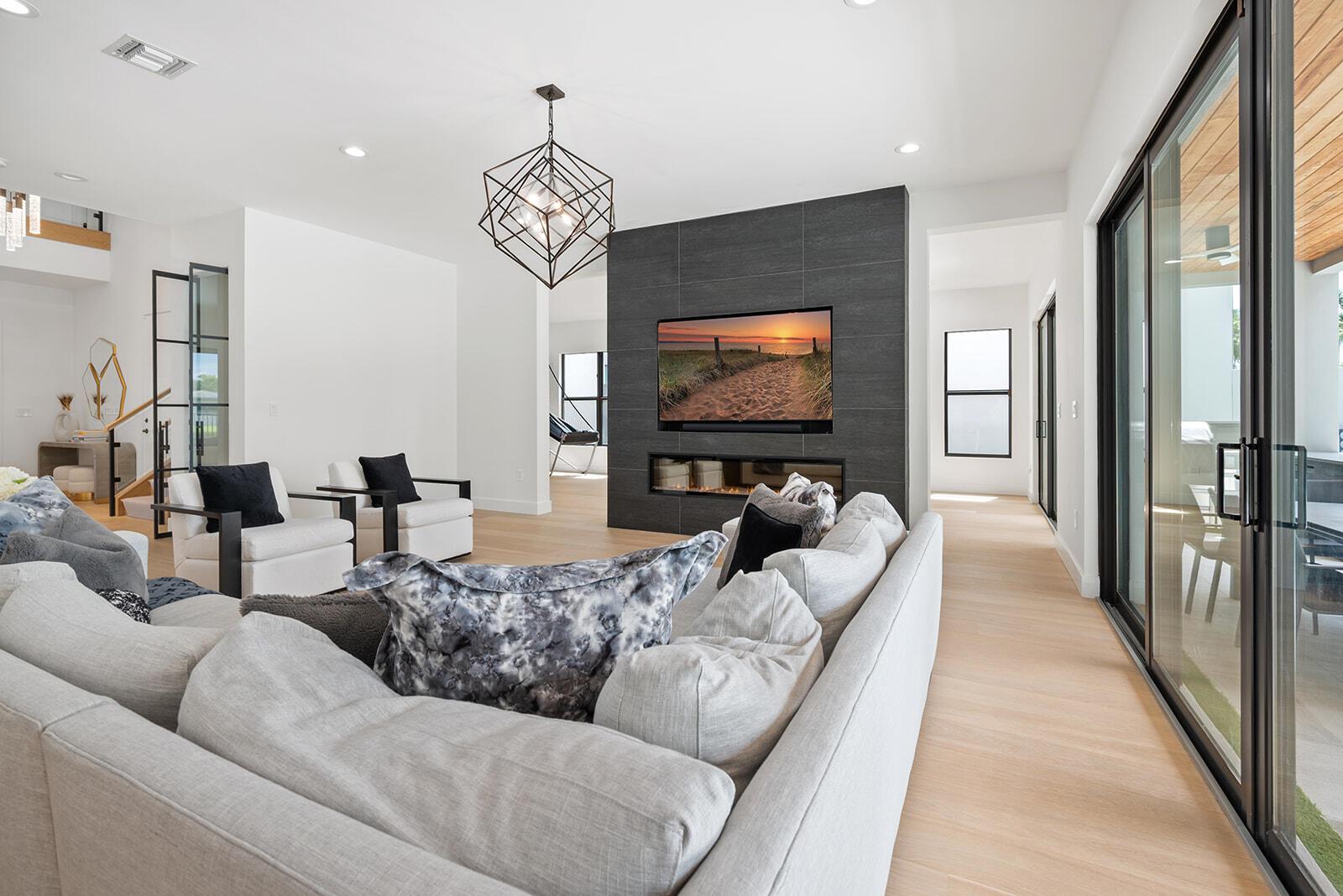 Meticulous Contemporary Maldives Premium lakefront home including a heated saltwater pool/spa with a lush landscaped backyard full turf, a putting green and a beautiful summer kitchen, a true entertainers delight. An expansive layout containing five bedrooms plus a den, clubroom, state-of-the-art home theater , loft, and spacious 4-car garage and an expanded driveway. Gorgeous custom wood floors throughout, beautiful glass staircases, built in closets, walk in pantry all included in this stunning home. ! Enjoy the amazing Country Club like amenities at the Lotus Clubhouse. Featuring pickelball, tennis, indoor/outdoor basketball, splash pad, game room,