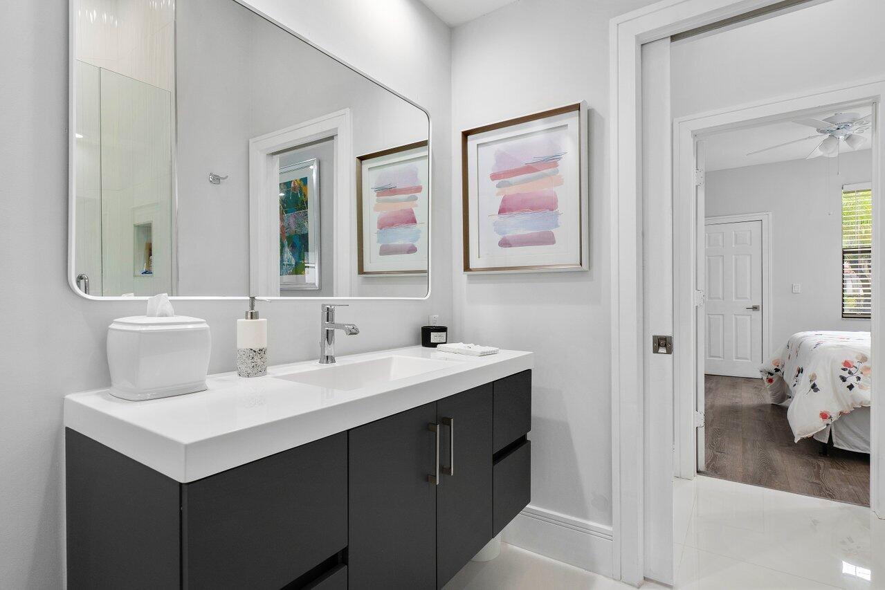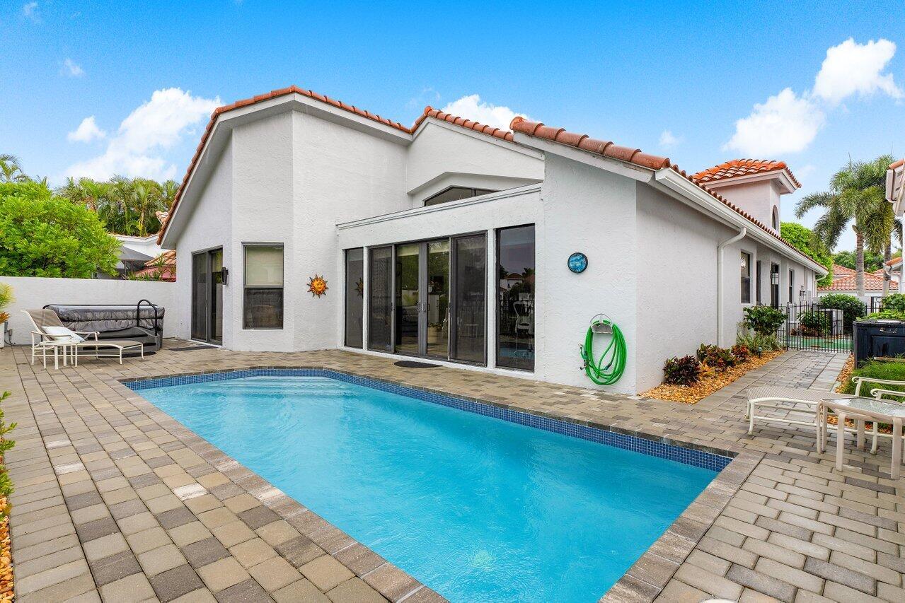 Nestled within the exclusive Broken Sound Country Club, this Fairway Landing residence embodies luxury living with its refined aesthetics, modern amenities, and meticulous attention to detail. Renovated in 2023, this home features a brand new roof, impact windows and doors and beautiful 36-inch porcelain tile floors. Inside, the kitchen showcases sleek, all-wood cabinets paired with stainless steel appliances. The open-concept design seamlessly integrates the great room, kitchen, and dining area, ideal for entertaining or daily living. The exterior features new pavers leading to a patio and private pool that overlooks a beautifully landscaped garden. Don't miss the opportunity to own your slice of paradise in one of Boca Raton's most prestigious communities.
