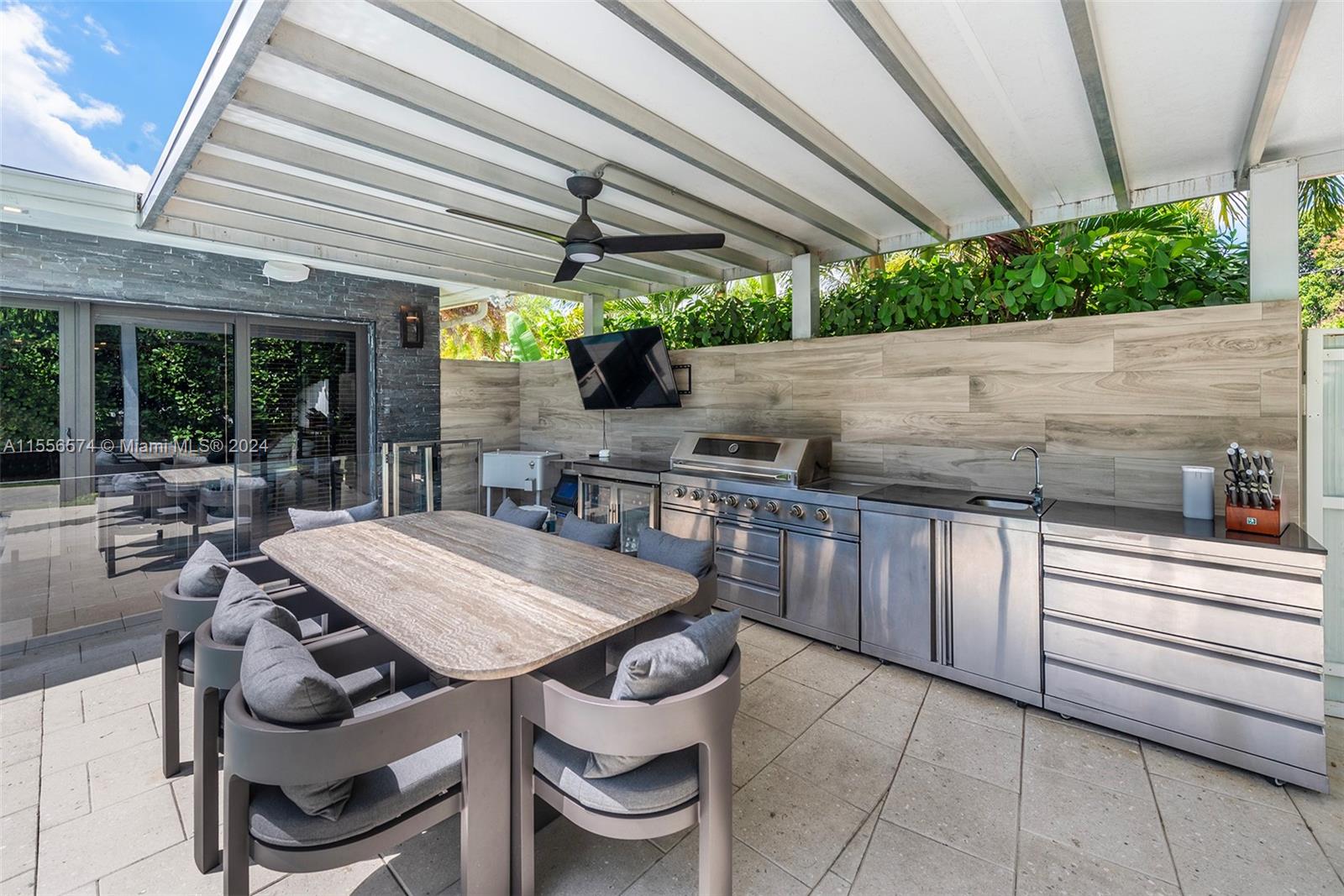 Luxury living in this highly desirable Sky Lake community, where family and schools are paramount. This one-story home is completely renovated and is situated on a spacious corner lot, with lush / mature landscaping offering a tranquil tropical oasis and unparalleled privacy. The outdoor space is an entertainer's delight, featuring an expansive pool, jacuzzi, a well-appointed summer kitchen, and ample side yard for gatherings and relaxation. Meticulously crafted, including motorized blinds, impact windows/doors and porcelain flooring throughout. Italkraft Italian custom kitchen, Miele and Sub-Zero appliances, serves as the heart of the home. Located near top-rated schools, places of worship, shopping and dining, this property offers the epitome of luxurious yet convenient living.