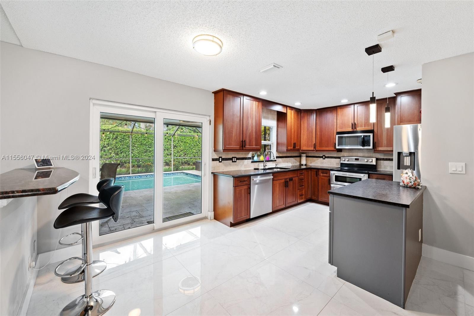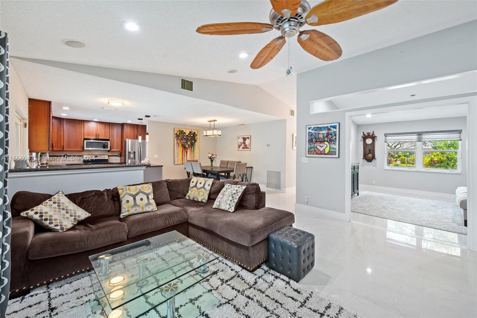 It's here! Open living space perfect for entertaining with 36x36 porcelain tiles. Meticulously maintained by long-term owners. Remodeled kitchen with lots of cabinets for storage; newer appliances; a/c; water heater. Extra flex room for guests or office; can be bedroom - just add a wardrobe. All impact windows & doors, so no worries about the pesky summer storms. Travertine deck & remodeled salt system pool with specialty lighting; covered deck & fans to keep cool while you relax in your patio space. Private backyard & screened pool; paver driveway with plenty of parking. Remodeled baths; specialty window treatments & so much more to enjoy in this lovely Coral Springs home. No HOA; great schools too. Ready for new owners to move right in. Property is offered As Is. Come, See and Stay!