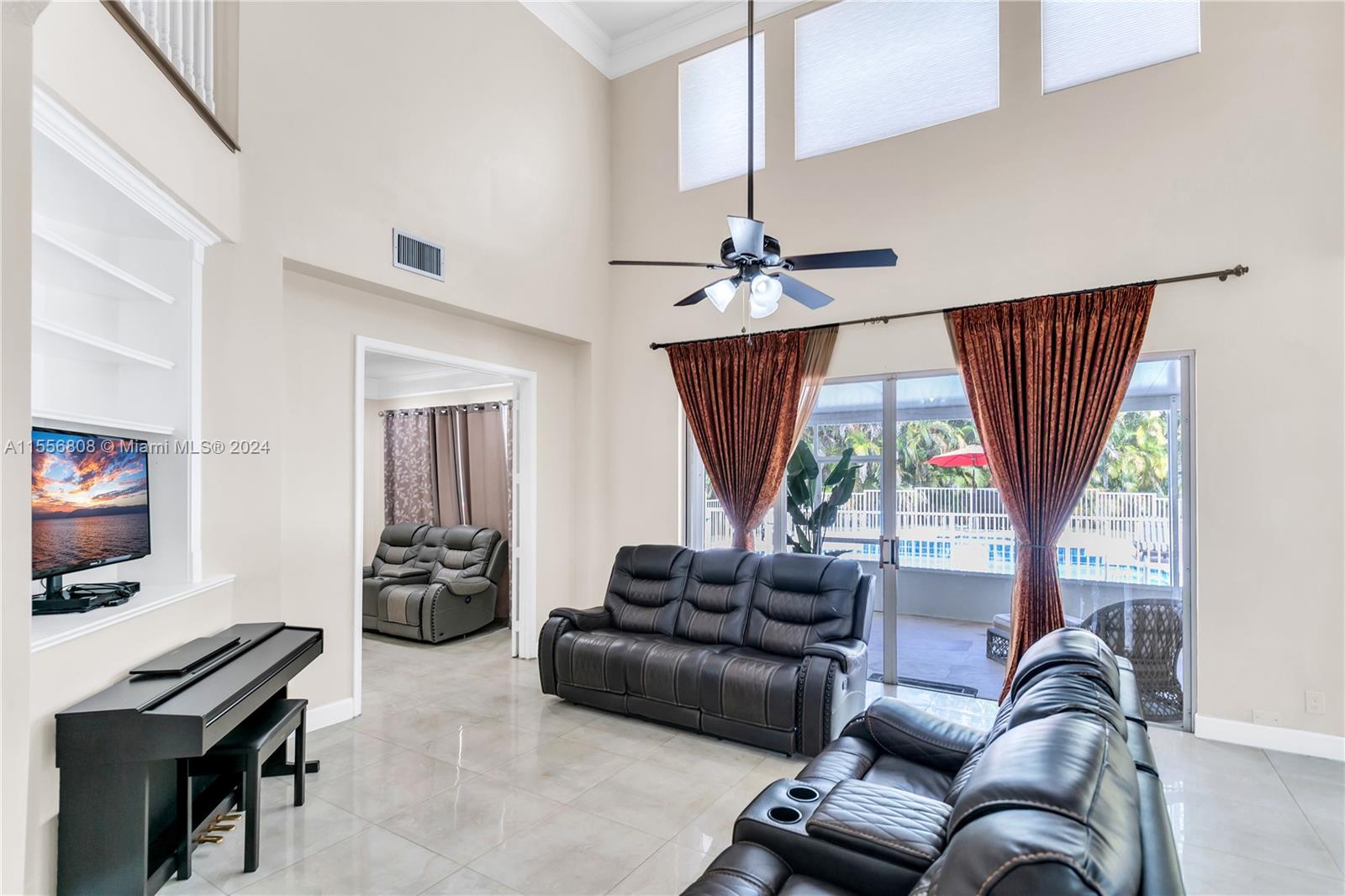 Welcome to your dream home!. This spacious residence has 6 Bedrooms + den + 3 ½ baths + 3 car garage. Located near shopping centers, major highways and prestigious A+ schools. Huge master bed with 2 walking-in closets. Upgraded kitchen with wood cabinets, granite countertops, stainless steel appliances and smart induction cooktop. Spanish porcelain floors and 8ft doors throughout 1st floor. 2 ½ baths were remodeled. Smart home technology (switches, smoke detectors, thermostats, ubiquiti wi-fi). Roof installed middle of 2020 (15yr warranty). Both AC under warranty. Large private backyard with a screened-in lanai. Pool has heated salt water with LED light and jacuzzi. Accordion hurricane shutters. PRICE TO SELL!