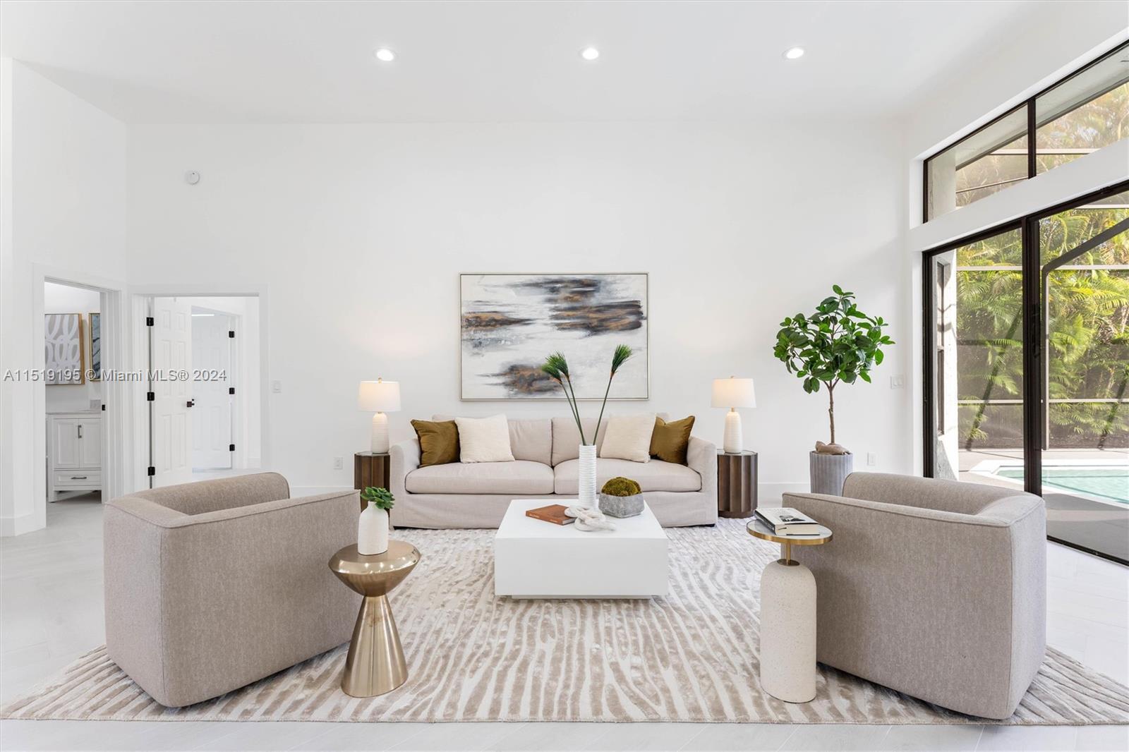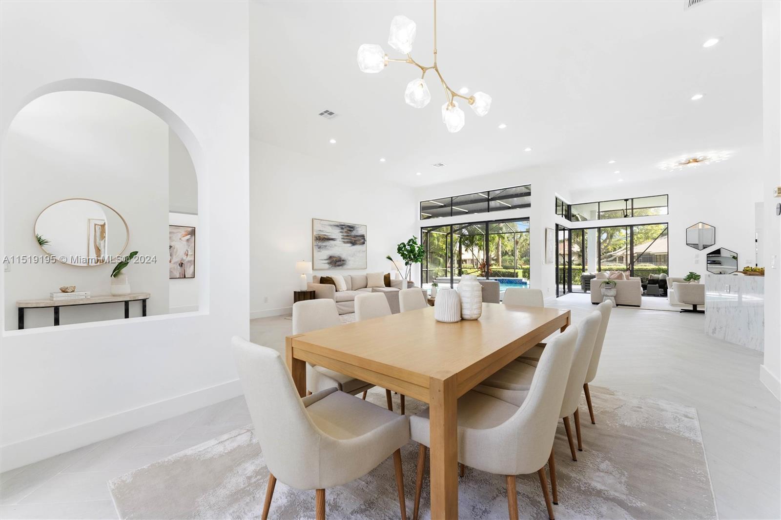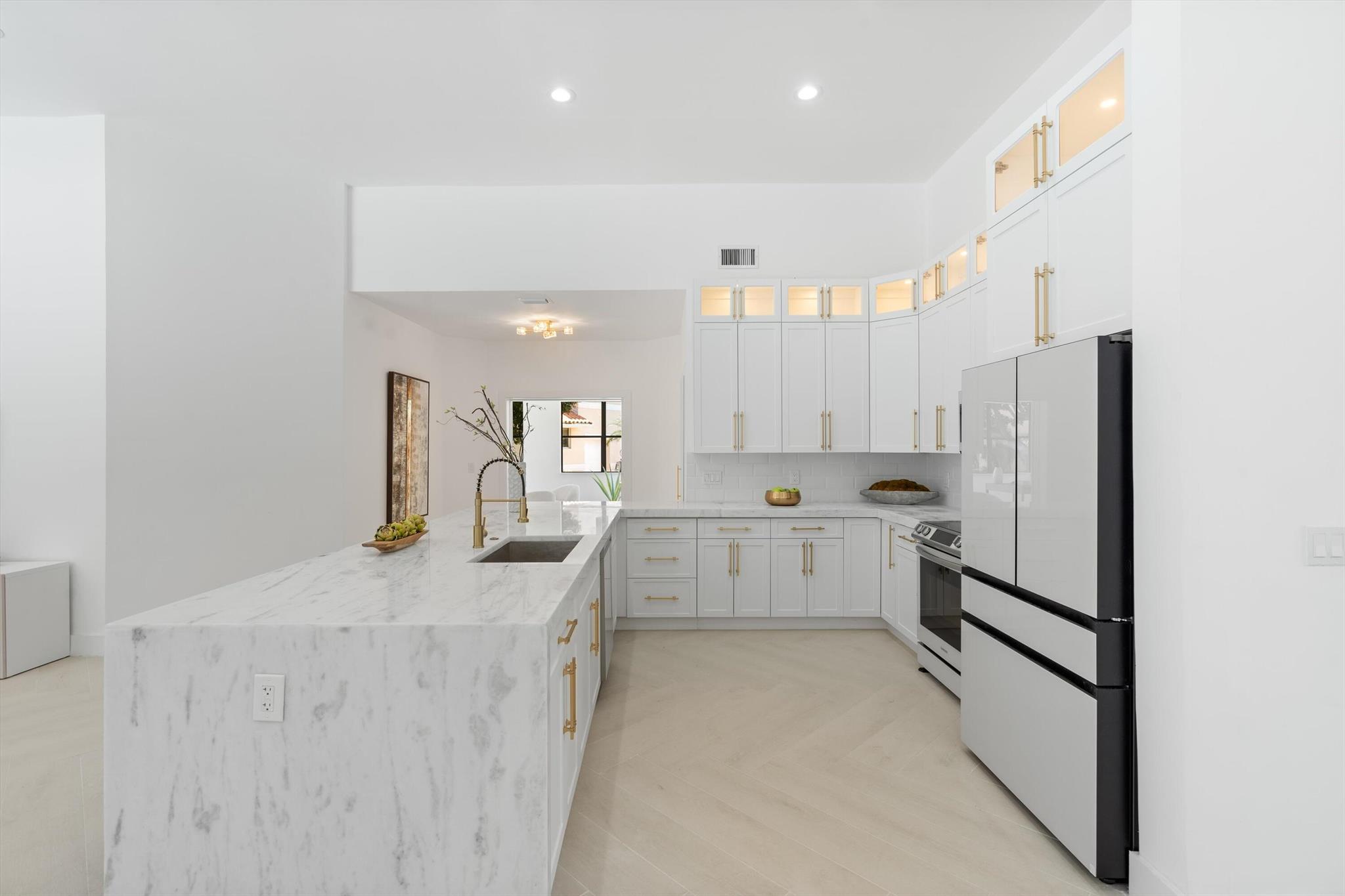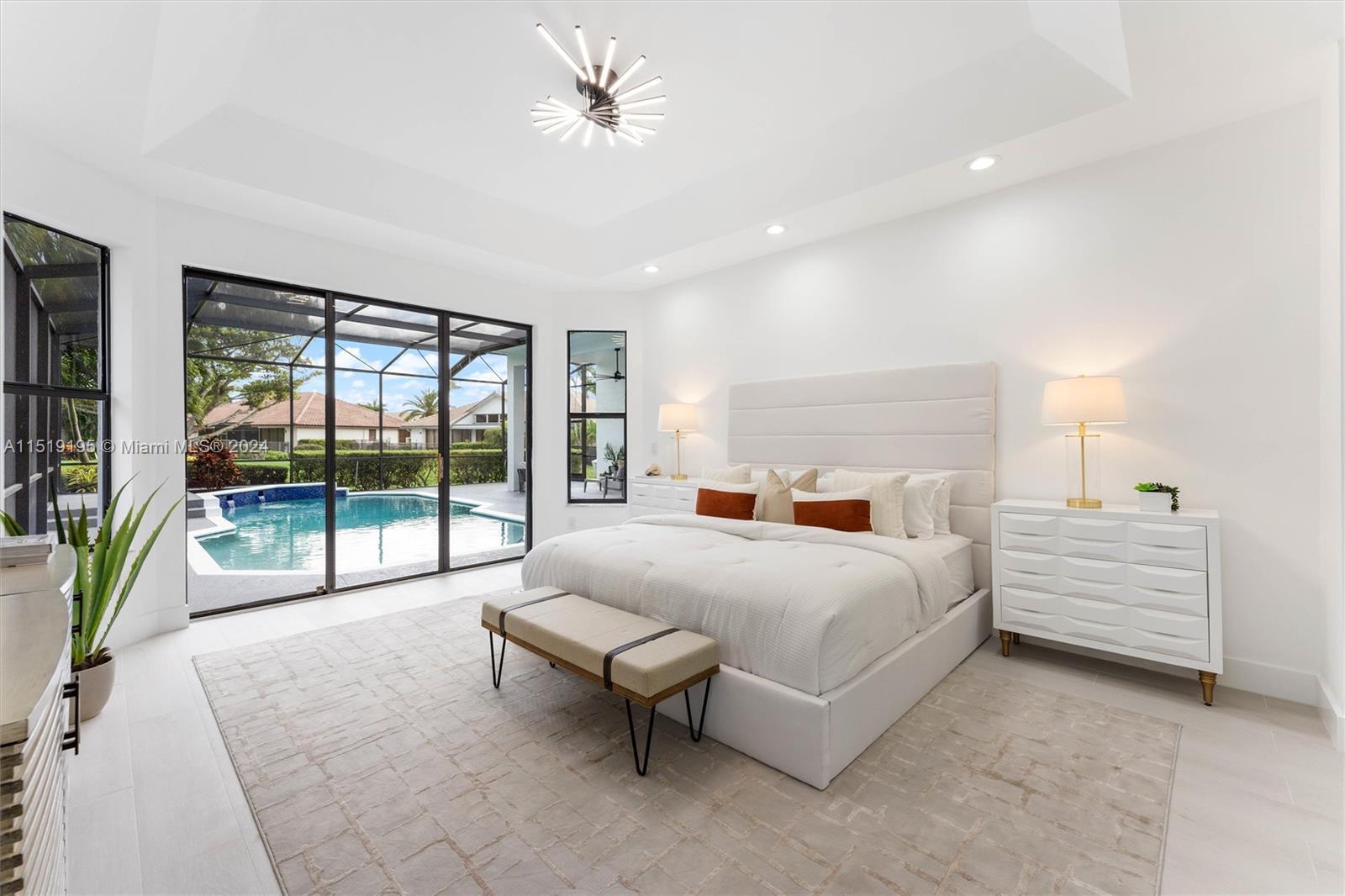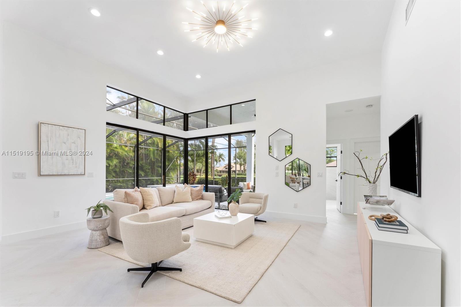 Stonebridge country club in West Boca Raton fully remodeled and stunning 4 bedroom showcase home with screened in swimming pool. A newer roof punctuates this gorgeous and large home that has been renovated to the highest exacting standards. Chevron laid porcelain wood look tile floors, brand new EVERYTHING, including all new kitchen with top of the range model stainless steel appliances, lighted custom cabinetry, and hosting island with quartzite waterfall countertops plus seating. Floor to ceiling windows with 24' ceilings highlight the outside pool area and give the home an immense feel and look. Master bath with slipper tub, and walk in flush laid infinity tile shower with rain head and individual handheld wand. This custom masterpiece is truly second to none with tons of upgrades.