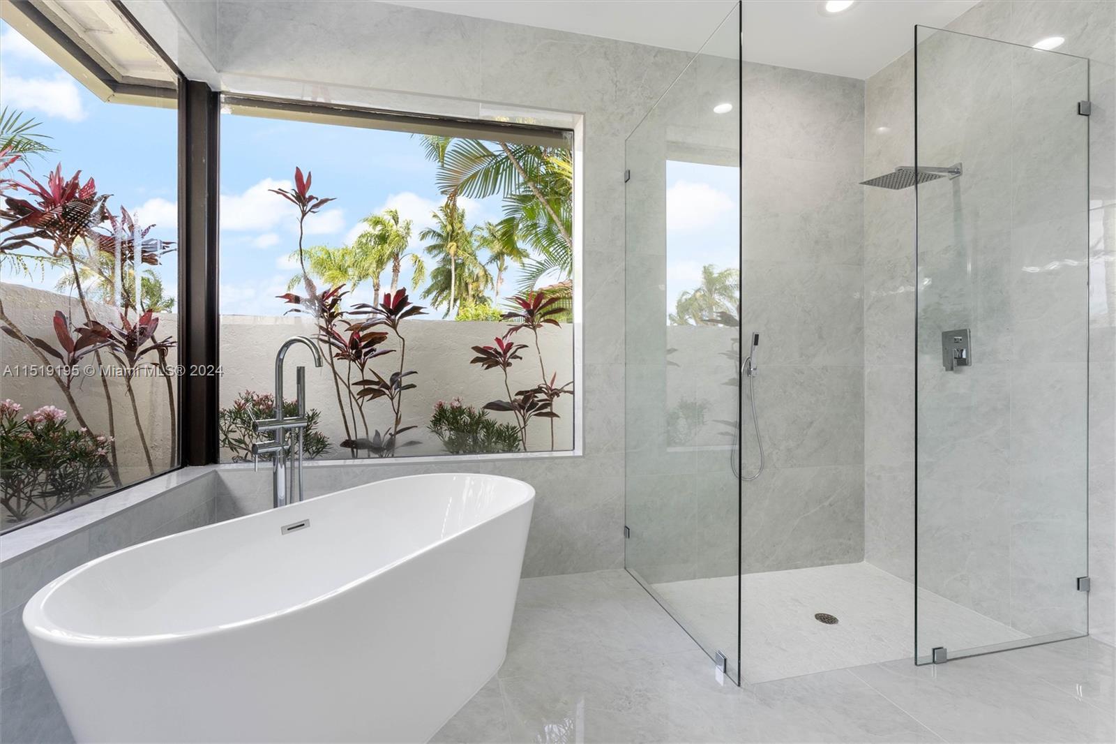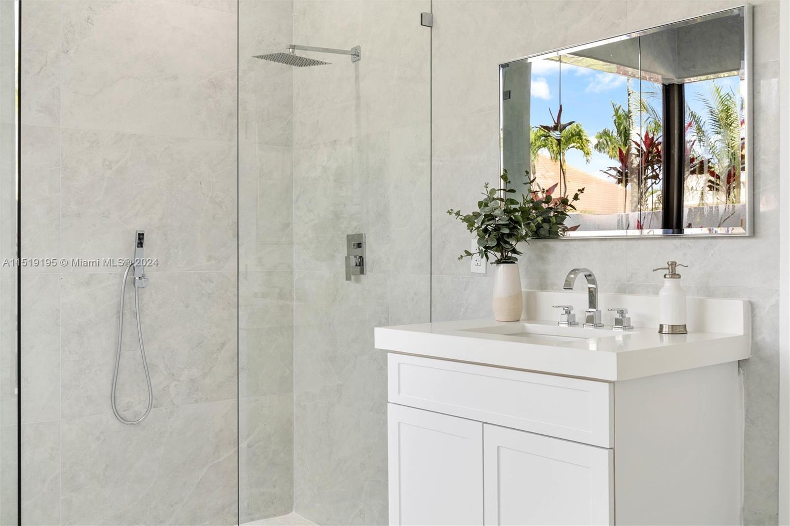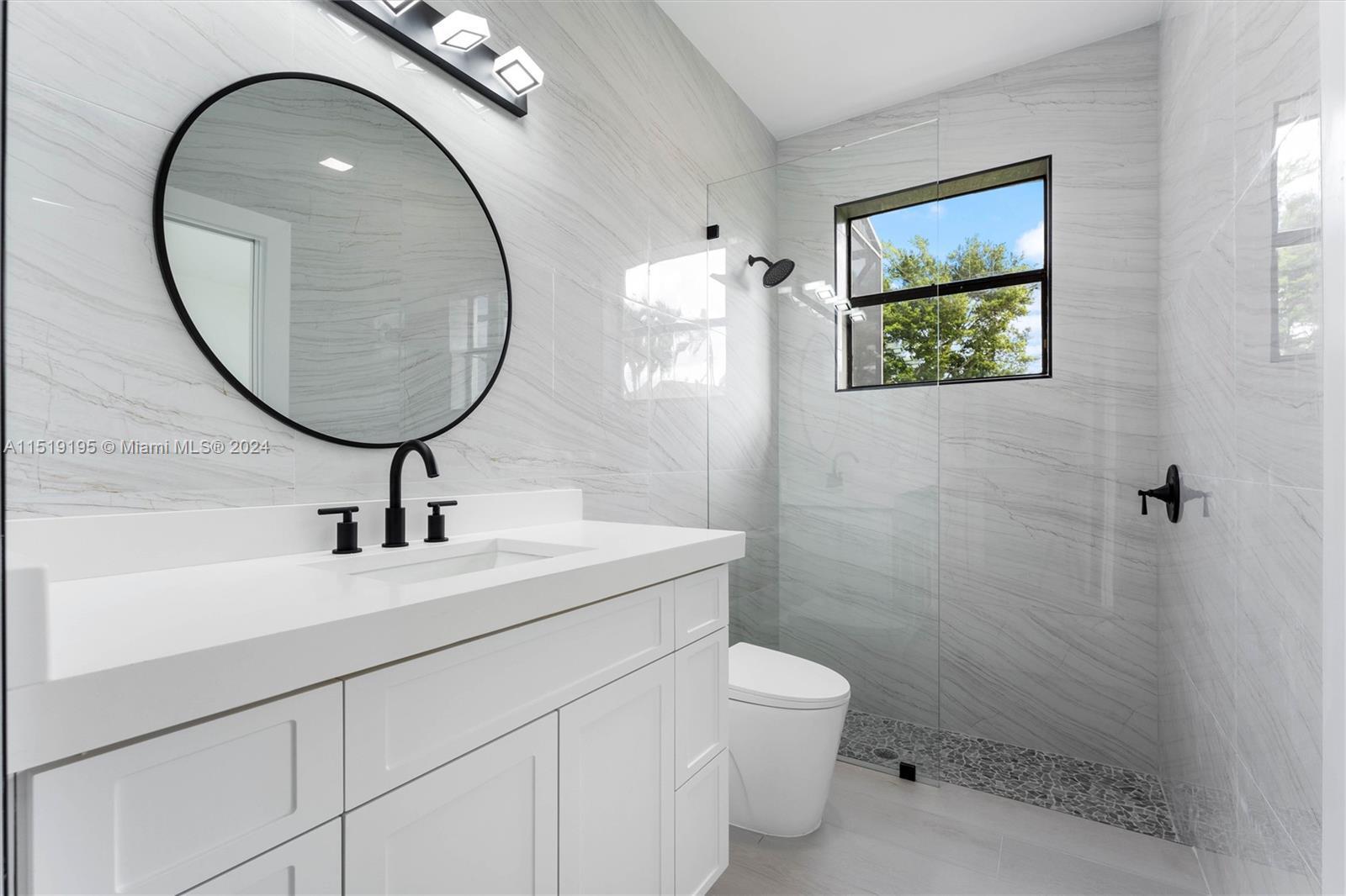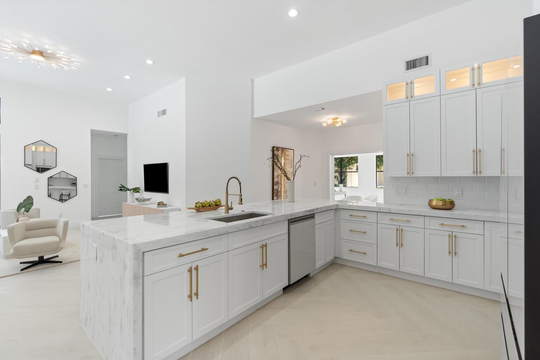 Stonebridge country club in West Boca Raton fully remodeled and stunning 4 bedroom showcase home with screened in swimming pool. A newer roof punctuates this gorgeous and large home that has been renovated to the highest exacting standards. Chevron laid porcelain wood look tile floors, brand new EVERYTHING, including all new kitchen with top of the range model stainless steel appliances, lighted custom cabinetry, and hosting island with quartzite waterfall countertops plus seating. Floor to ceiling windows with 24' ceilings highlight the outside pool area and give the home an immense feel and look. Master bath with slipper tub, and walk in flush laid infinity tile shower with rain head and individual handheld wand. This custom masterpiece is truly second to none with tons of upgrades.