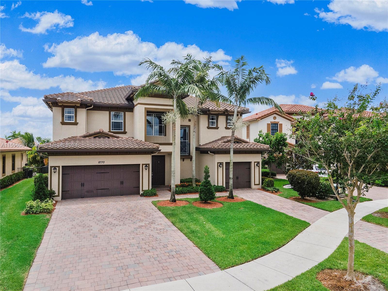 Resort-style living at Parkland’s prestigious gated-manned community of Miralago. Elegant Wentworth model with 6 bedrooms, 6.5 baths; Spacious downstairs Master suite w/custom closets. 3 ensuite bedrooms upstairs, plus add’l bedroom/bath and media room. Den, Laundry and 3 car garage with parking up to 6 cars. Over $400K in renovations; 42” Wood cabinets w/lighting, self-closing doors, pull outs, Quartz countertops, glass tile backsplash, G/E profile SS appliances, 30x30 Italian porcelain tile, decorator light fixtures and fireplace. Extensive covered patio w/spectacular water views, travertine pavers, outdoor kitchen, concrete bar, saltwater pool w/pebble tec finish, lighting and water features. Impact windows/doors. Use of Grand Clubhouse with Resort style amenities and Sport Complex!