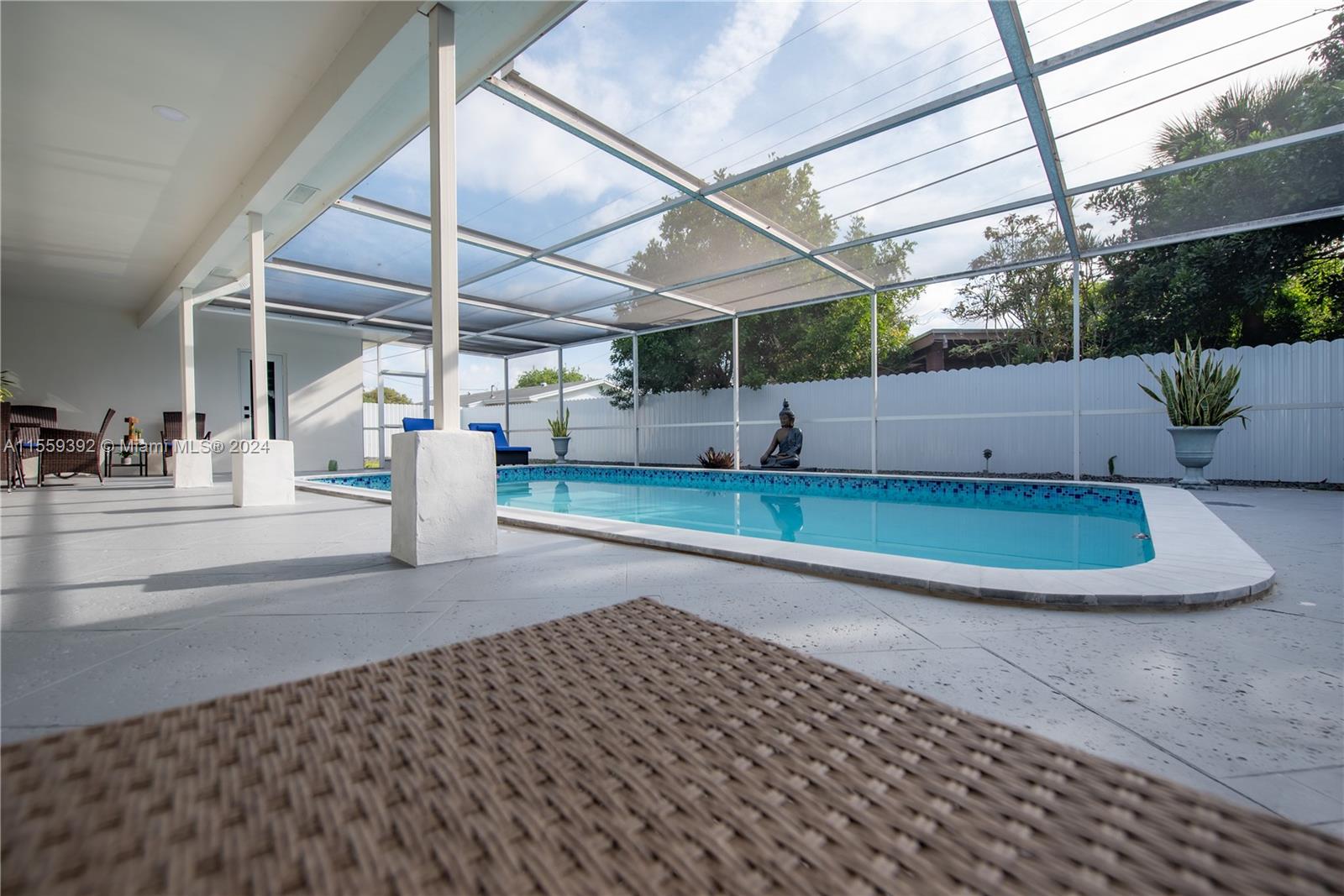Beautiful property recently remodeled located in a quiet area. Pool was redone in 2023 with new water pump, diamond bright, travertine. Ac is from 2023, roof from 2021 and property is fenced throughout.