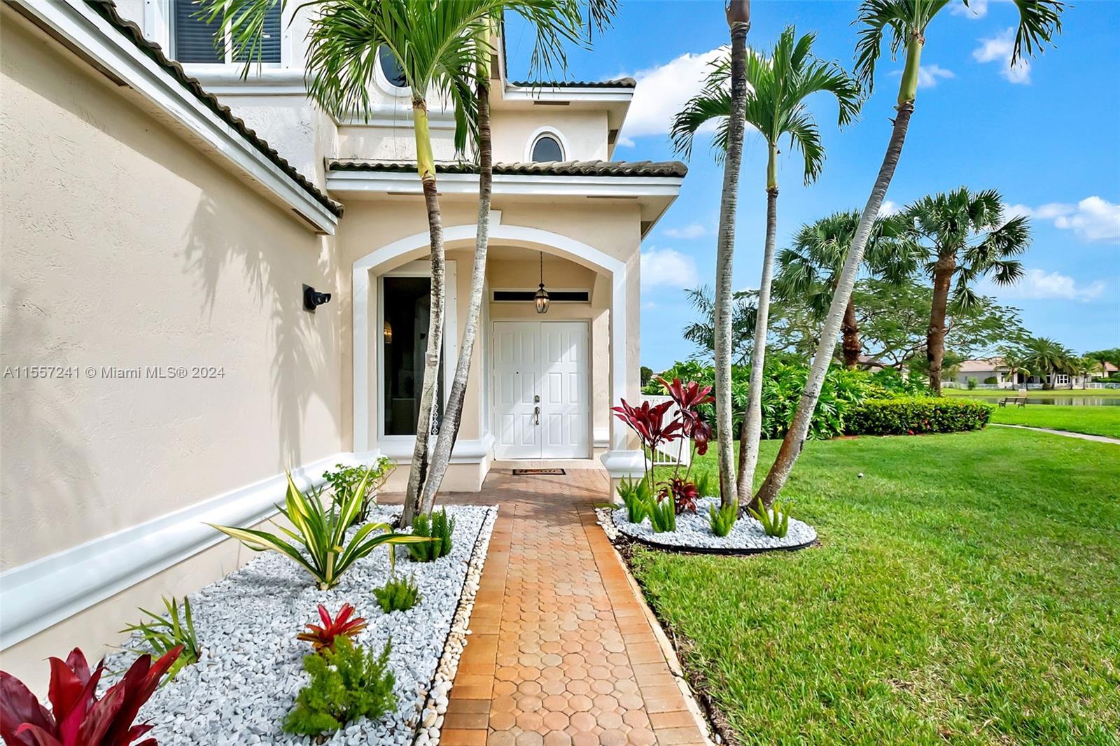 This Magnificent FRESNO-Lakefront Home is located in the Prestigious Guard Gated Community LAGUNA ISLES. This 5/3 bath totally upgraded home has a 3 Car Garage, w/ a Bedroom & Full Bath on the 1st Floor. Porcelain Tile Downstairs, and wood like gray upstairs. All Upgraded Bathrooms. Magnificent Lake views start as you enter w/ majestic volume ceilings & excessive Hurricane Impact Windows. NEW high gloss Kitchen Cabinets fuse w/ Grey & White Water Fall Quartz counters-perfect . Stainless Steel Hood & App. finish this kitchen to perfection. Master Bath has free standing Tub, Oversized Shower & Dual Sinks. Lies next to a park-appears to combine with this home plus gives extra guest parking when friends join you. Club House-Fitness Center Pool, Hot Tub, Tennis Courts, and Playground!