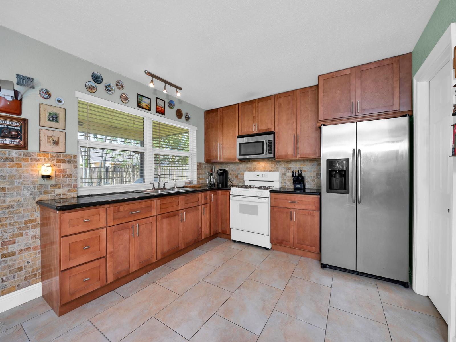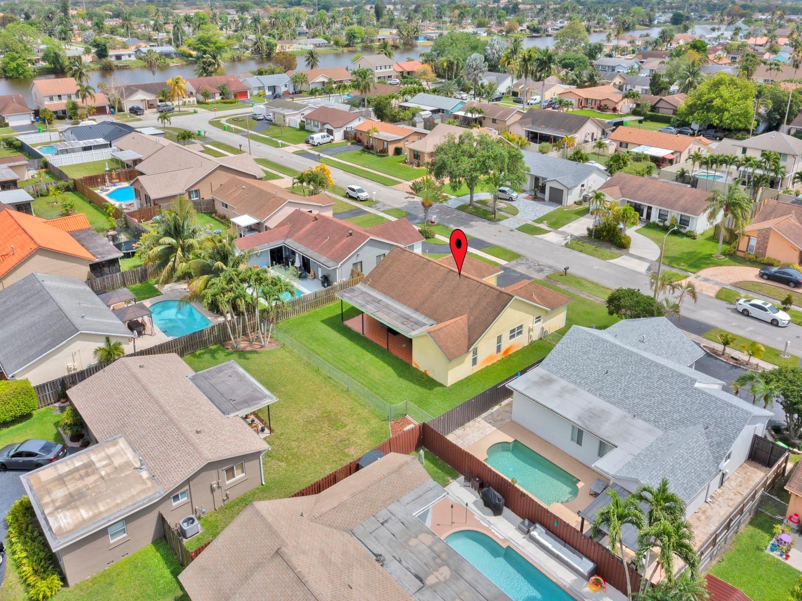 This Beautiful 3 Bedroom 2 Bath home features 18 x 27 tile flooring throughout, vaulted ceilings, upgraded kitchen and bathrooms, Enjoy open family room kitchen area, laundry room, French doors open to an extended covered terrace access to cabana bath, hurricane-impact and a fully fenced yard with plenty of room for a pool, well sprinkles, 3 Miles to Sawgrass Mall, Entertainment, Amerant Stadium, Restaurants and EZ access to major expressways. Best of all no HOA!