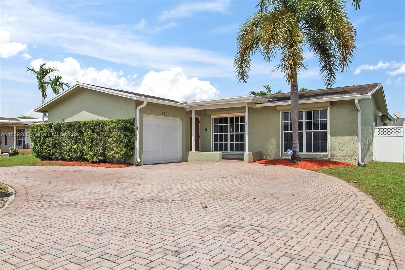 Enjoy Florida living! This home has three bedrooms, two bathrooms, a spacious family room & a screened in swimming pool. There is plenty of parking! In addition to the one car garage there is a circular driveway. This home has a split floor plan, the primary bedroom is separate from the additional bedrooms. Enjoy the pool view from your living, dining, kitchen & family room. Very private backyard. The un suite includes a jacuzzi tub for relaxation. The windows have Rolladen shutter protection for your peace of mind. Located in the center of Pembroke Pines. No homeowners association and in close proximity to schools, shopping, police/fire station and the new City Center. Enjoy great restaurants many free family events at the City Center near by.