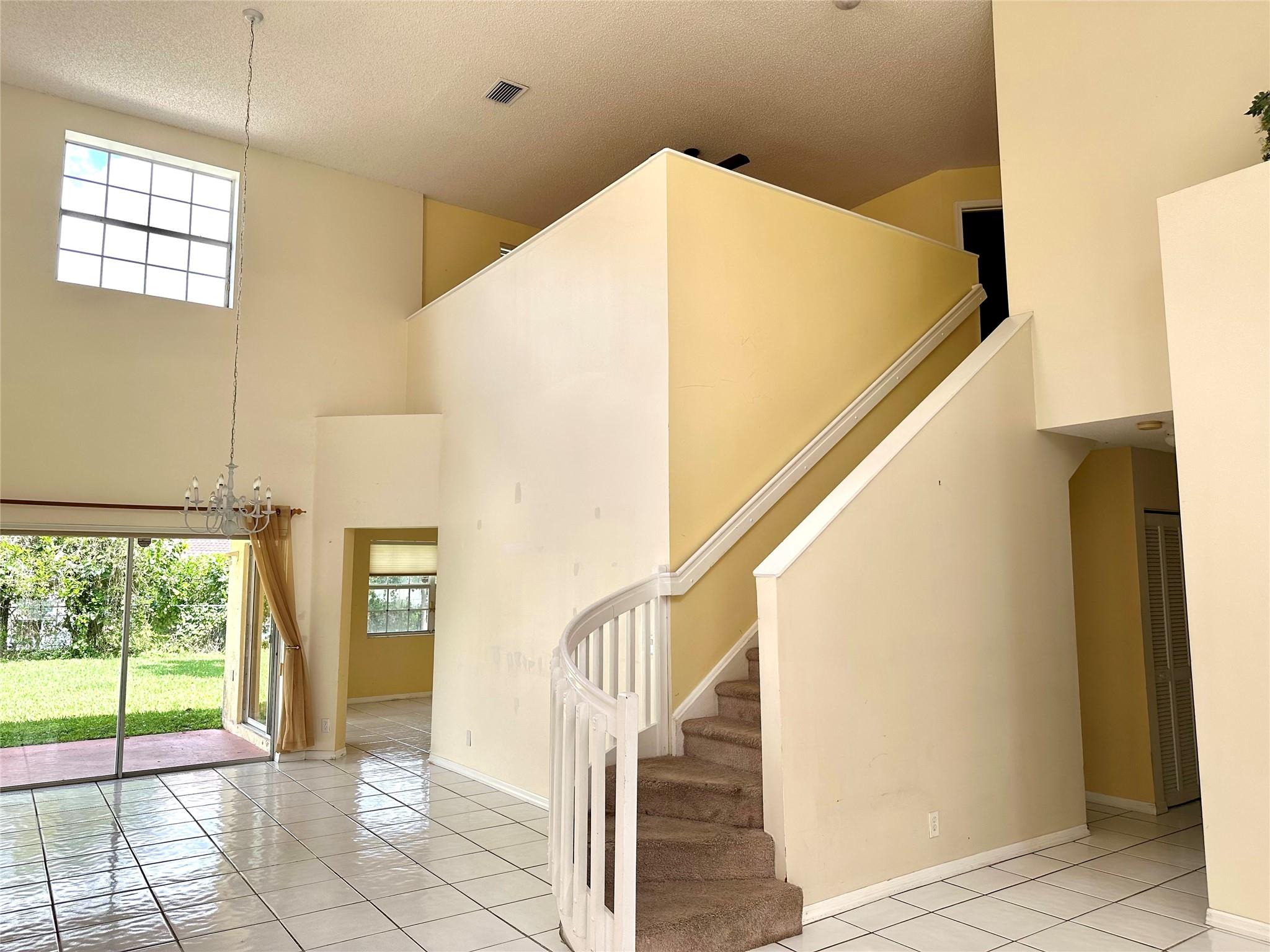 Loft can easily become 4TH BEDROOM! Huge Vaulted Ceilings through the public areas. Bright comfortable family layout with the Master Bedroom downstairs and currently 2 bedrooms + Large Loft upstairs. Near Wiles Road gate for easy access. Tiled downstairs and Laminate upstairs. Carpeted Master Bedroom. 2 Car Garage and 2 more cars fit in paver driveway. Brand New Roof in process of installation fully paid by Seller.