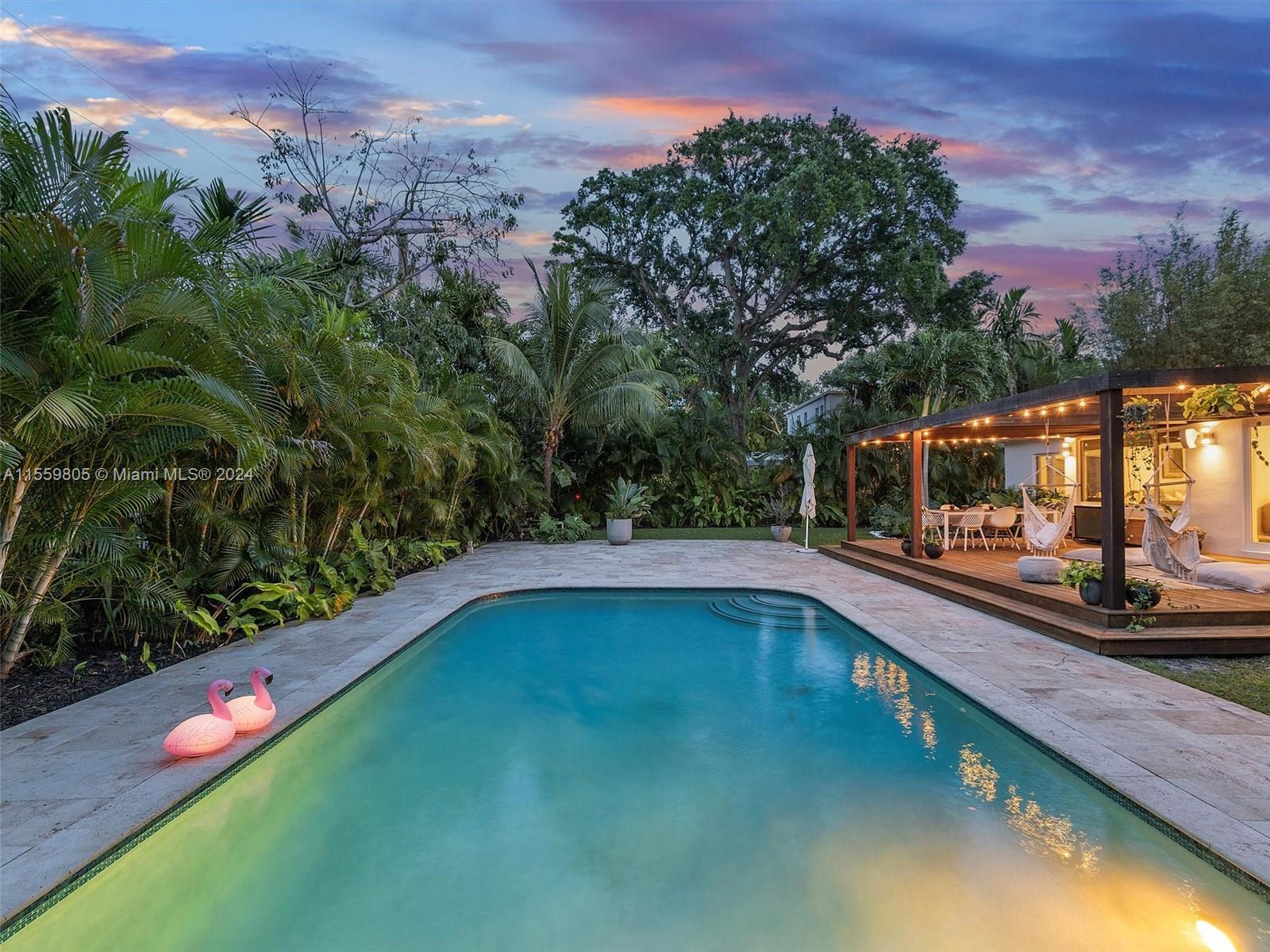 Welcome to your dream home located in East Miami Shores, a highly sought-after Miami neighborhood which features 3 bedrooms plus a den/office, 3 full bathrooms, high ceilings and 2,128 SF of interior space. In addition to the open layout with stunning views of the pool and lush backyard, the living space also has an updated open kitchen with quartz countertops and a large island perfect for entertaining. One of the property’s highlights is a spacious master bedroom with a walk-in closet and a master bathroom with a double sink vanity and a large glass shower/ roman tub combination. This home sits on a 10,938 SF lot at the end of a quiet street and includes an attached single-car garage. New roof, high impact windows & doors, A/C was replaced 2 years ago.