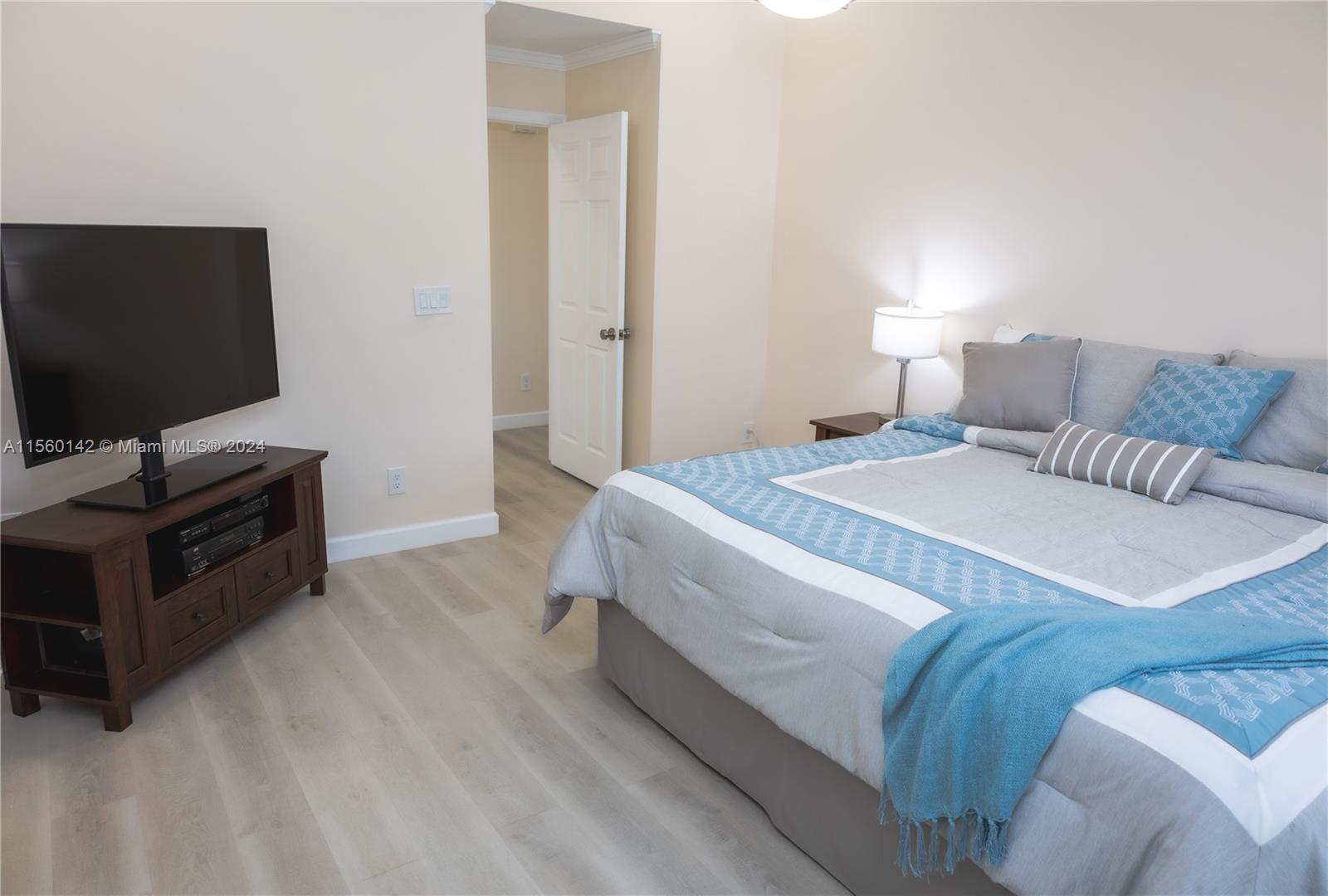 Stunning 1-story corner unit with breathtaking lake views! This 3 beds/2 baths remodeled home features laminate wood flooring, remodeled bathrooms, and elegant crown molding throughout. Enjoy the convenience of new blinds, textured knockdown ceilings with recessed lights, and a spacious open kitchen. Cable and internet are included with the HOA, and you'll have 2 assigned parking spaces right in front of your house. The gated community offers 24-hour patrol, a pool, spa, tennis court, gym, and playroom. Plus, you'll be just steps away from top-rated A+ schools. Don't miss out on this incredible opportunity!