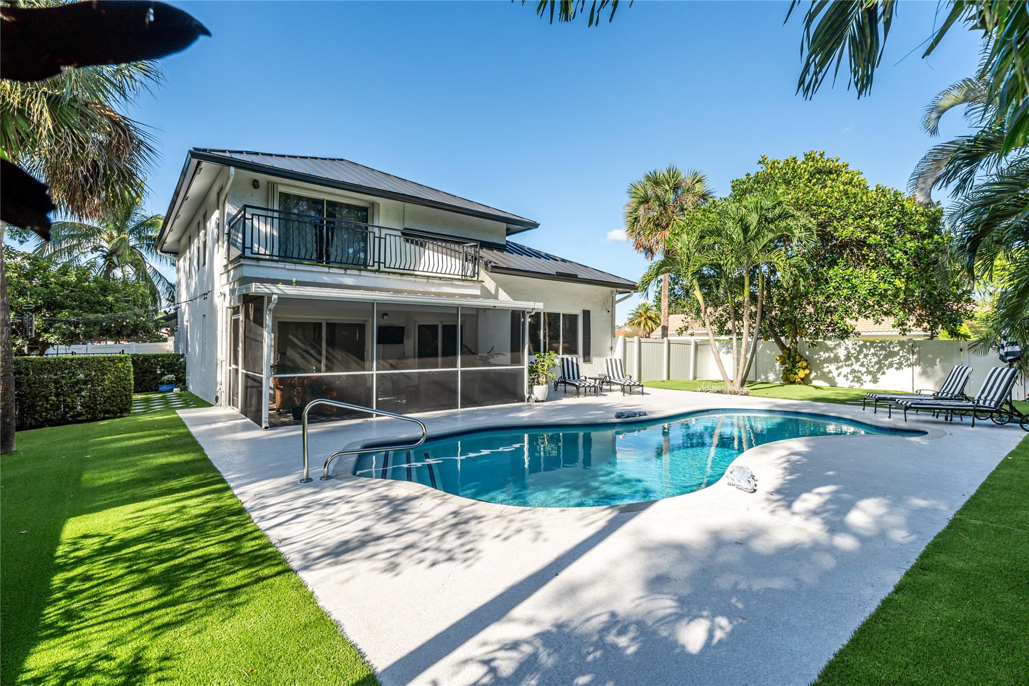 This exquisite two-story home in Mizner Forest offers over 2400 sqft in living area and a 10,000 sqft lot. With sleek impact windows and sliders downstairs, a brand new metal roof, and a pool, this home is both stylish and durable. Master bedroom located on first floor with three bedrooms upstairs. Step outside to a backyard with a pool, second-floor balcony, and lush turf throughout. Enjoy the convenience of low-maintenance living with the entire backyard covered in turf. Plus, the enclosed patio provides extra space rain or shine. Custom landscaping provides beautiful curb appeal. Garage fits two cars and a new mini-split air conditioning unit has been added. Showings start Sunday April 7th.