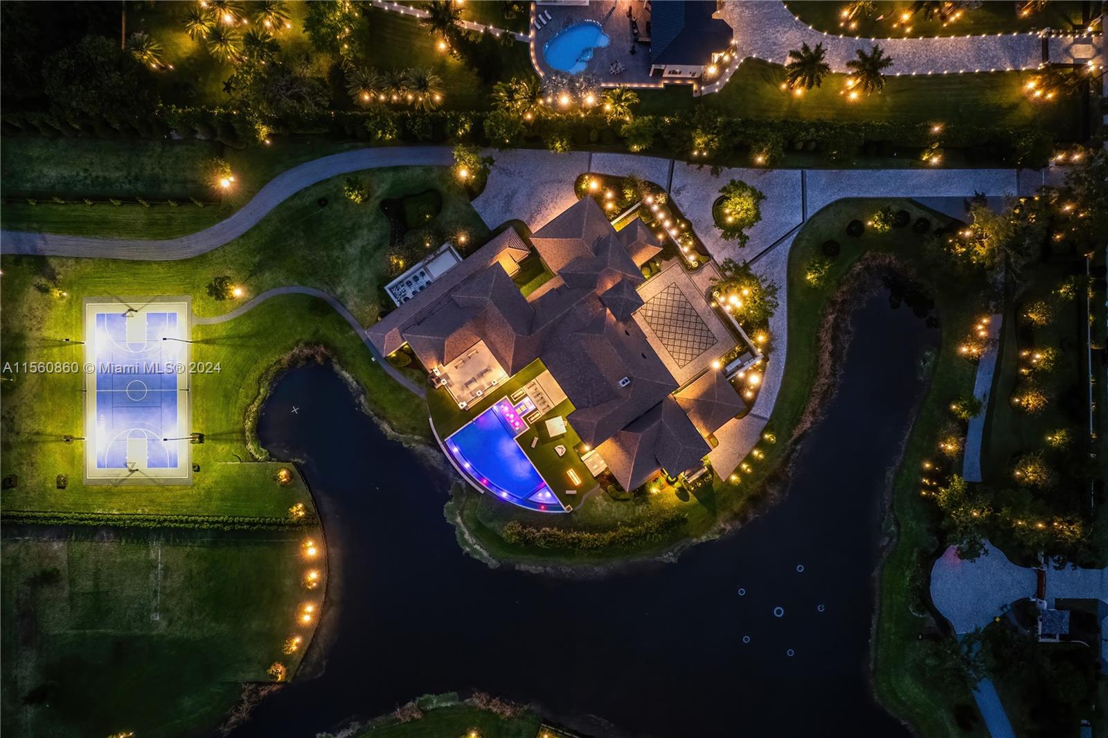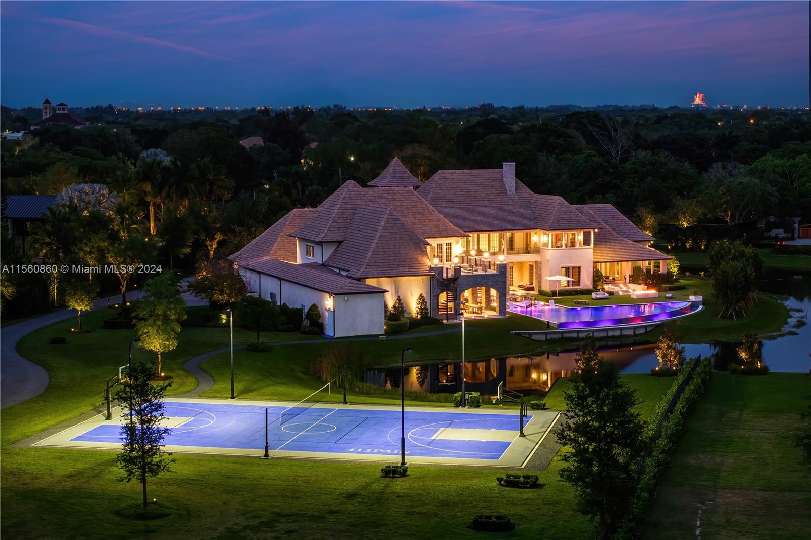Experience the epitome of luxury with this custom French Country style mansion in Southwest Ranches. This home boasts over 15,000+ sq ft and features a movie theater, soaring ceilings, sprawling living areas, and resplendent bedroom suites. Outdoor amenities include an infinity pool, summer kitchen, and a full basketball court. Modern conveniences include Crestron Home Automation, a Generac generator, wolf appliances, and an automated privacy gate. Entertain throughout several entertainment areas that can host a multitude of guests. Embrace true serenity as the home is situated on a lot expanding nearly 5 acres that faces a 4 acre lake with custom fountains. Capture the opportunity to make this immaculate estate your next oasis.