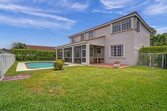 Welcome to this charming 5-bedroom 3 bath home nestled in the sought-after The Lakes. This impeccable maintained home has it all. Sitting on a premium lakefront lot over 11,000 sf, circular driveway, cul-de-sac. NEW ROOF (2022) Elegant Marble flooring. Enjoy the private upstairs master suite with adjoining room perfect for use as a nursery, office, gym. His and her walk-in custom closets. Lake view to enjoy from almost all the bedrooms. Home is very bright. Desirable floor plan, one bedroom with full bath downstairs. Beautiful open kitchen with stainless steel appliances, granite counter tops, breakfast nook overlooking lake. Screened tiled in extended patio. Fully fenced backyard with beautiful pool to enjoy beautiful sunsets. Space, comfort, views, elegance, charm in every corner.