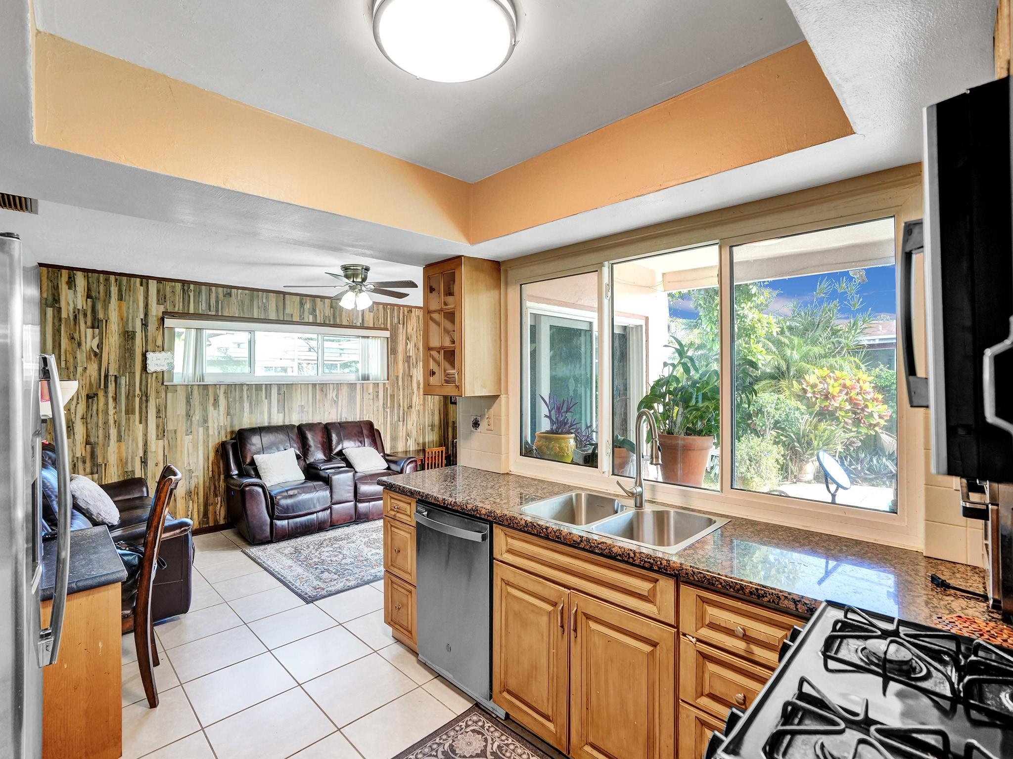 Impeccably maintained, 3-bedroom home!! An open floor plan seamlessly connects the living, dining, and modern kitchen, making it ideal for entertaining. The upgraded kitchen features granite countertops, ample storage, and stainless steel appliances. 3 spacious bedrooms, 2 bathrooms plus garage. Also includes a versatile den perfect as a home office, playroom, or guest room. Step outside to your private backyard oasis, featuring a pool and lush garden, perfect for hosting gatherings. The barrel tile roof is only 6 years old, and hurricane-impact windows are throughout. Additionally, there's a newer A/C system and water heater. This move-in ready haven exudes pride of ownership and is waiting for you to create lasting memories. Don't miss this opportunity!