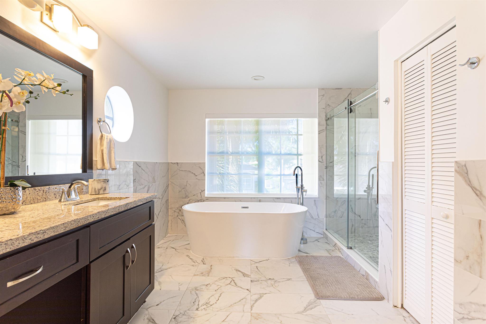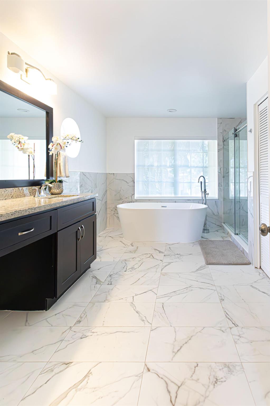 Experience luxurious living in this 4-bedroom, 3-bath oasis boasting modern amenities. Entertain effortlessly in the spacious living areas, chef's kitchen with marble countertops, eat in peninsula, formal dining area, full bath downstairs. Upstairs features luxury vinyl flooring throughout. Bedrooms have large closets and and natural light. Double doors lead to primary bedroom with seating / flex space, 2 walk in closet and remodeled bathroom. Screened patio, nice size pool with a serene ambiance. Embrace sustainability with solar power, ensuring eco-friendly living. Indulge in comfort, style, and sophistication in this epitome of upscale residential bliss. Garage features hookup for electric vehicle charger or Accy.