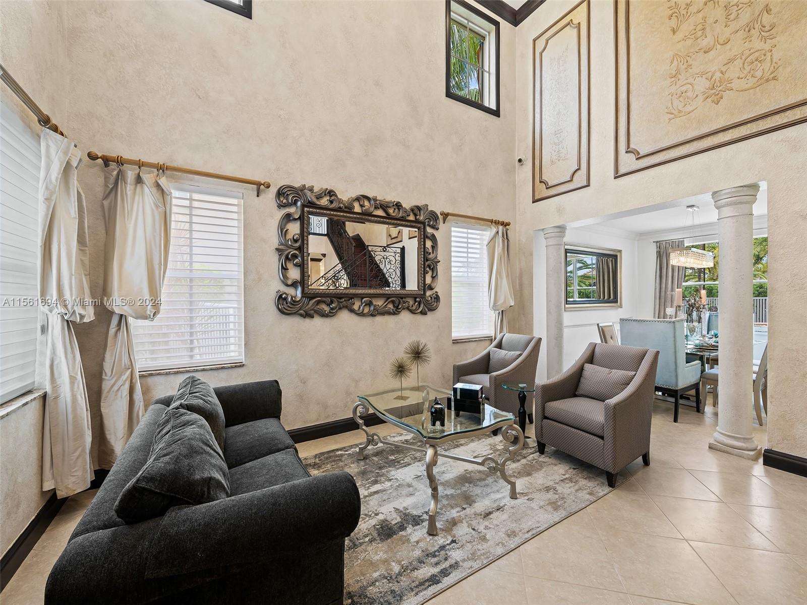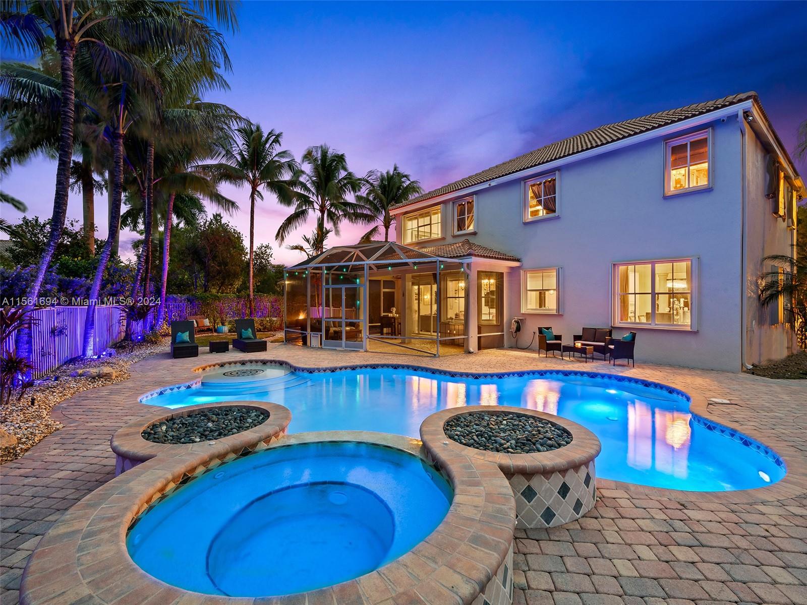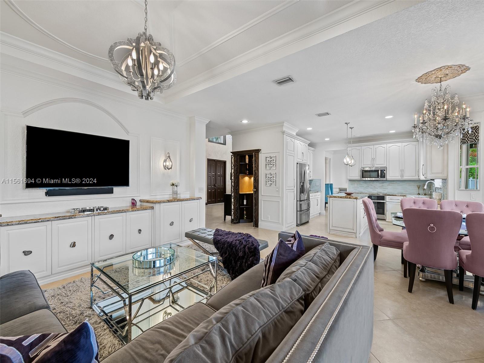 Welcome to 1221 Chenille Circle, a truly magnificent residence exuding elegance and luxury. This stunning home features 6 bedrooms, 3 bathrooms, plus an office/lounge, and two-car garage. Nestled on a gorgeous pie-shaped lot with a resort-style pool, cascading spa, lushy landscape, and lake views. This home offers a perfect blend of elegance and comfort. Features include motorized Hunter Douglas blinds on the first floor, handcrafted drapery, 2-newer AC's (2021), HIK cameras, custom built-in dry bar, and stunning chandeliers that illuminate each room. The freshly painted exterior enhances the curb appeal, making a striking first impression. Experience the epitome of refined living in this exquisite Weston abode. Located in the highly desirable community The Grove III at Savanna.