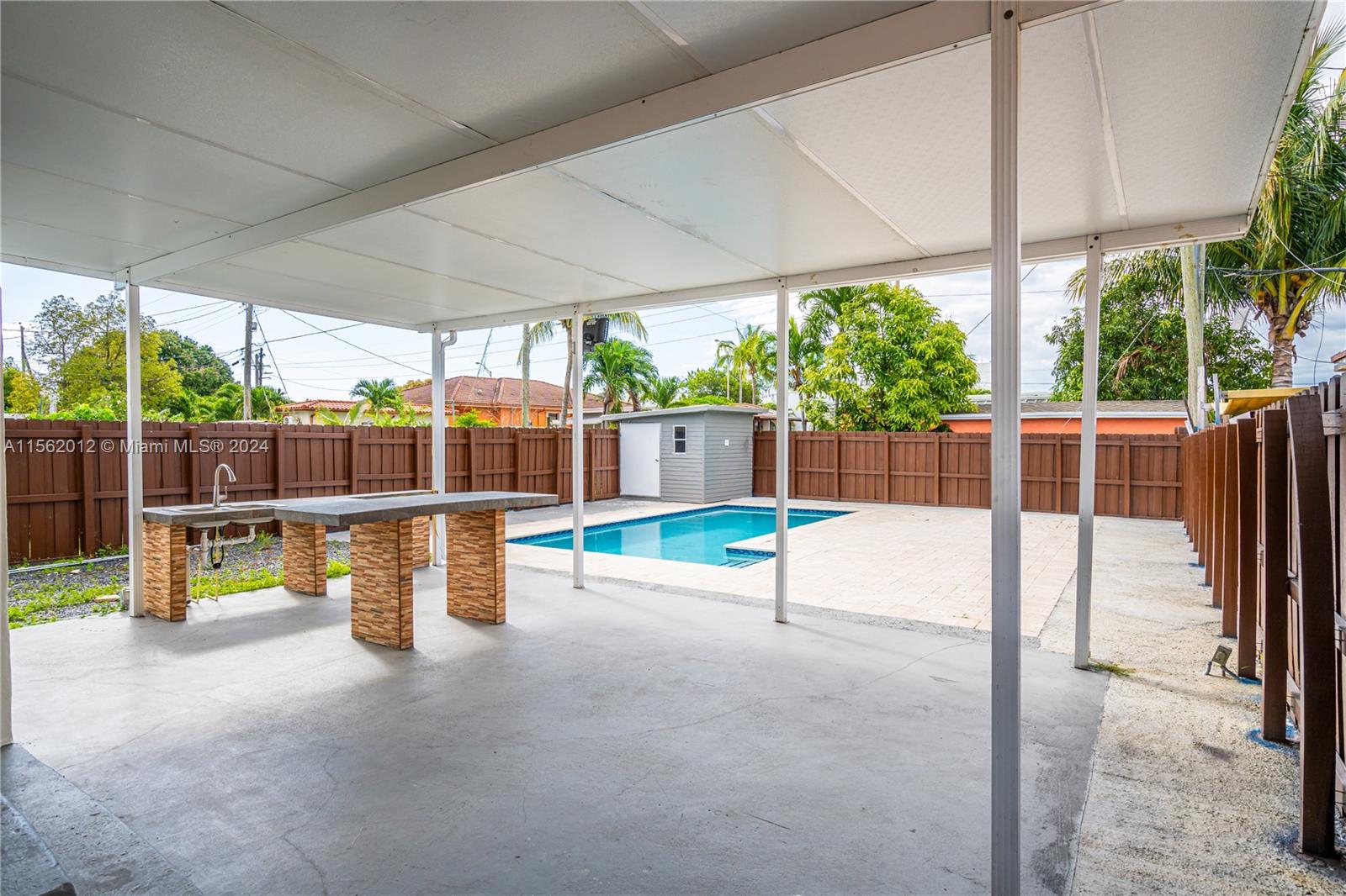 Welcome to your upgraded oasis! This charming 3-bedroom, 1-bathroom house boasts a myriad of modern amenities and thoughtful upgrades. Step inside to discover a newly installed roof and a sparkling 2020 pool, creating a refreshing retreat for sunny days. Feel secure with impact windows and enjoy the convenience of storage shed and laundry rooms. Parking is a breeze with ample space for multiple vehicles, including RVs and boats. Entertain effortlessly in the spacious outdoor covered area, perfect for gatherings with family and friends. Stay comfortable year-round with central A/C and additional split units in each bedroom. With a freshly painted exterior adding to its curb appeal, this home is ready to welcome you to a lifestyle of comfort and convenience.