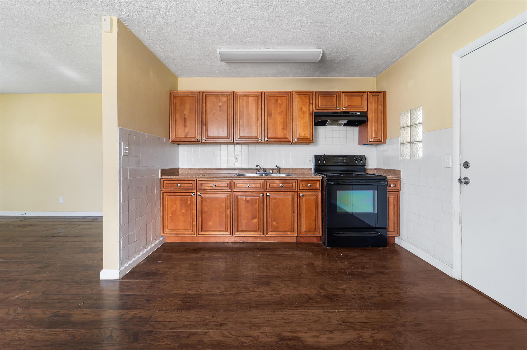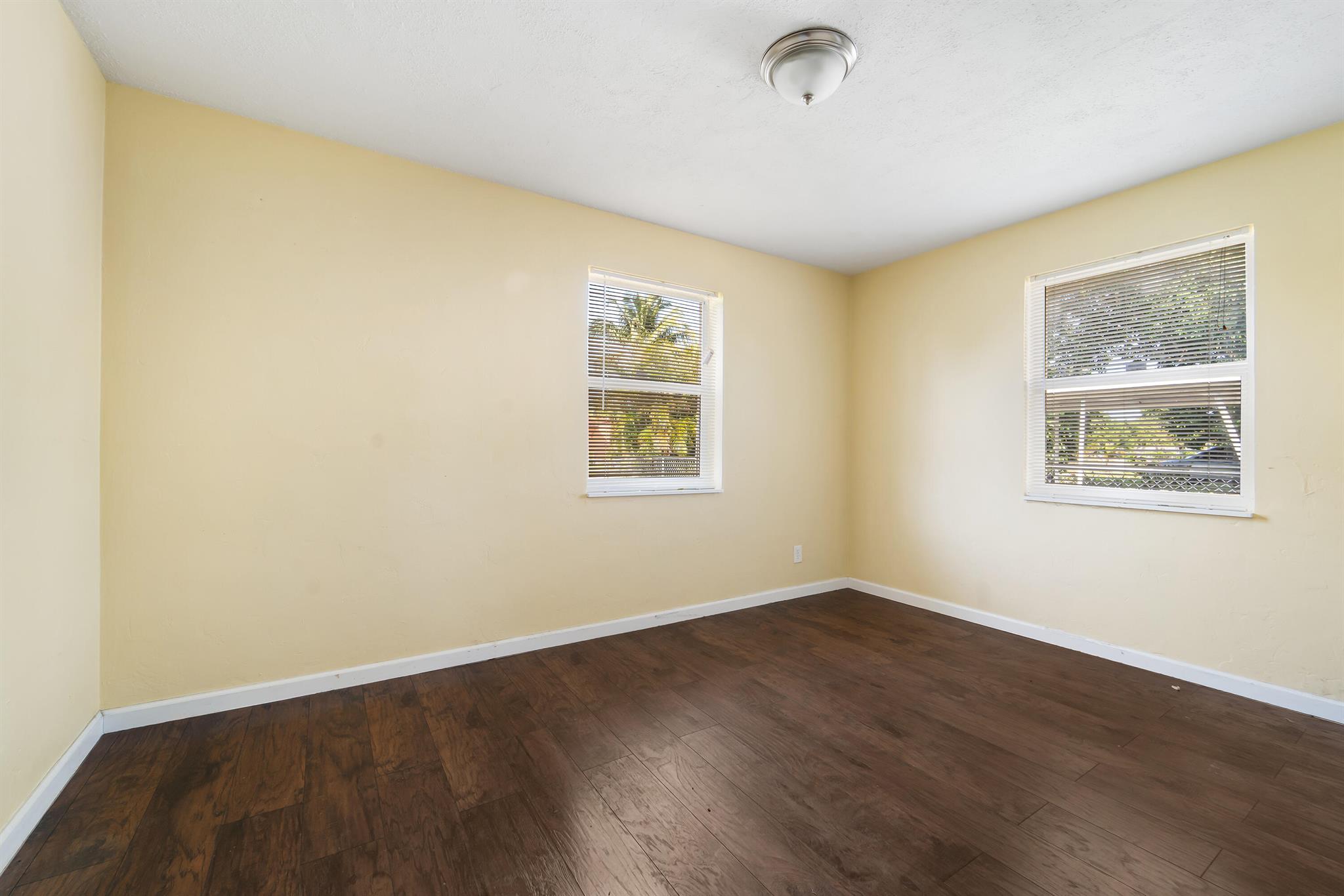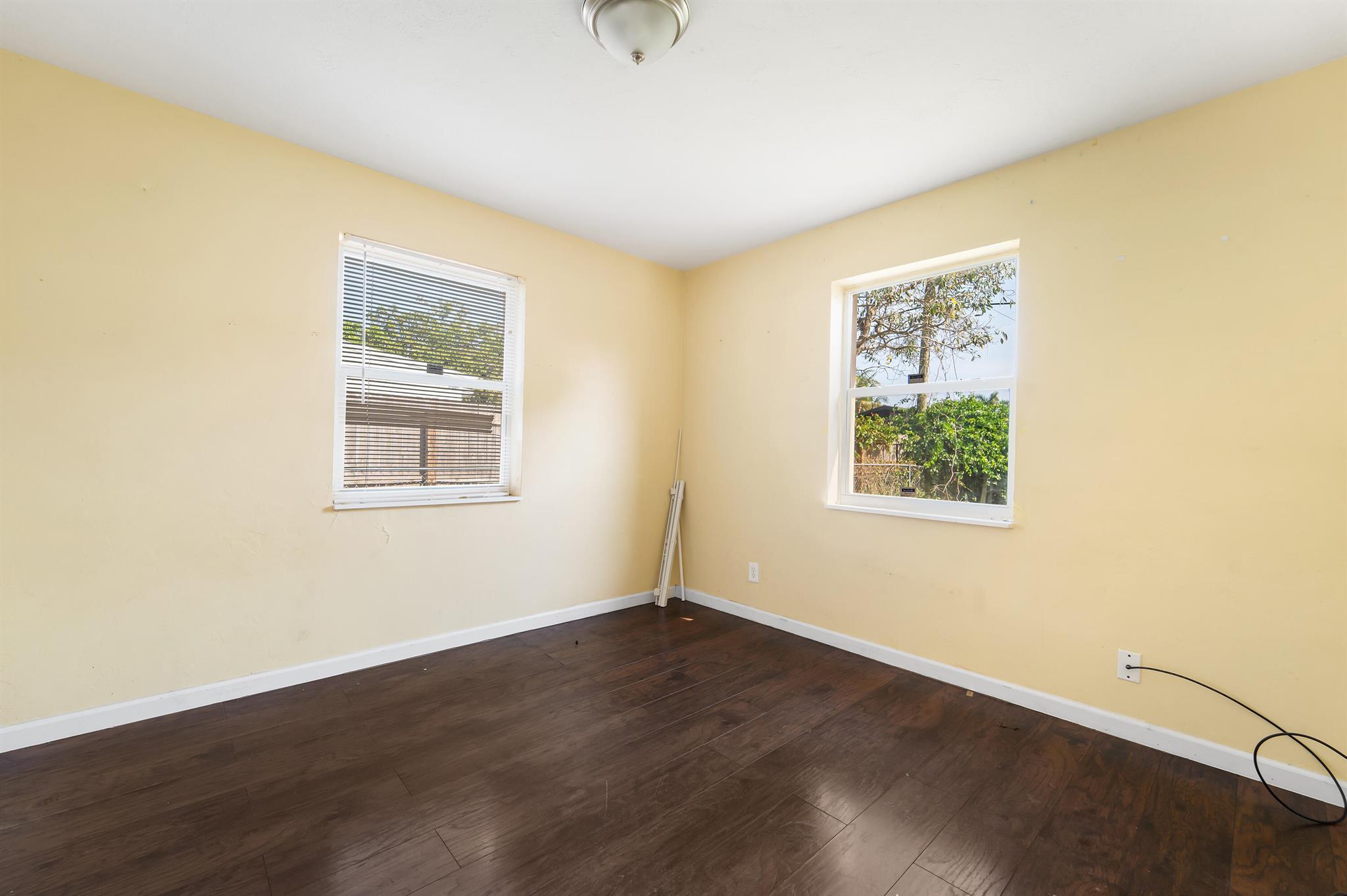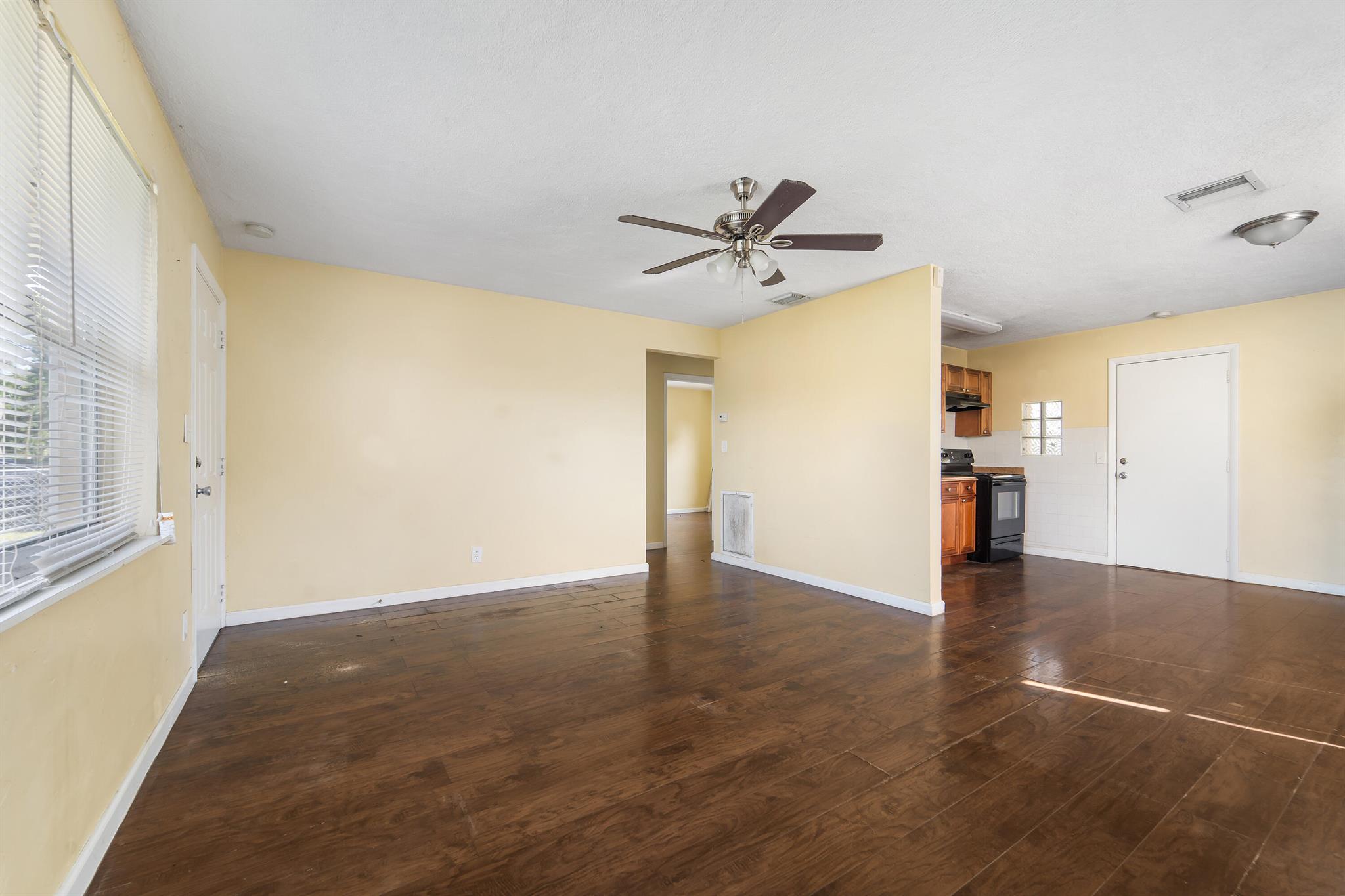 Welcome to this charming 2-bedroom, 1-bathroom home nestled on a quiet street awaiting a new owner. As you step inside, you are greeted by a spacious living room adorned with laminate flooring, creating a warm and inviting atmosphere. The focal point of the room is a real wood-burning fireplace, perfect for those chilly evenings. The home has an open floor plan with an adjacent kitchen/dining concept. Stacked 2 bedroom floor plan with a shared bathroom. Venture outside and discover a lovely covered screened-in patio, ideal for al fresco dining. Beyond the patio lies a spacious backyard, offering plenty of room for outdoor activities and the potential to add your own personal touch, whether it be a lush garden oasis or your very own private pool retreat. With no carpet throughout the home,