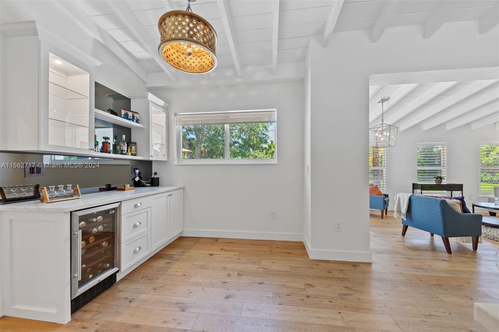 Nestled in Pinecrest prestigious neighborhood, this elegant abode seamlessly blends comfort and luxury. Boasting stunning oak flooring, expansive hurricane-impact windows, plenty of natural light, the interior exudes warmth and tranquility. Soaring vaulted beamed ceilings in luminous white create an ethereal ambiance, while the open-plan design fosters a harmonious flow. Immerse yourself in the privacy of the sprawling backyard, ideal for family gatherings and moments of relaxation. Ample space awaits your dream pool, alongside newly landscaped grounds and a majestic driveway. Residing in an A+ school district and surrounded by an array of conveniences, including shopping centers, restaurants, and expressways. Don't miss out on the opportunity to make this your forever home.