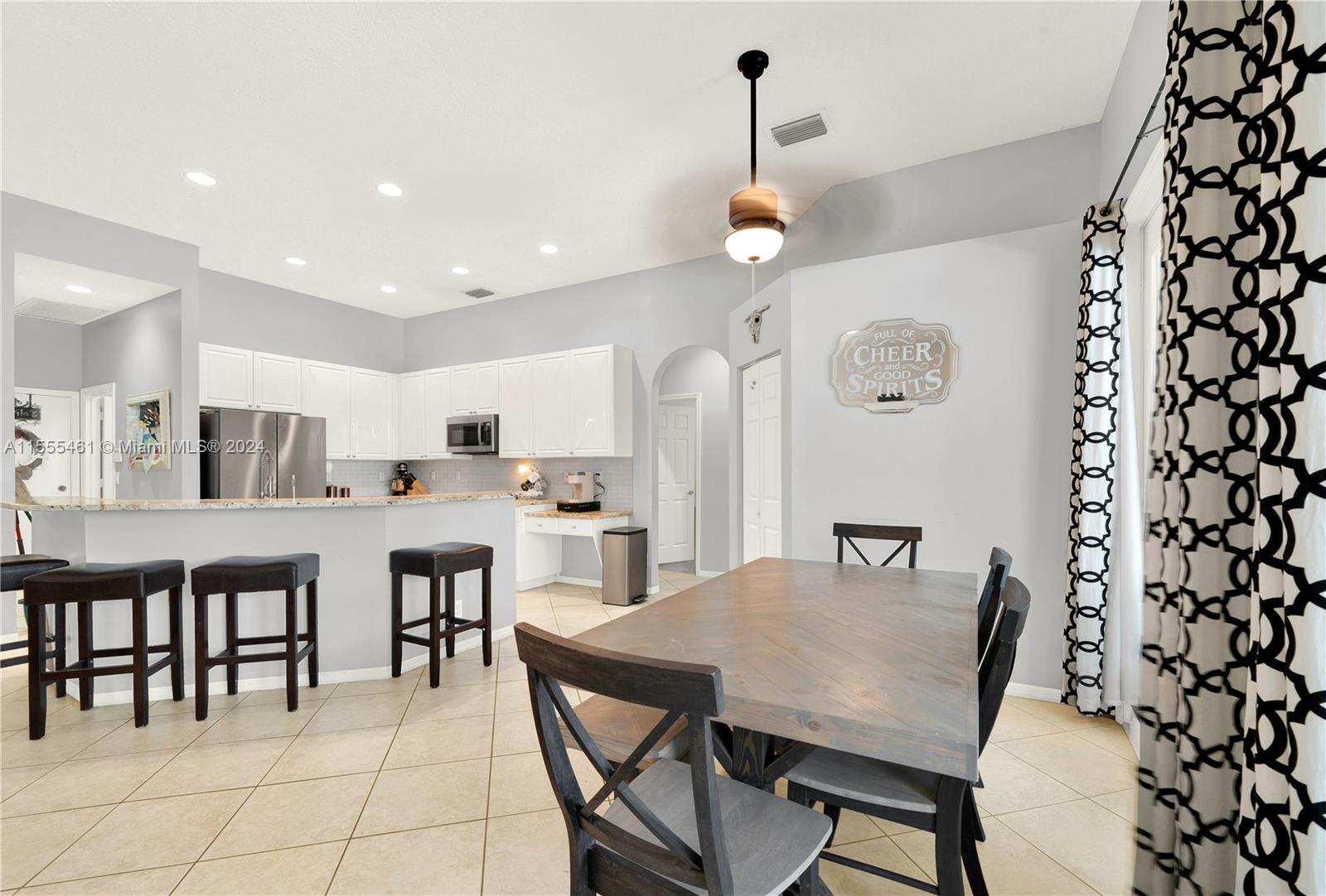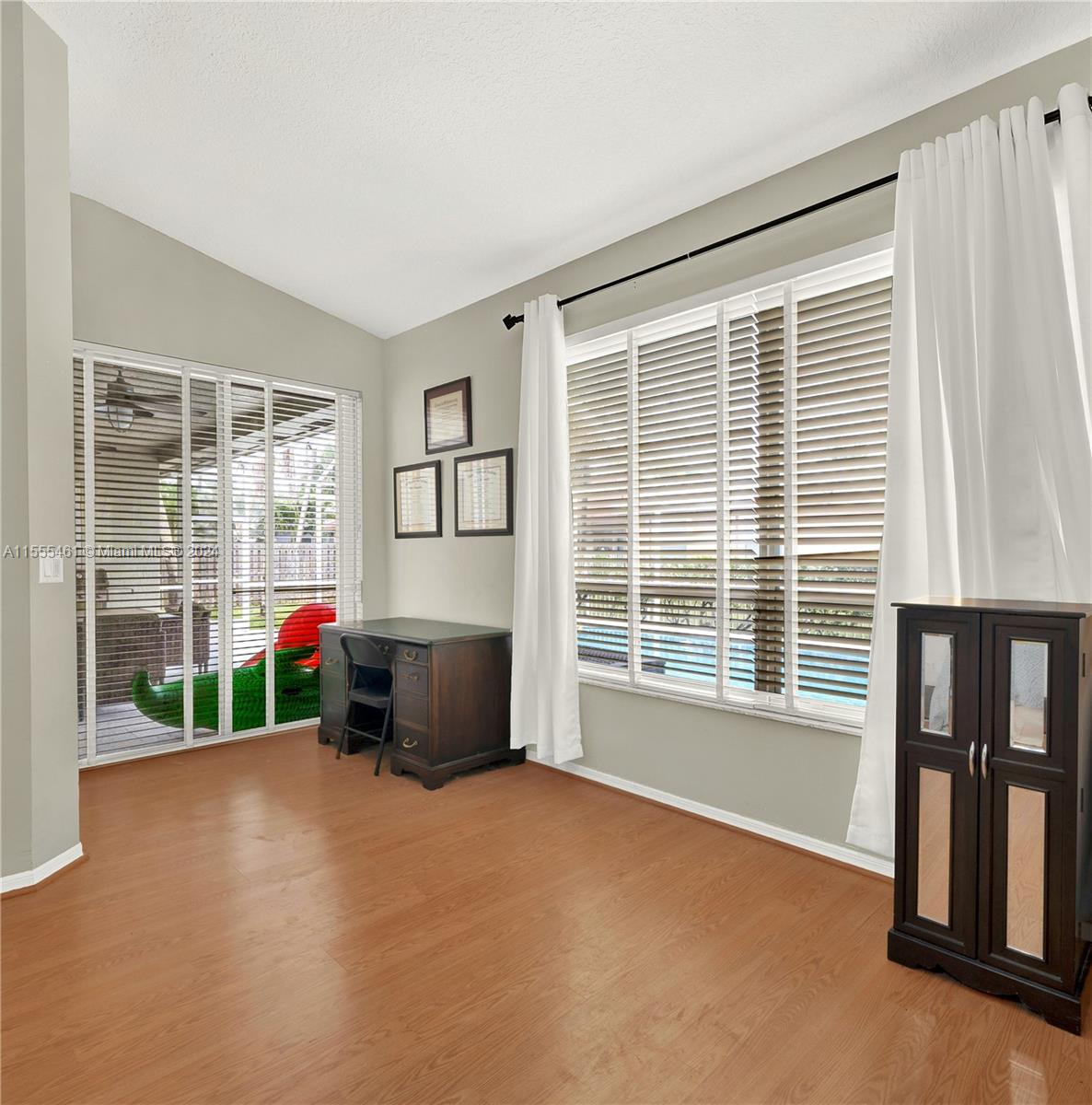 Welcome to an exquisite 4 bedrooms, 3 full bathrooms, corner lot, 3 car garage, one story oasis in the highly sought-after Majestic Bay neighborhood within Pembroke Falls. Private screened in freeform pool offers a perfect blend of elegance and comfort with plenty of fenced in yard space. With a split floorplan, the owners suite is a true retreat featuring an additional space for an office and/or sitting area with direct access to the patio and pool. Its ensuite bathroom is a sanctuary of relaxation with two stand alone sink vanities, a soaking freestanding tub and a separate walk-in shower. The heart of this home lies in the bright open kitchen and family room, with triple French doors perfect for hosting gatherings. A true MUST see! Garage refrigerator does not convey. SqFt (liv) 2,598