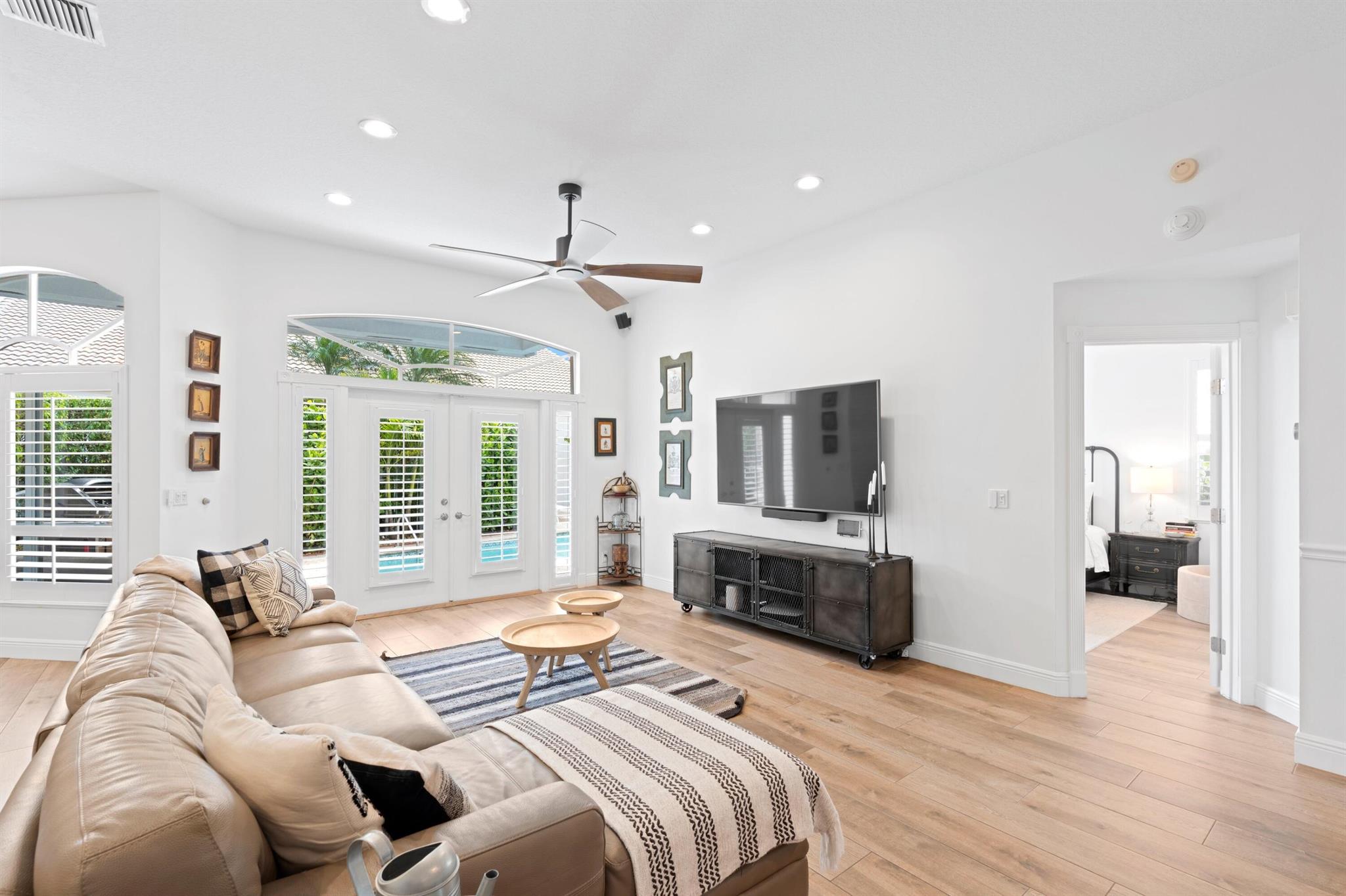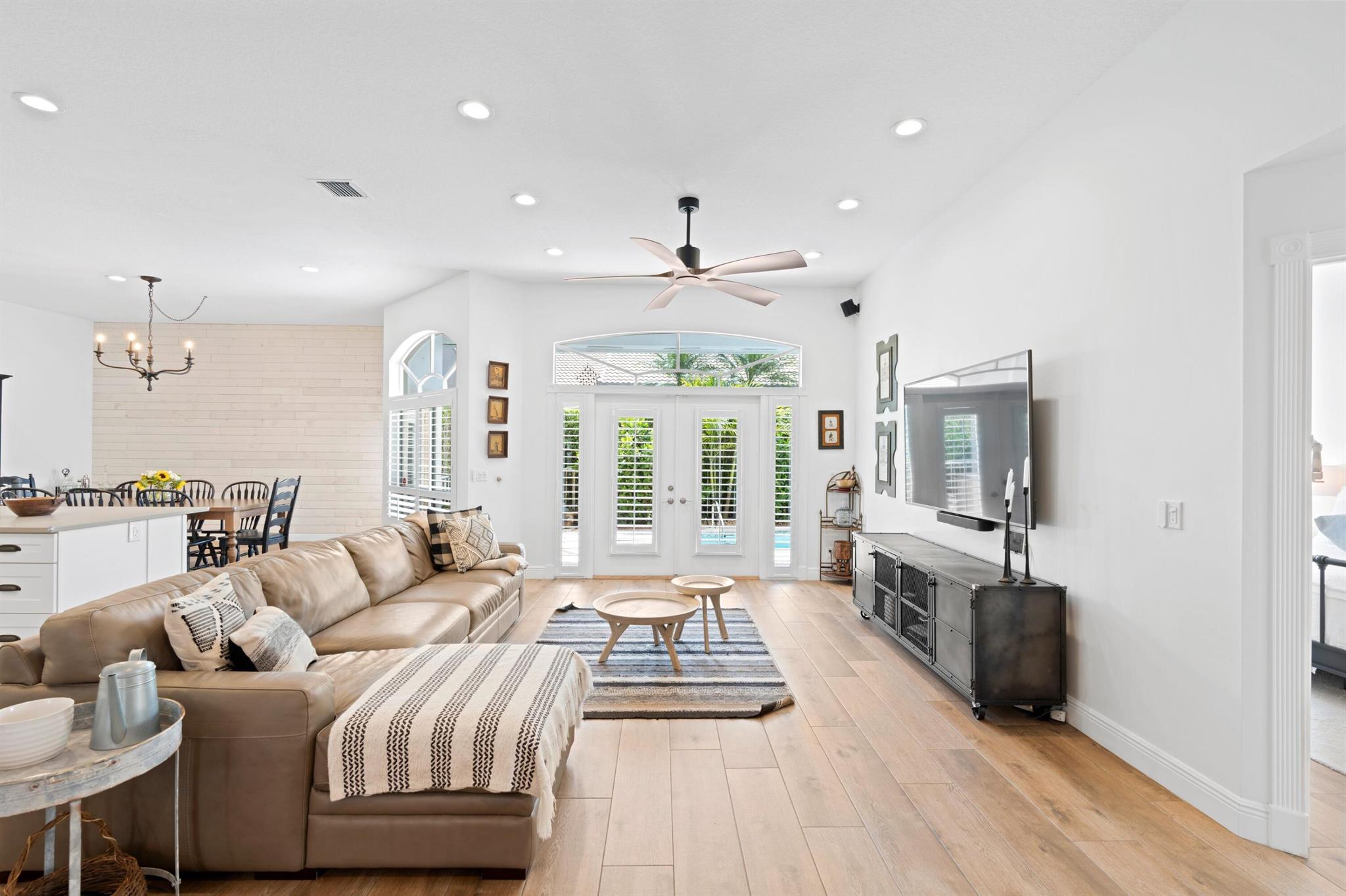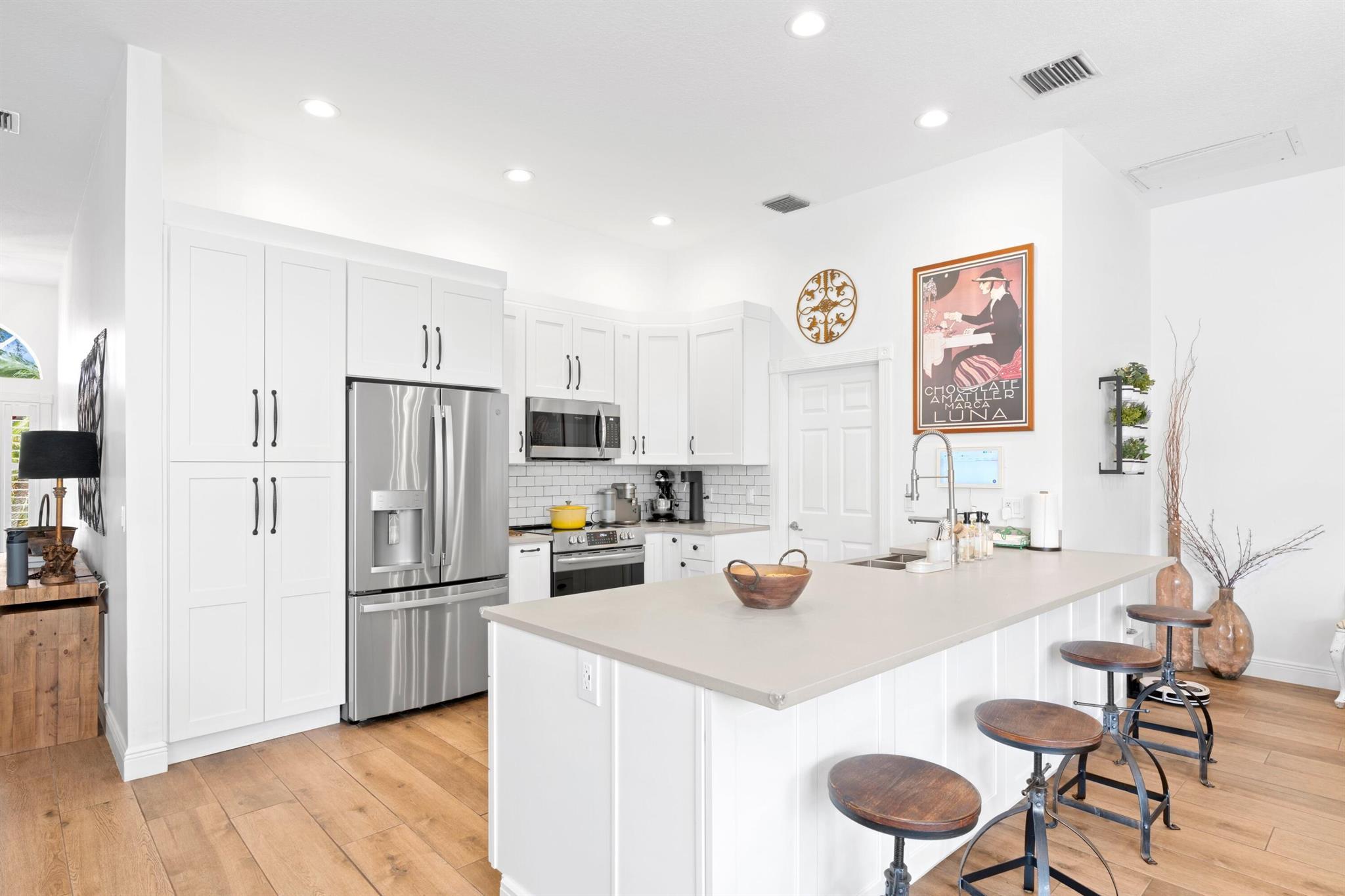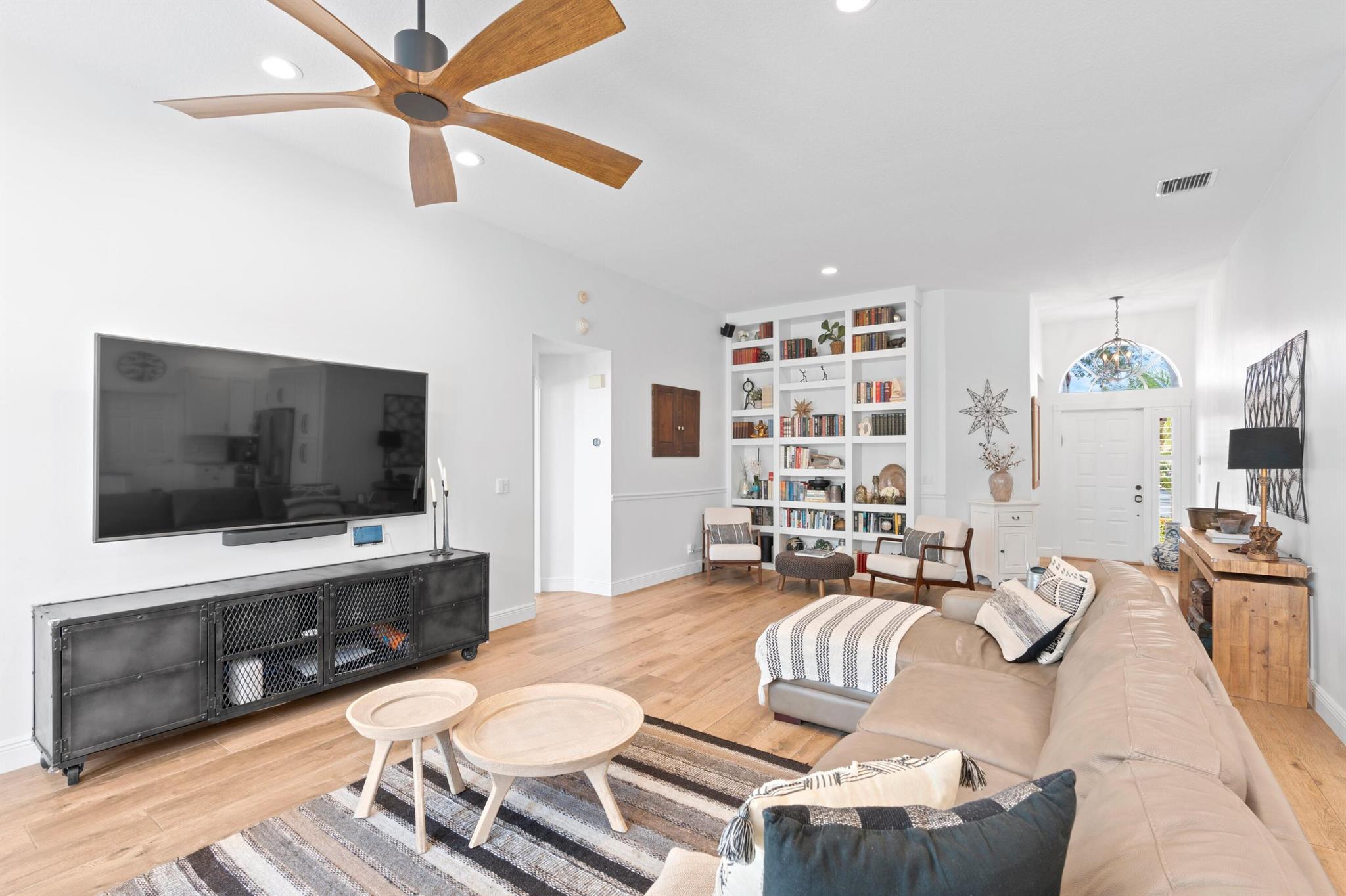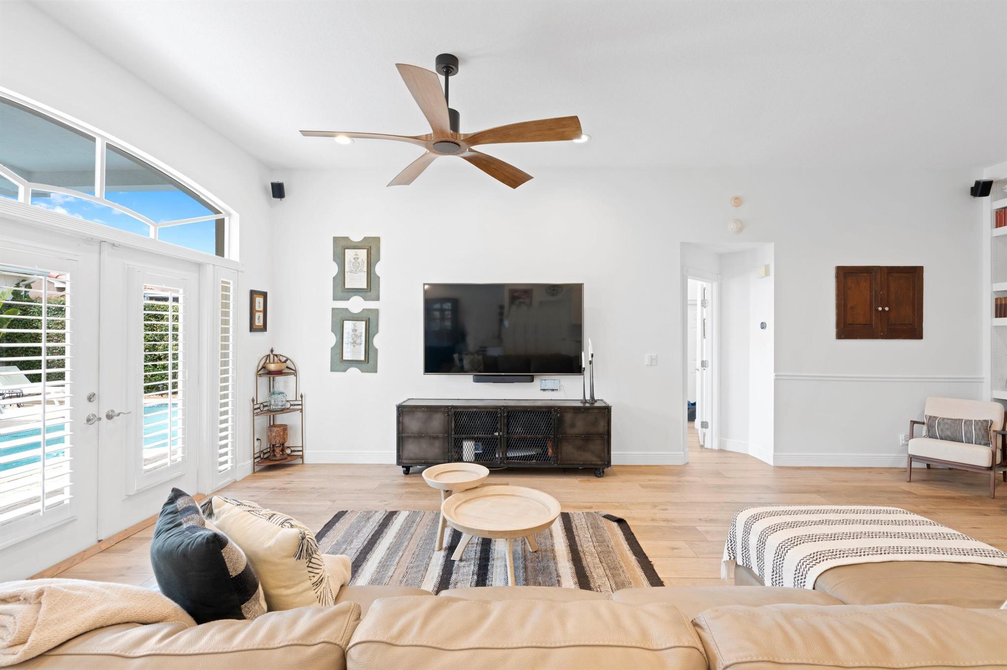 Relax in modern luxury in this stunning, fully renovated pool home in sought after Costa del Sol! This modern farmhouse design boasts bright, open living spaces and soaring ceilings. Enjoy peace of mind with the new roof (2021). Inside, discover a chef's dream kitchen with gleaming quartz countertops, new stainless-steel fridge (2023), and beautiful dovetail cabinetry. Built-in floor-to-ceiling bookshelves and plantation shutters add a touch of sophistication throughout. Outside dip into paradise in your sparkling private pool, resurfaced and converted to saltwater (2022) for a refreshing, low-maintenance experience. The west-facing backyard offers the perfect spot to unwind in style and/or entertain while enjoying stunning sunsets. (see more)