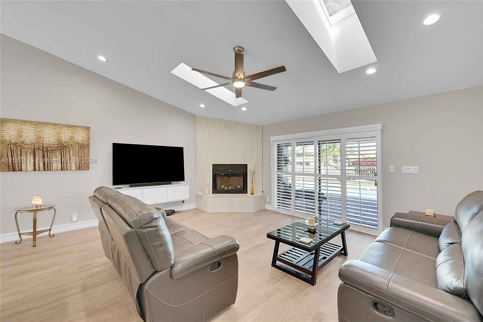 Welcome to this stunning 4-bedroom, 3-bathroom triple split home nestled in the desirable Cypress Isles neighborhood! 2-car garage with a circular driveway. Spacious, light, and bright open floor plan, this home features neutral tile plank floors throughout, and a gourmet kitchen with quartz countertops & stainless steel appliances. Custom cabinetry and Plantation shutters throughout the home. Separate sitting room off the primary bedroom with wood beams. Beautifully remodeled bathrooms. Fireplace. Skylights. Accordion shutters, new roof 2021, and so many more upgrades. Enjoy outdoor living at its finest with a fenced private backyard, sparkling pool (15x30), and the most amazing lake view in the community. Don't miss out on this exceptional opportunity to own your dream home!