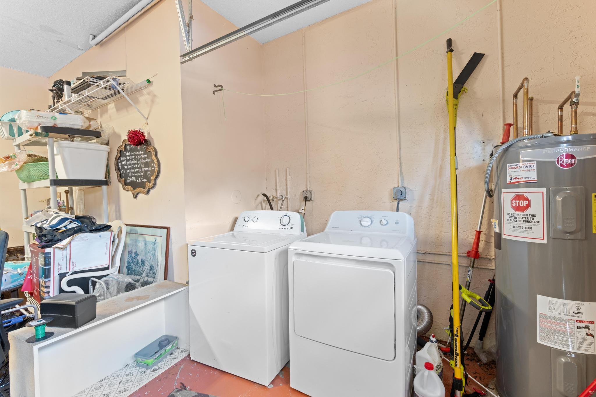 This charming 4 bedroom, 2.5 bathroom home offers a blend of comfort and functionality. Boasting two separate living and entertaining spaces downstairs to relax and gather. A bathroom off the kitchen adds to the practicality to the layout. The full 2-car garage offers with washer and dryer, making laundry a breeze. Enjoy a private backyard patio, perfect for relaxing or hosting parties. All guest bedrooms, hall bath and owners suite w/ private bathroom and walk-in closet are located upstairs. Upgrades include NEW ROOF 2021, WATER HEATER 2022, A/C UNIT and SS APPLIANCES 2023. Low HOA includes maintenance of common areas, exterior painting every 10 years, irrigation, landscape of bushes in front of home, tree trimming and community pool.