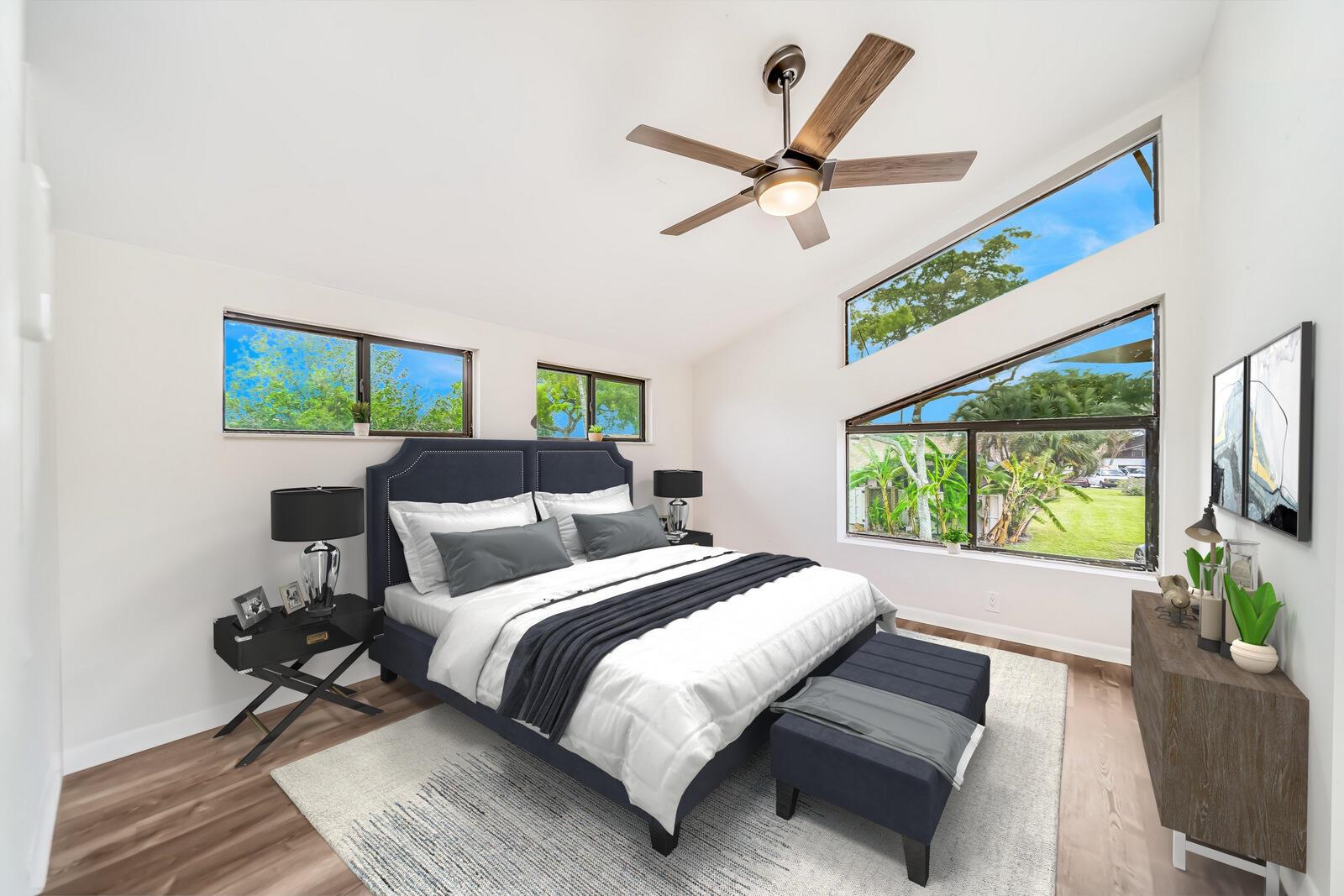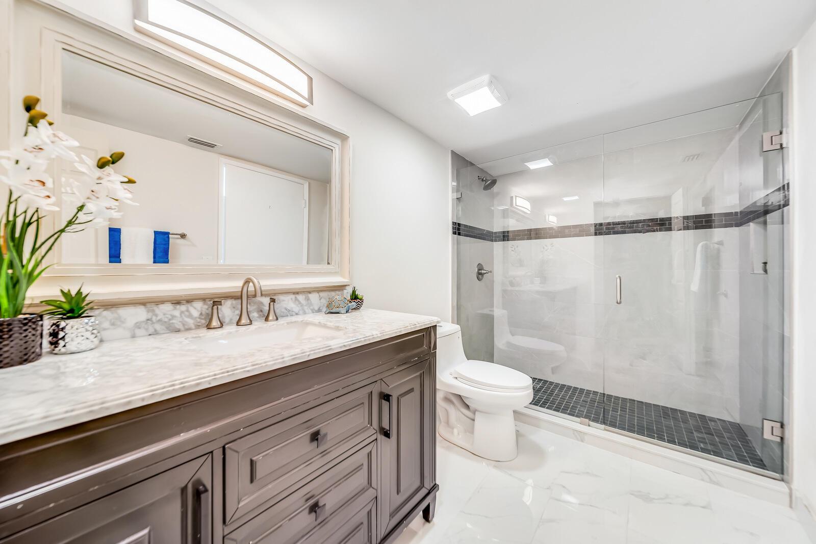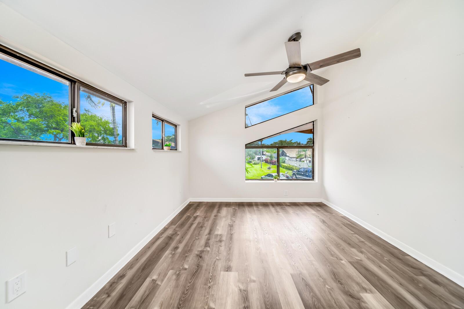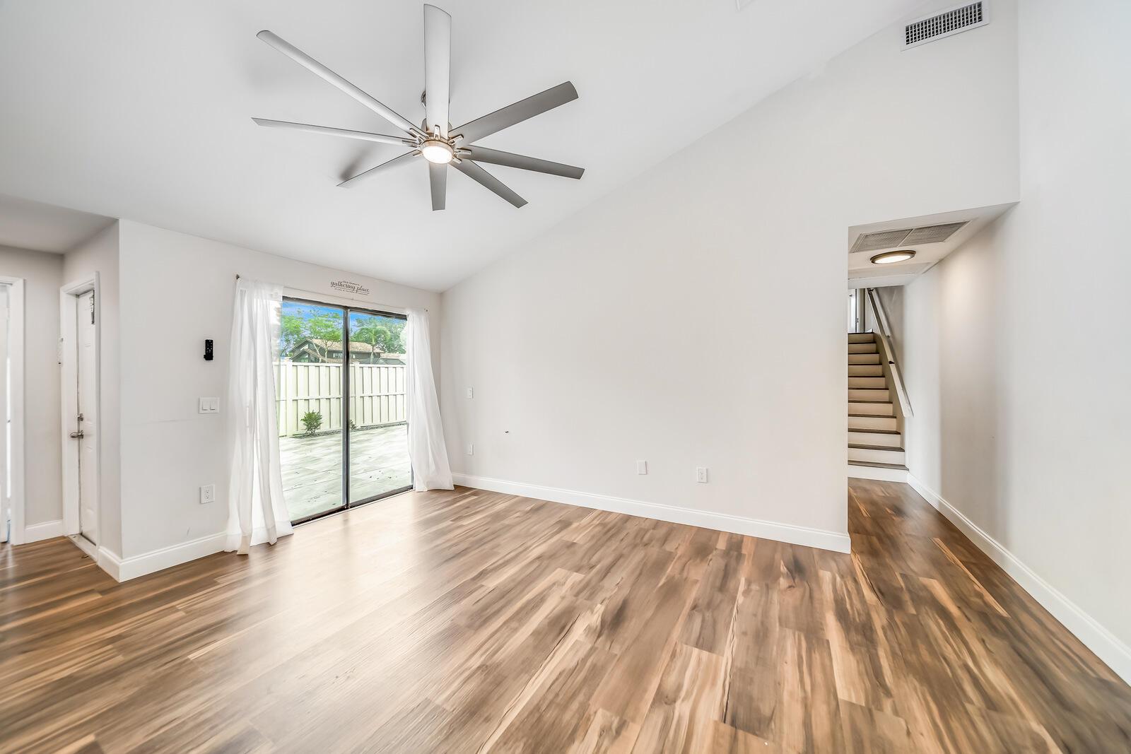 Totally updated, open and bright with soaring vaulted ceilings this townhome features three bedrooms, three-and-a-half-bathrooms, a one-car garage, attached driveway, an assigned parking spot, and guest parking. Private fenced in 800 square feet expansive courtyard entry with tile flooring is perfect for relaxation and entertaining! Luxury vinyl flooring throughout. Gourmet kitchen features newer modern updates including quartz counter tops, glass tile backsplash, stainless appliances, white shaker wood cabinetry, a huge stainless farmhouse sink and more! All bedrooms have there own En Suite bathrooms & all 4 bathrooms are updated. Guest/Cabana bath is convenient for swimmers.