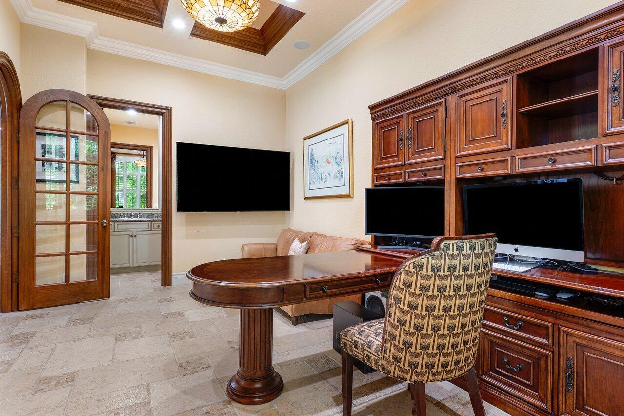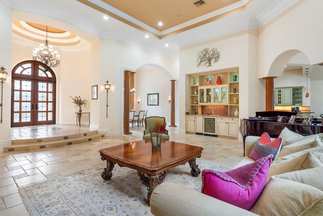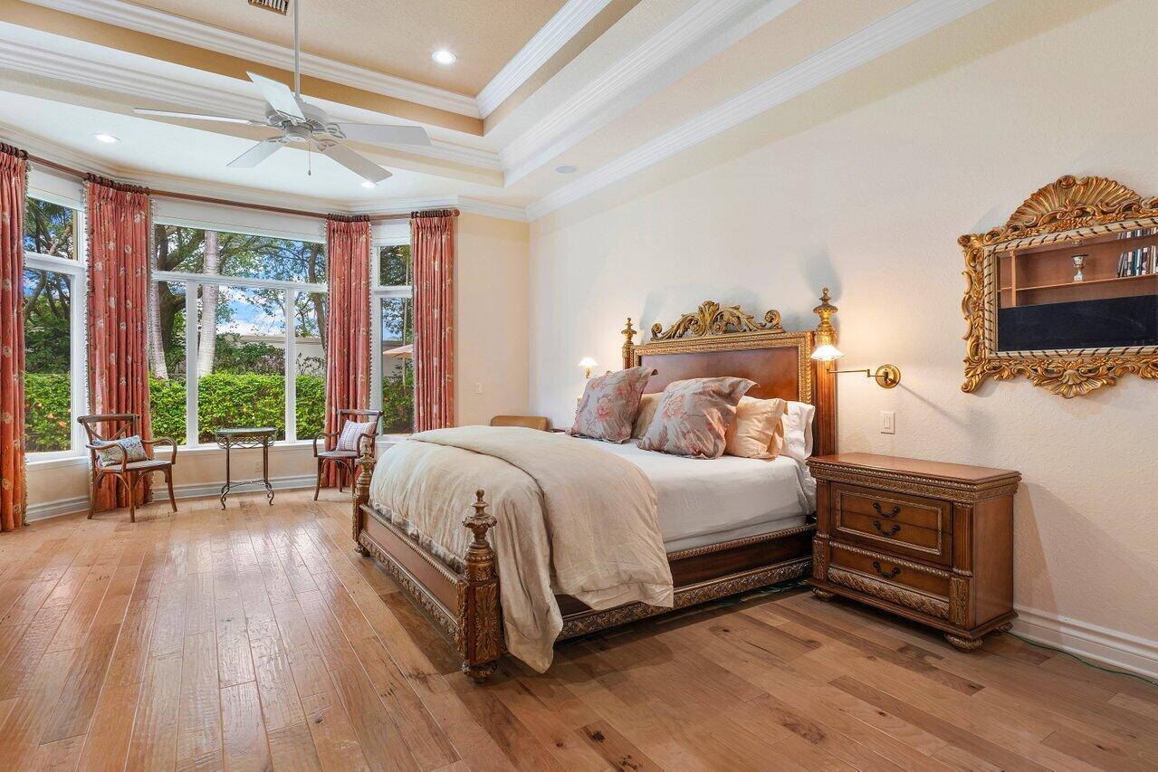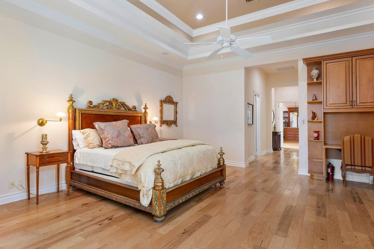 Experience multi-faceted sophistication in this one-story timeless gem in the prestigious Grand Estates section of The Oaks. This exquisite Armand estate boasts 4 bedrooms & 51/2 bathrooms. Featuring coffered ceilings, triple crown molding & a luxurious primary suite. Elegant marble floors w/ custom inlays lead you to a sophisticated French-inspired kitchen equipped w/ elite stainless-steel appliances, granite countertops, & a butler's pantry. The primary suite impresses with two bathrooms and dual closets w/ an extravagant ''hers'' dressing room. Outside you find a tropical oasis w/ summer kitchen, heated pool & spa, & a screened covered patio. Complete w/ a whole house generator, impact glass, LED lights, circular driveway & a 3-car garage. The epitome of class & comfort!