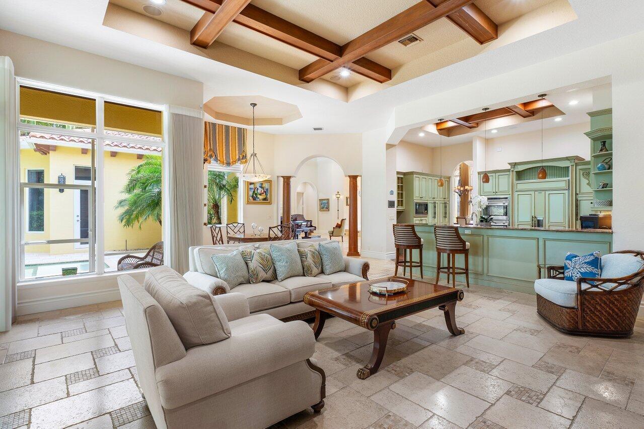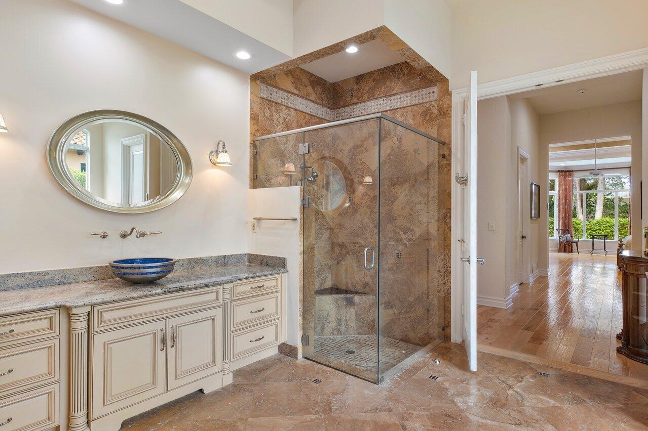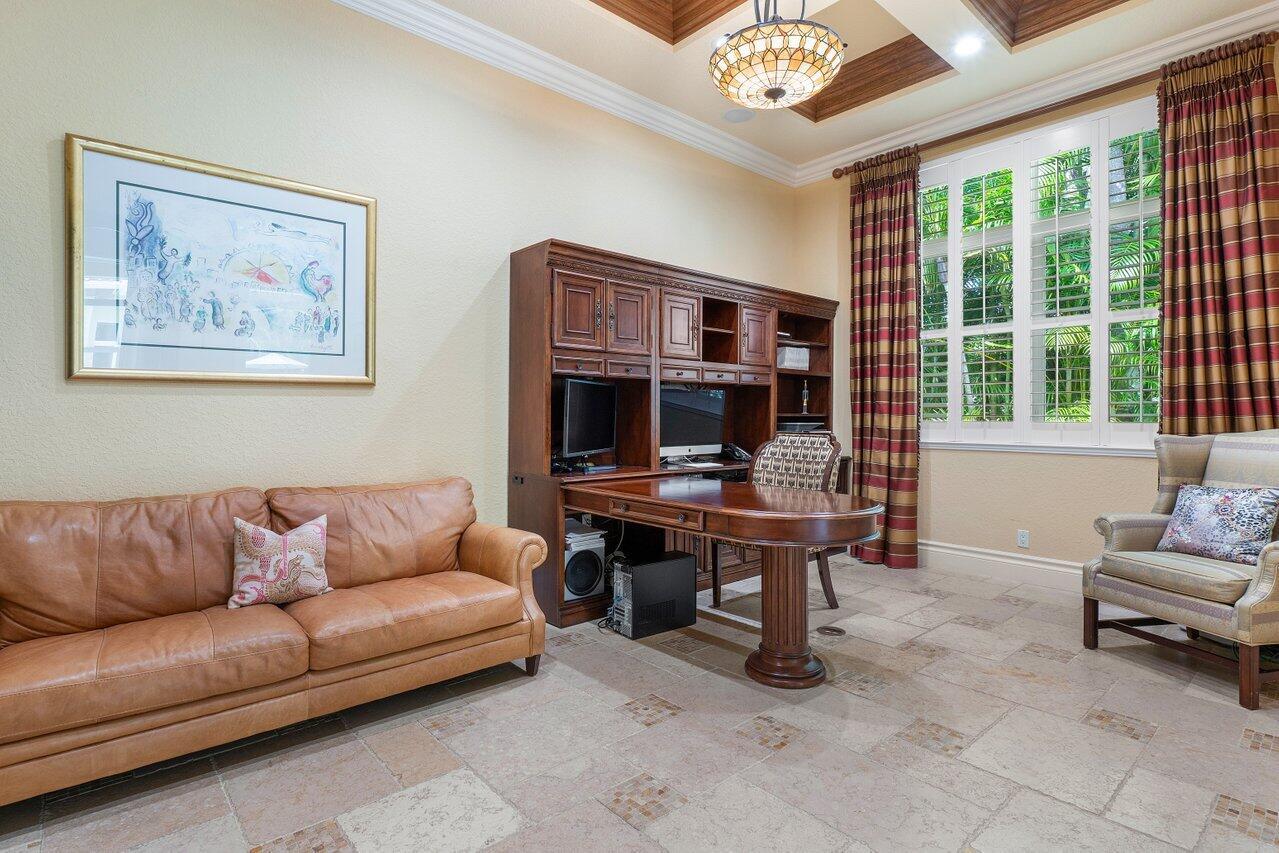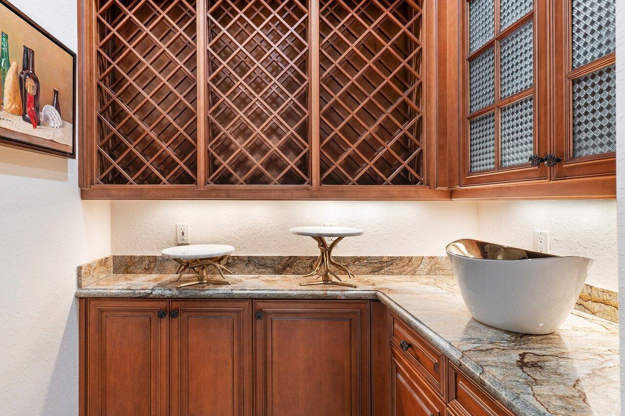 Experience multi-faceted sophistication in this one-story timeless gem in the prestigious Grand Estates section of The Oaks. This exquisite Armand estate boasts 4 bedrooms & 51/2 bathrooms. Featuring coffered ceilings, triple crown molding & a luxurious primary suite. Elegant marble floors w/ custom inlays lead you to a sophisticated French-inspired kitchen equipped w/ elite stainless-steel appliances, granite countertops, & a butler's pantry. The primary suite impresses with two bathrooms and dual closets w/ an extravagant ''hers'' dressing room. Outside you find a tropical oasis w/ summer kitchen, heated pool & spa, & a screened covered patio. Complete w/ a whole house generator, impact glass, LED lights, circular driveway & a 3-car garage. The epitome of class & comfort!