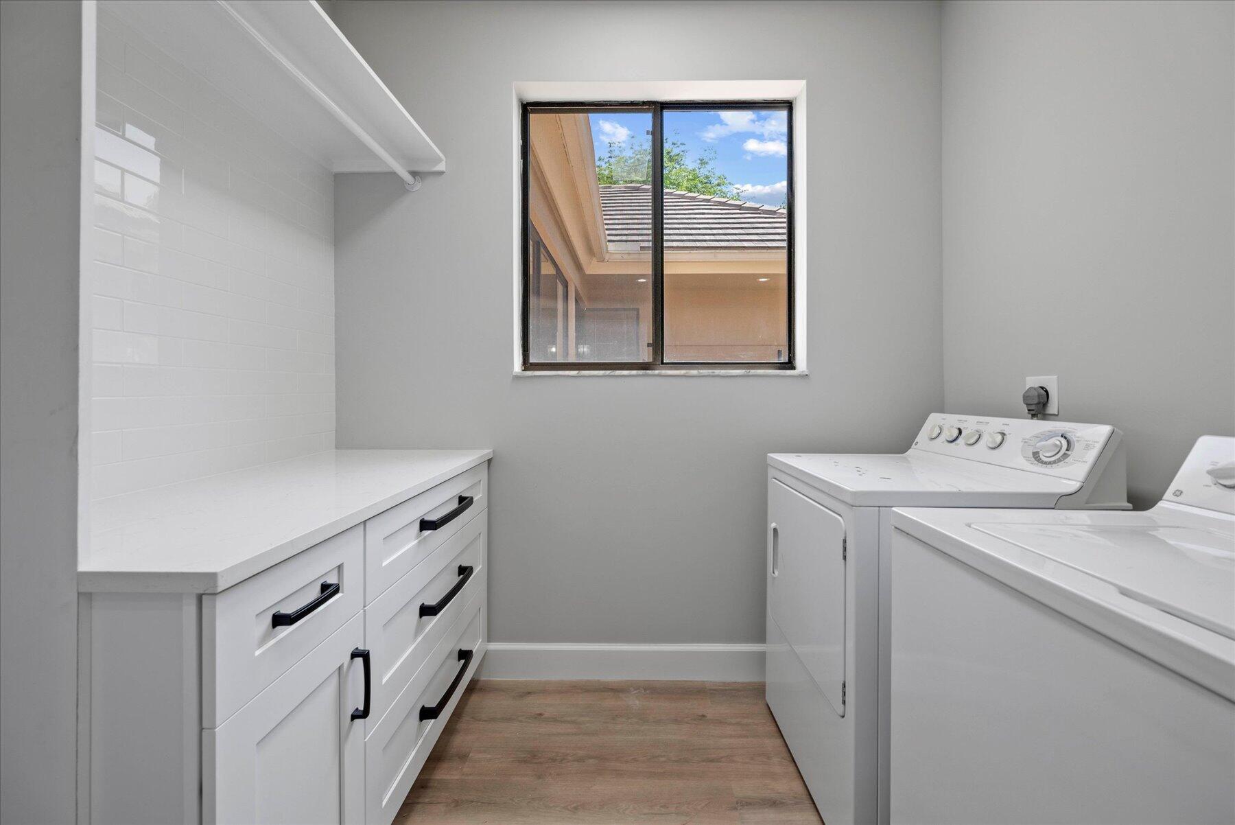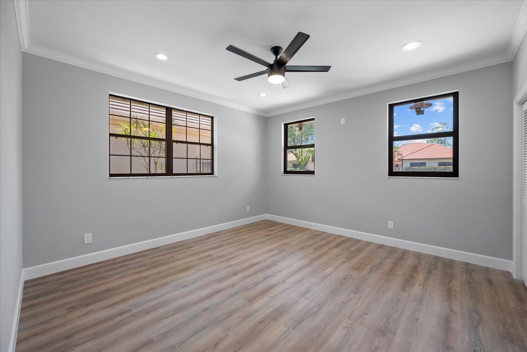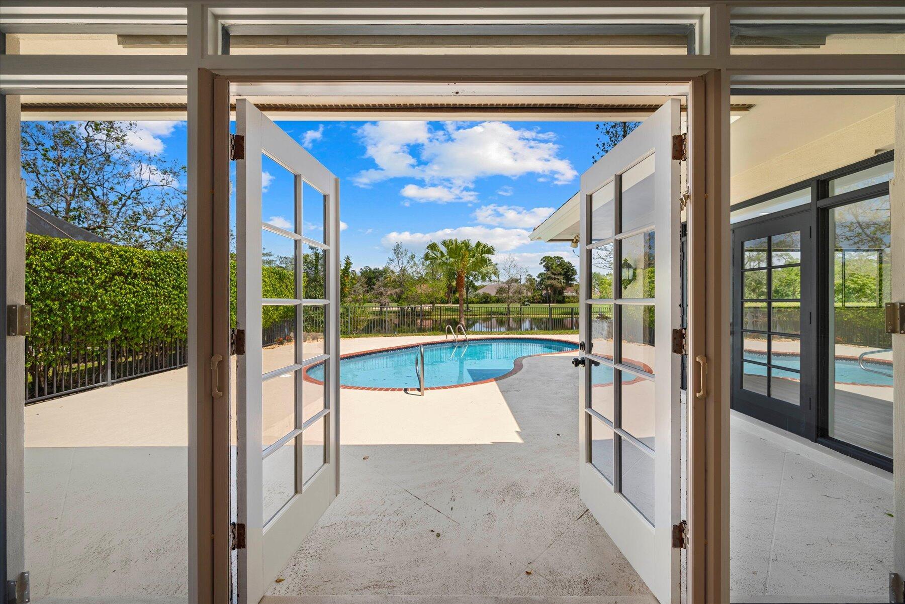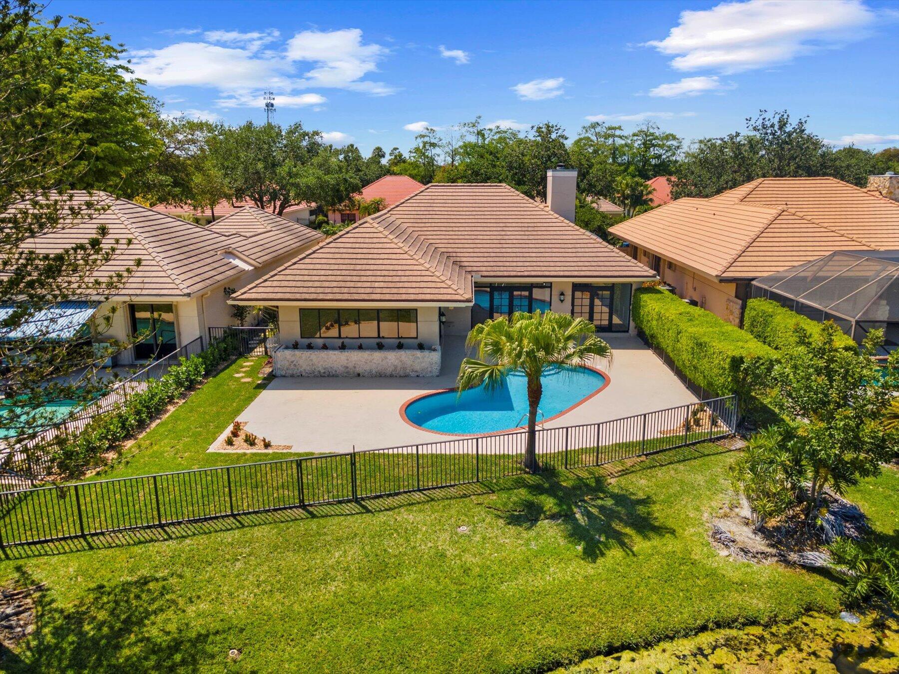 Welcome to this exquisite three-bedroom, two-bathroom home nestled within an exclusive gated community. Totally renovated, this prestigious residence boasts unparalleled luxury with renowned award-winning golf courses just steps away. Enjoy opulent living with a private pool overlooking breathtaking views of both the serene lake and the lush greens of the prestigious golf course. With its upscale amenities and unrivaled location, this home offers everything you could ask for including refined living in a secluded paradise. Also offers peace of mind to know home has all the necessary features for hurricane protection and a roof installed in 2016. The Rees Jones golf course and clubhouse has been totally renovated. Should you join the club, You'll also have full access to the club's