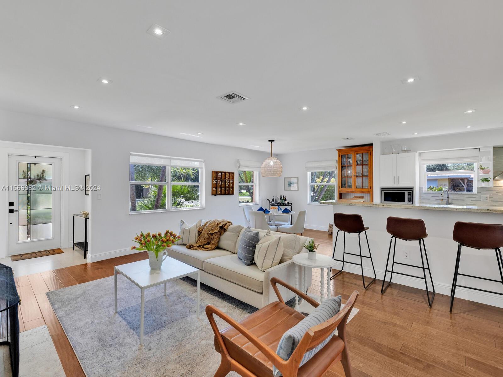 Welcome to Shores Casa Rosa! Discover peace and serenity in this nicely updated Miami Shores pool home. Enter into the light and bright, sun-drenched great open-flow plan with large formal living, dining, updated kitchen, and spacious media room opening to the spectacular tropical gardens, including a fabulous sparkling heated pool, large entertainment patio, and lush privacy landscaping throughout— your own private oasis! Unwind in the lovely main ensuite retreat with updated bath, plus a guest wing with updated bath and two spacious guest rooms. All situated on a corner lot with a side alley garage entry (spacious one-car garage), newer roof and AC, plus impact windows and doors, all in a non-flood zone, just a few blocks to Downtown Miami Shores shops and restaurants. Welcome home!
