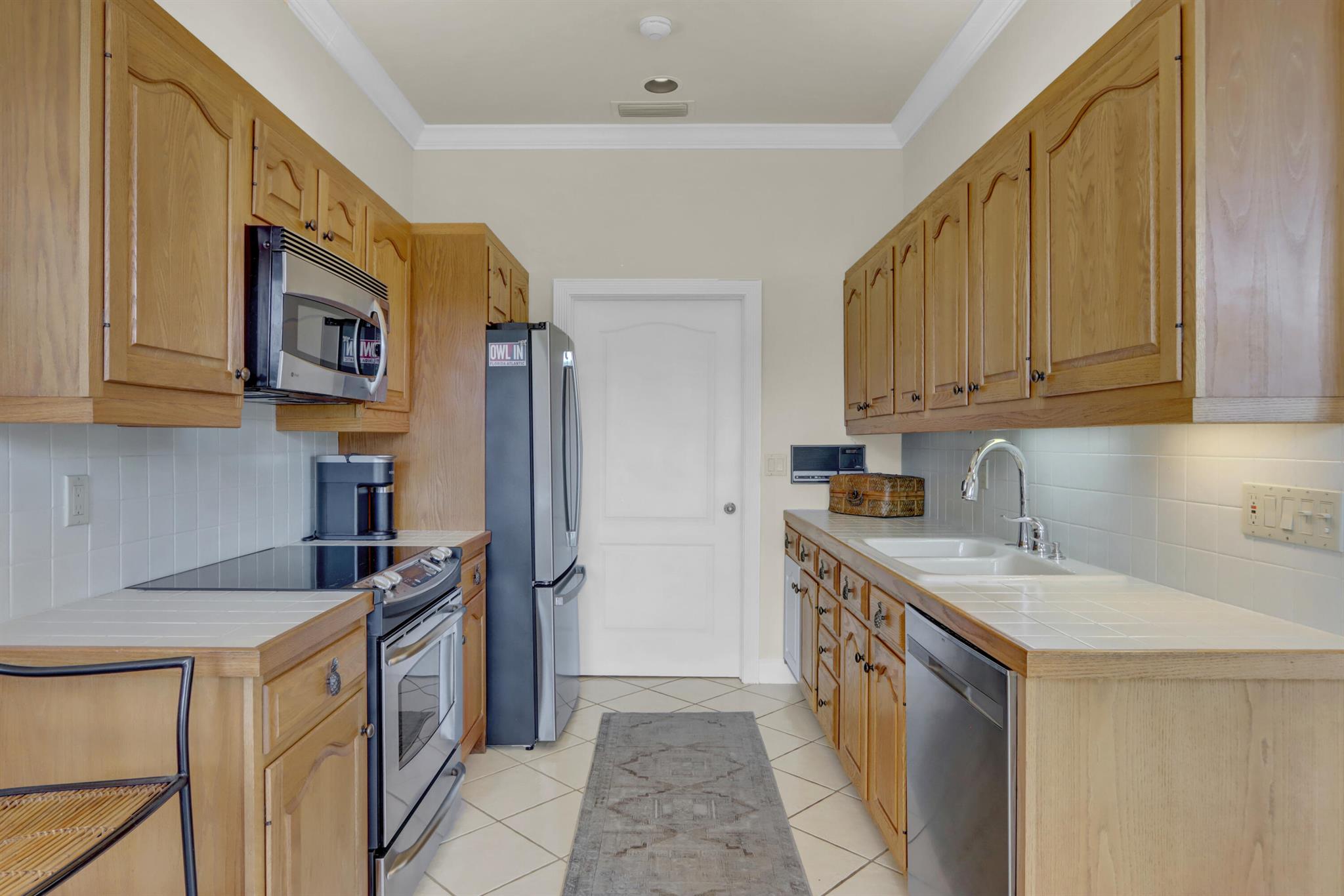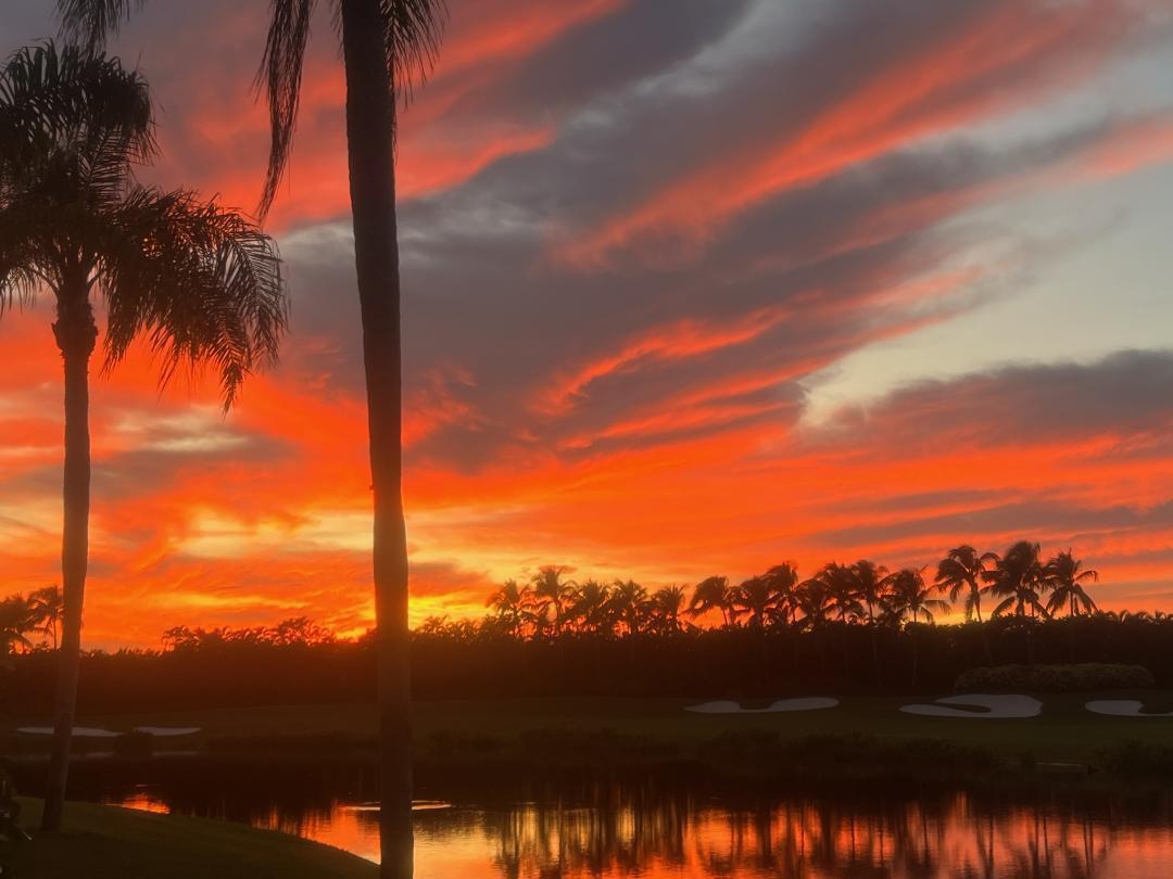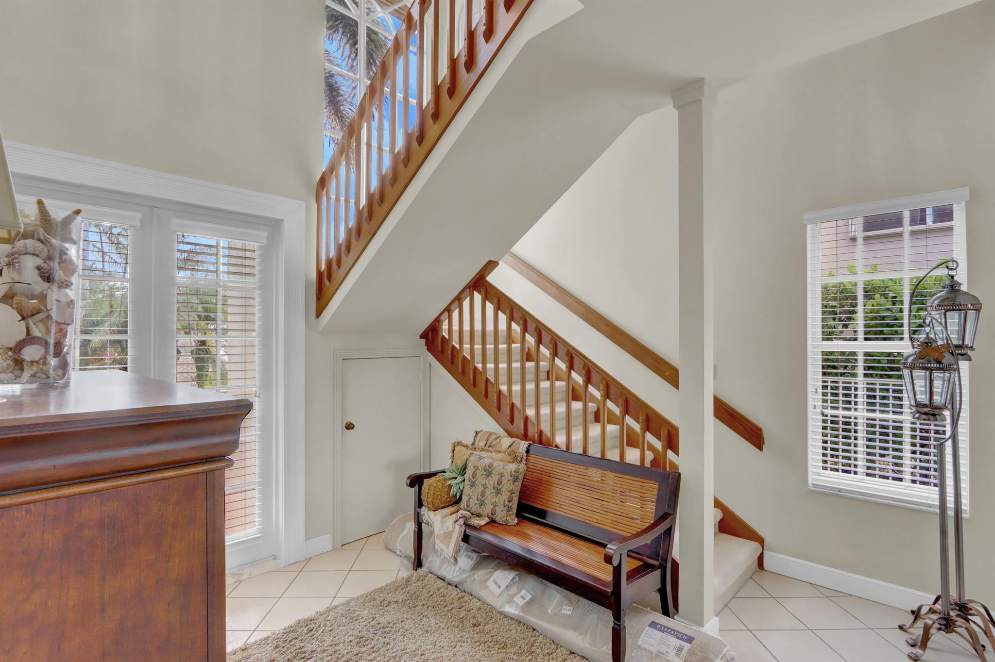REDUCED TO SELL! Amazing sunsets every evening! Enjoy beautiful lake & golf course vistas from this charming 2-story home of 2 bedrooms plus a convertible den & 2 1/2 baths. This lovely home offers off-white tile floors laid on the diagonal; flat wall finish; a galley kitchen with medium oak cabinetry & newer stainless steel appliances; 2-zone air conditioning (2011 & 2020), central vacuum system, newer washer & dryer; hurricane impact French doors along the rear and a lovely pavered open patio featuring a splash pool with fountains on the lake and golf course with a new fence. Roof replaced 2019.
