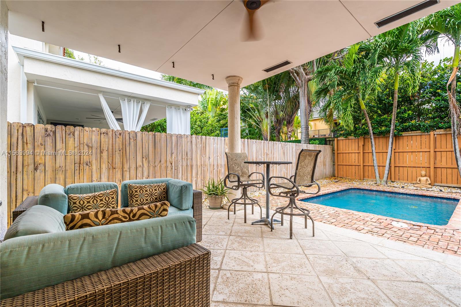 Calling all Groveites! Amazing opportunity to purchase a 2-story townhouse with a private pool on one of the most adored streets in Coconut Grove! Very close proximity to Grove Village, Cocowalk, Parks, A+ schools, shopping, pickleball, tennis and Michelin-Star restaurants. Features: Gated entrance with a one car garage, and extra storage. Large Primary bedroom with 2 walk-in closets and private terrace. Fabulous covered patio with custom-built outdoor kitchen with bar, grill, tv and refrigerator. Recent upgrades include a 4-ton HVAC, pool pump, filter and saltwater system and a Ubiquiti IT system. Orange Street is quiet and rarely available. High elevation and steps to all Grove amenities. Location, location, location!