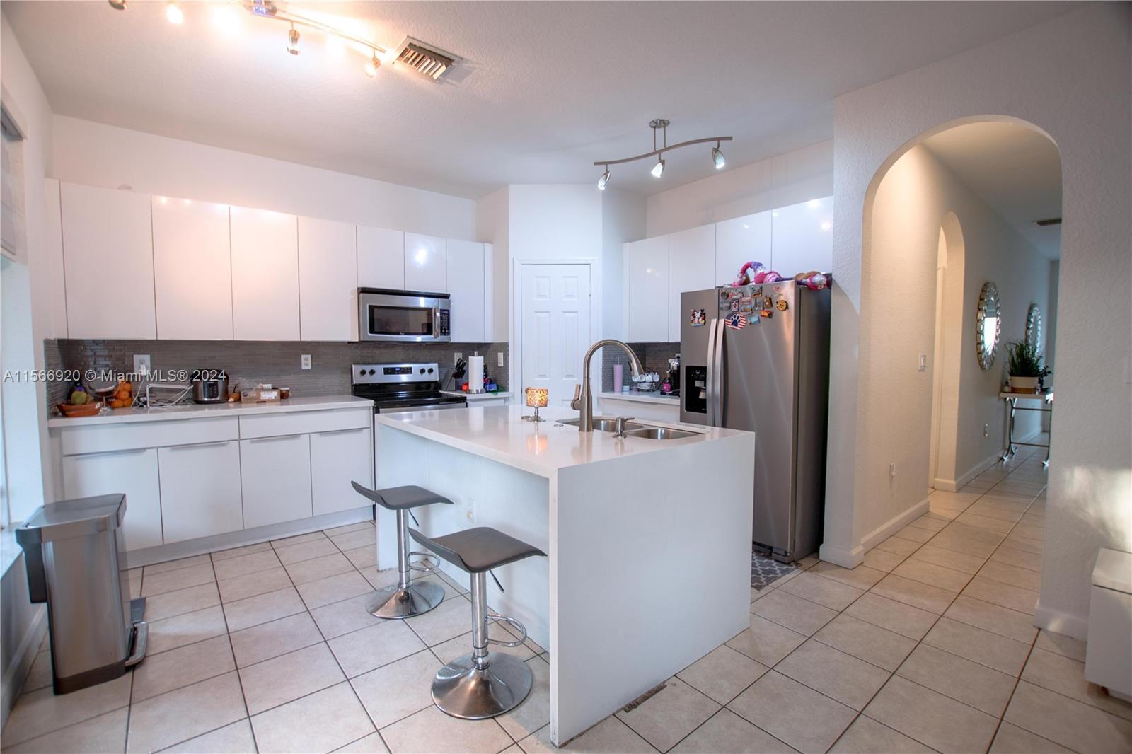 Beautifully Remodeled 2-Story Townhouse Located in the Gated Community of Sonoma in Doral. This Light & Airy home features: 3 bedrooms & 2.5 bathrooms with vaulted ceilings, laminated wood & tile flooring thru-out, Open Floor Plan, kitchen with stainless steel appliances, large breakfast counter, and pantry, All Bedrooms are upstairs. Primary room with walk in closet & bathroom with dual sinks & separate shower & tub. 1 car garage, plus 2 parking spaces, and convenience guest parking just across the street. Located in the best school district in Miami-Dade County. Close proximity to all major highways with easy access to Dade and Broward County. Great location close to shopping areas. Perfect for First Time Home Buyers or Investors! A Must See Home!!