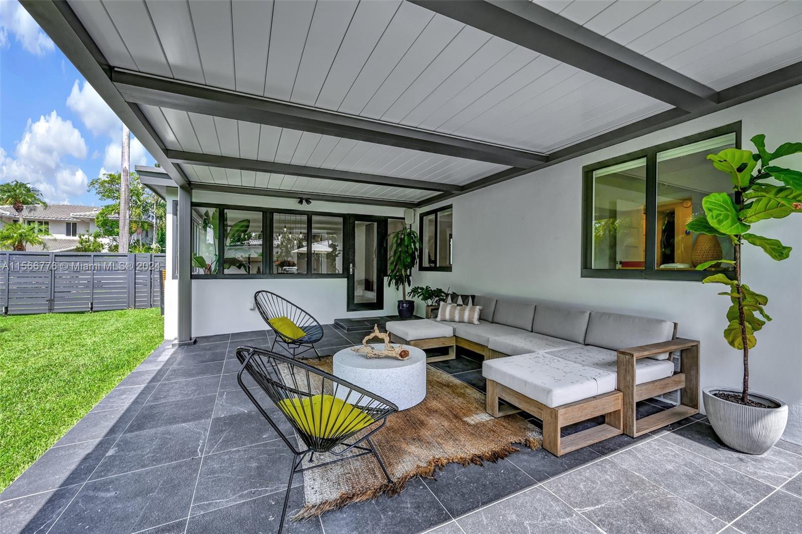 Ease into the prestigious North Bay Island community and discover a remarkable home that encapsulates the essence of modern tropical living. This fully renovated and thoughtfully designed residence epitomizes the concept of open space, offering a seamless flow throughout. Boasting three bedrooms and three bathrooms, this home provides generous living areas for comfort and enjoyment. Each room offers delightful vistas, inviting you to gaze upon the expansive greenspace backyard. Wander outside and relish in the oversized terrace, complete with a remote-controlled louvered pergola, creating the perfect ambiance for relaxation. Every detail in this home has been meticulously attended to, showcasing a commitment to quality and luxury.