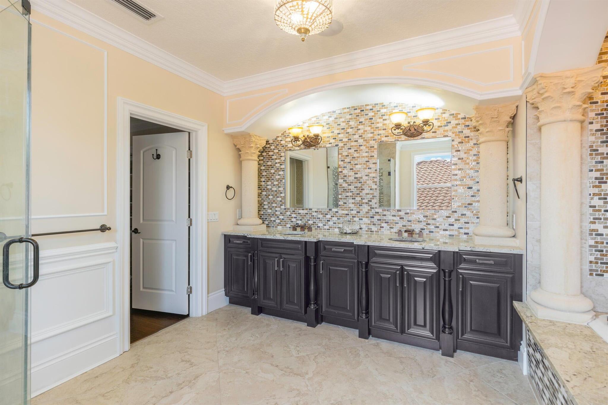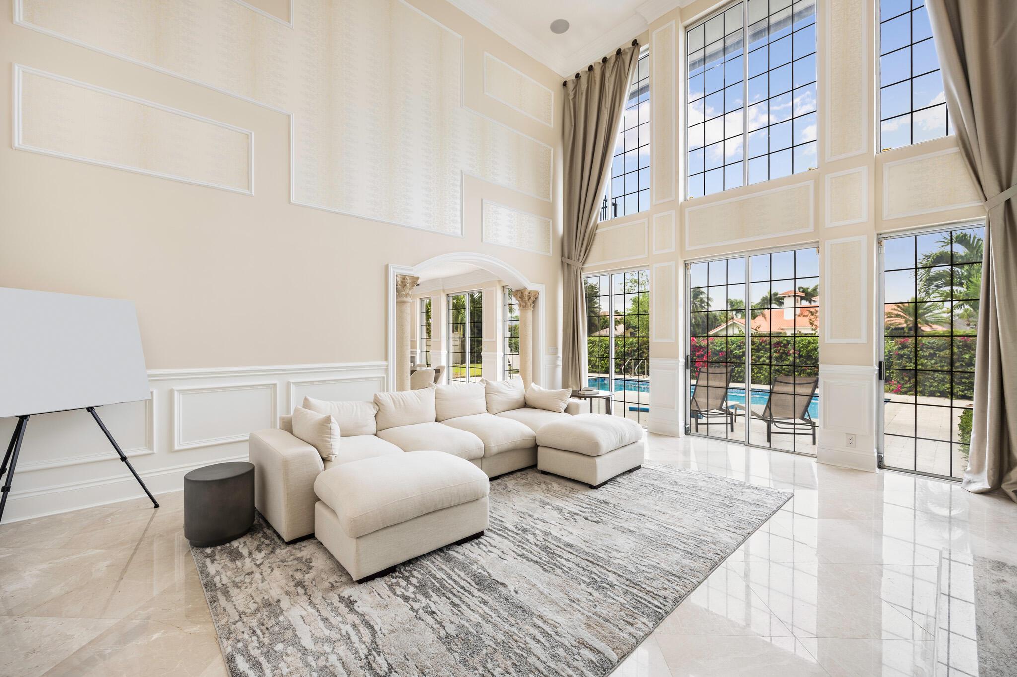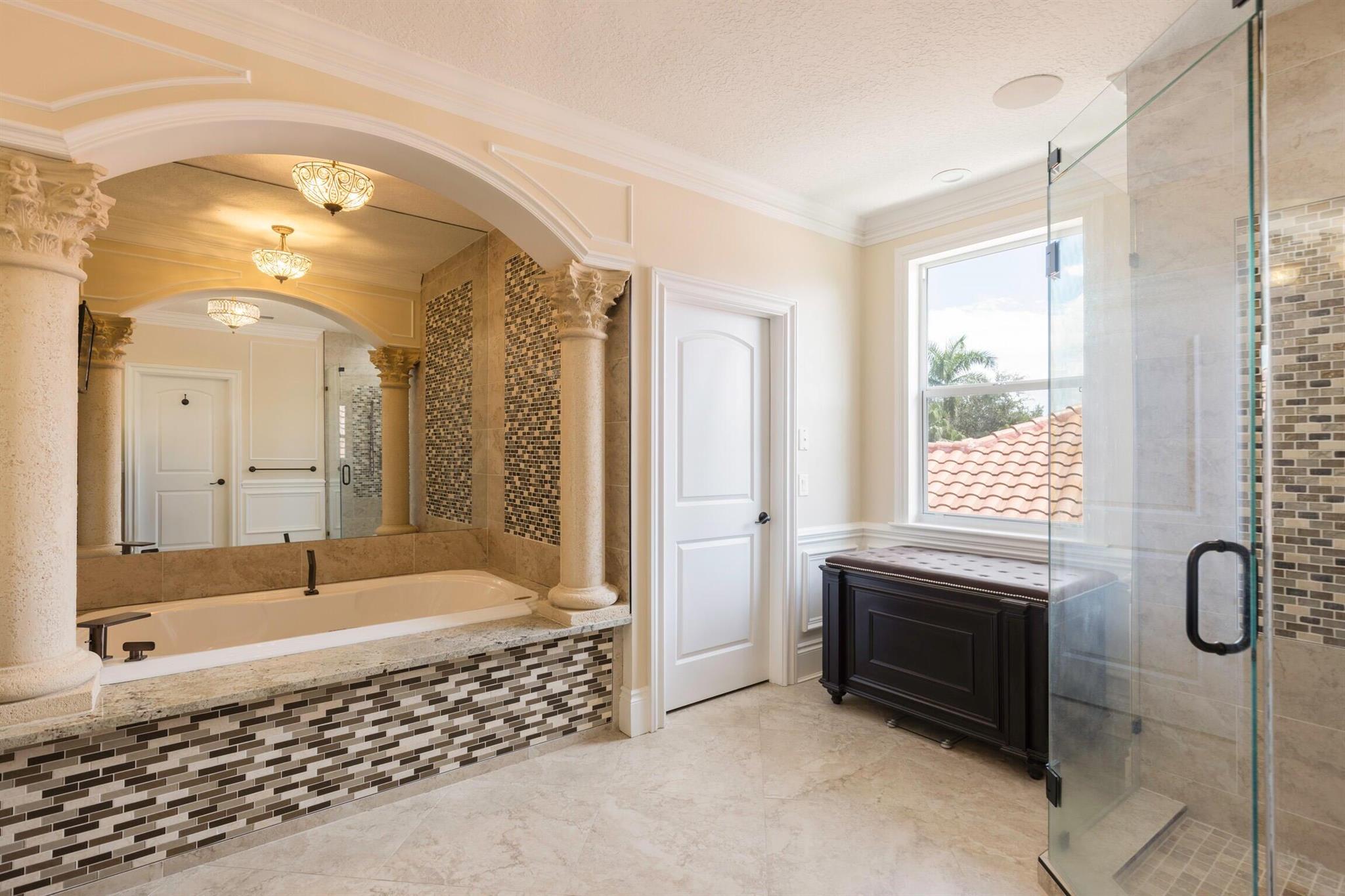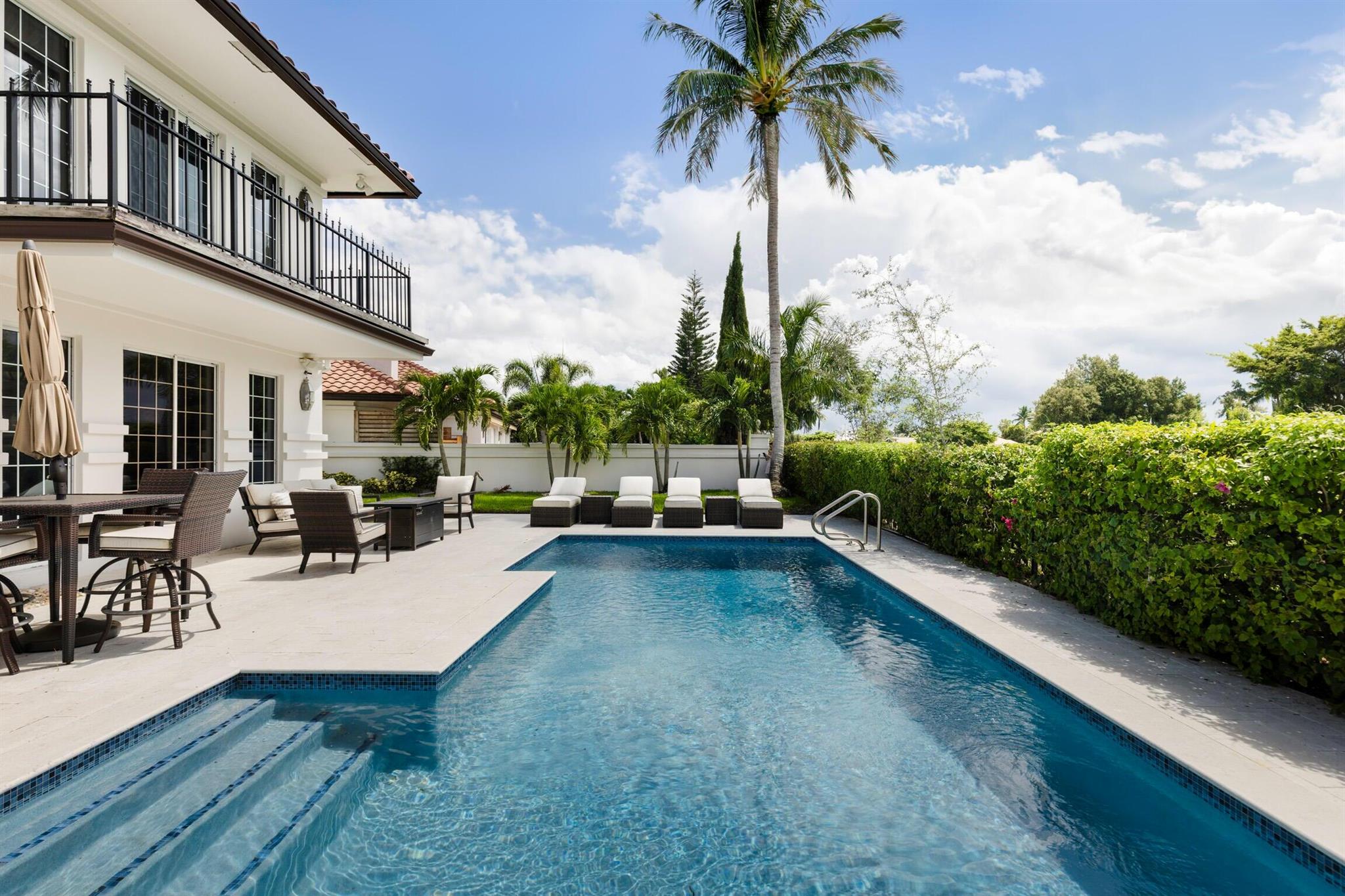 Located in the highly sought after & gated Boca Grove Community, this home is tucked away on a quiet cul-de-sac, w/ a beautiful pool & lawn for your family to play w/ views of the golf course. As you enter, the home features soaring ceilings that welcome w/ natural light and warmth. The first floor consists of an open concept kitchen & sitting area, double height living room & sitting area, formal dining room & a privately accessible ensuite bedroom for pool days. Upstairs features two large ensuite bedrooms including a large master suite wing w/ a giant walk-in closet, soaking tub, separate shower and double vanity. Walking distance to House of Worship. Club has been completely renovated and ready to be enjoyed! Showings begin Friday 4.12.24 after 1pm.