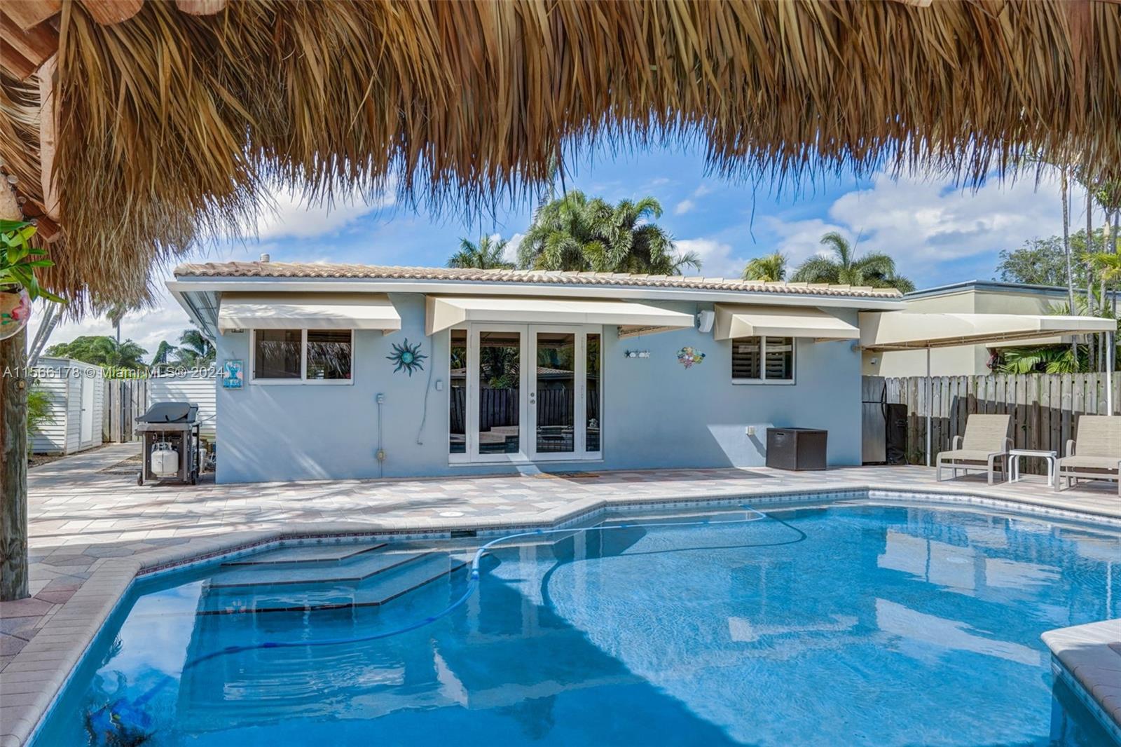 **GREAT NEIGHBORHOOD** Beautiful 3 bedroom 2 bathroom home near Hollywood Beach CC. Private backyard. In ground pool and jacuzzi alongside a custom tiki hut. Natural gas generator. Great for entertaining. East of US-1. Easy access to the beach and intracoastal. Updated kitchen with built-in double oven. Gas range. Engineered wood floors. Crown molding. Impact windows and doors throughout. Plantation shutters. Gas water heater and dryer. This property has a beautifully manicured front yard and long driveway for ample parking. Extremely well draining property, no issues with flooding. This is a great South Florida property!