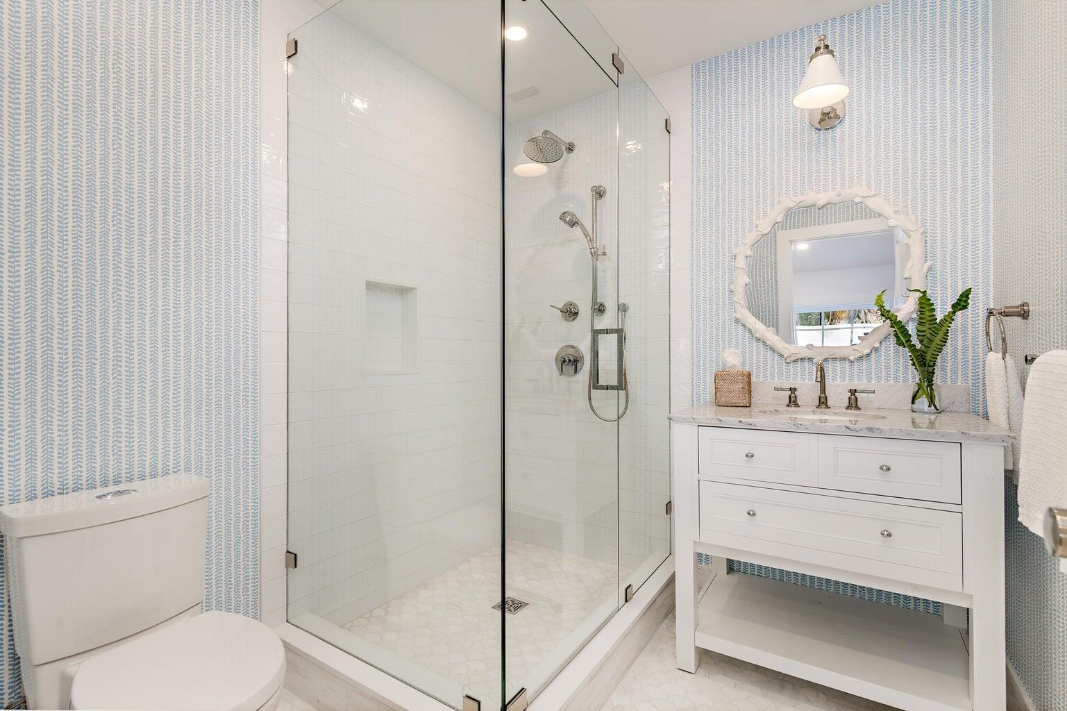 Step into this stunning, fully renovated 4 bed 3.5 bath home located in SoSo on a serene cul-de-sac with an easement to South Flagler where you can enjoy miles of waterfront path to walk, jog or bicycle ride along the water. This one-story gem, resting on an oversized 17,400 sf lot, underwent a complete transformation, including new plumbing and electrical wiring. The 2022-installed roof is double strapped for durability. The chef's kitchen boasts custom cabinetry, a kitchen island, Bosch gas cooktop, double ovens, dishwasher, and Thermador integrated fridge/freezer. With ample indoor and outdoor entertaining spaces, including a flowing living room, elegant dining area, and a cozy Florida room, it's perfect for gatherings.