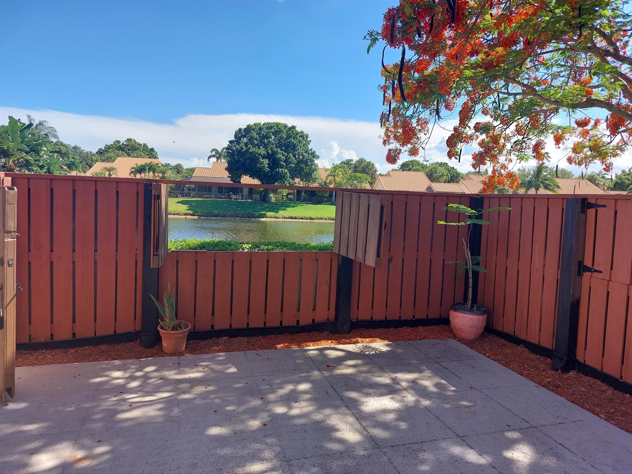 Fantastic 2 bed, 2.5 bath townhome with awesome lake views. Property features a spacious open courtyard patio that is fully fenced in. Main level has half bath with inside laundry room, great room, dining area and has storage under the stairs. 2nd floor has master bedroom and guest room with terrific lake views. Beautiful ceramic tile throughout. Kitchen has updated appliances. Appliances and high efficiency AC replaced in 2020. Water Heater replaced in 2022. Water is included in HOA fees. Community offer pool, sidewalks and hand ball courts. Great location, close to schools, shopping and I95.