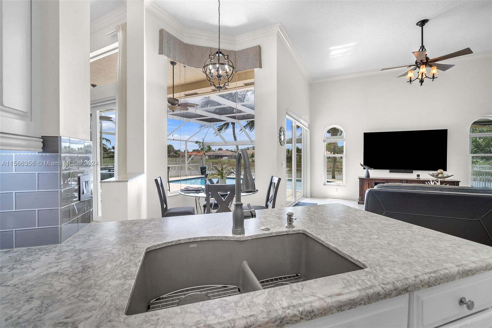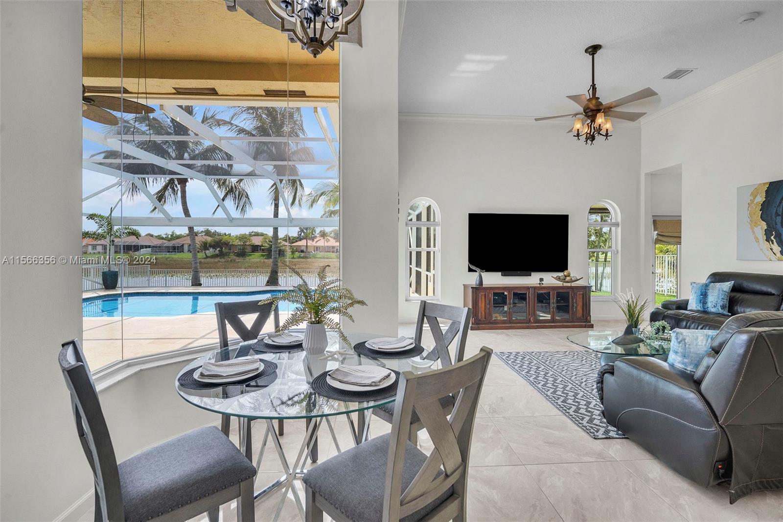 Spectacular fully-remodeled 5 BR, 3 full bath, 1 Story, Monterey model. Pool, screened patio, fenced yard, all overlooking gorgeous water, nature preserve. Possibly top home in exclusive manned-gated NW Pembroke Pines community of Stoneridge Lake Estates. 2021 roof, gutters, $51,000 of hurricane impact doors and windows, fully permitted instant-on generator, 500 gallon buried tank. All stainless steel eat-in JennAir kitchen, granite counters, top wood cabinetry, pantry. Best school set in Pembroke Pines incl Hawkes Bluff Elem. Low HOA fee incl manned gate security, cable, monitored alarm system, new tennis and pickle ball courts, tot lot, more. Superb location close to I-75 for easy commutes in every direction, walk to shopping, dining, entertainment. 5th BR currently configured as office.