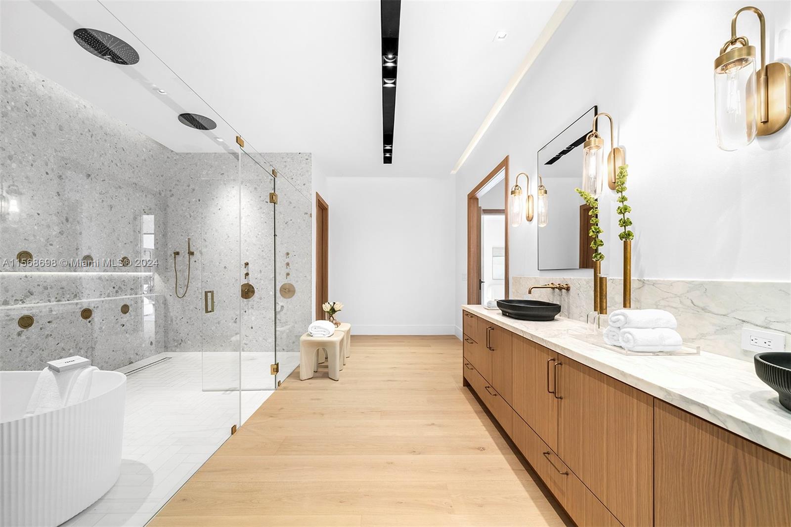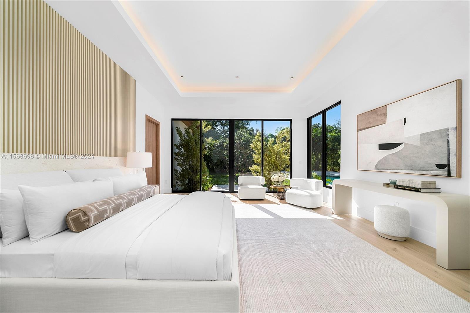 Explore this exceptional brand new 2024 modern oasis nestled in the heart of N Pinecrest. Enter through a grand foyer into an expansive open floor plan seamlessly blending formal living and dining areas with floor-to-ceiling impact glass. The kitchen serves as a culinary sanctuary, with custom wood cabinetry, SubZero/Wolf appl, and a sleek wet bar. Adjacent, the breakfast area provides tranquil vistas of the inviting family rm. Discover further amenities such as a detached guest/in-law suite, a dedicated home office, and a wine gallery. Step outside to enjoy the covered terraces, heated pool, jacuzzi, and a fully equipped summer kitchen. Delight in the convenience of gated entry, smart home capabilities, generator/solar energy options, and a three-car garage. Near elite Pinecrest schools.