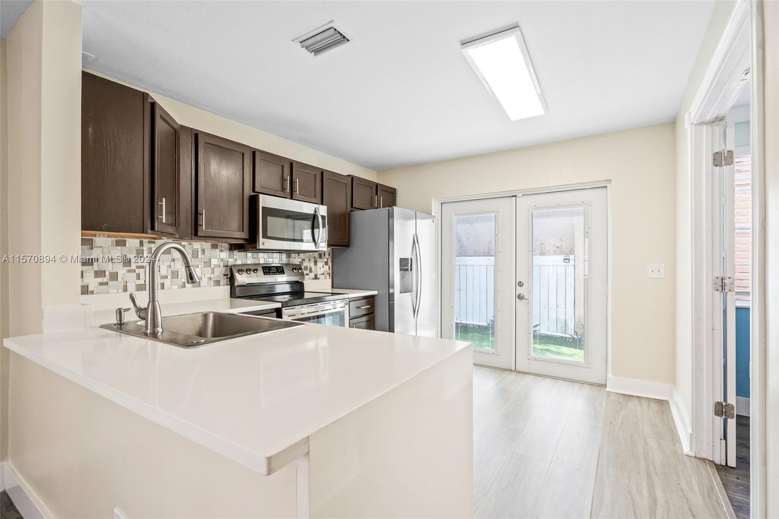 Indulge in modern luxury within this exquisite 3-bed, 2.5-bath residence, boasting a den/office, garage storage and rare ENCLOSED PATIO! NEW ROOF, AC, WATER HEATER. Revel in the array of upgrades, from waterproof laminate flooring to scratch-resistant finishes on the second floor. The kitchen is a focal point with its stainless steel appliances and quartz countertops, seamlessly blending with the updated bathrooms. 2 driveway parking spots and ample guest parking! Outside, the fenced backyard adorned with fruit trees invites outdoor relaxation. Nestled in a secure community, this home embodies both comfort & style. Conveniently situated near Pembroke Lakes Mall, CB Smith Park, Memorial Hospital, I-75, accessibility to amenities is unparalleled. Don't miss out on this turnkey gem!