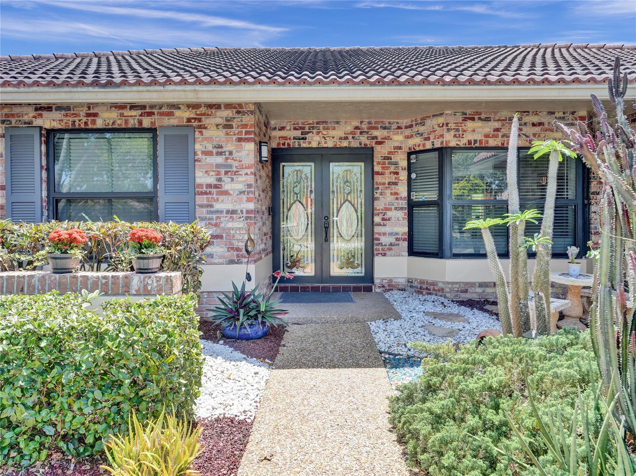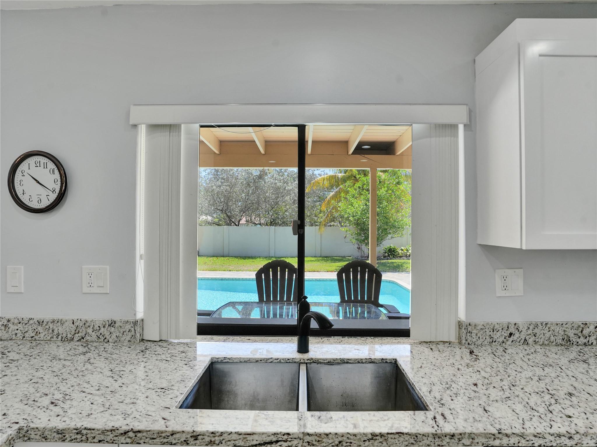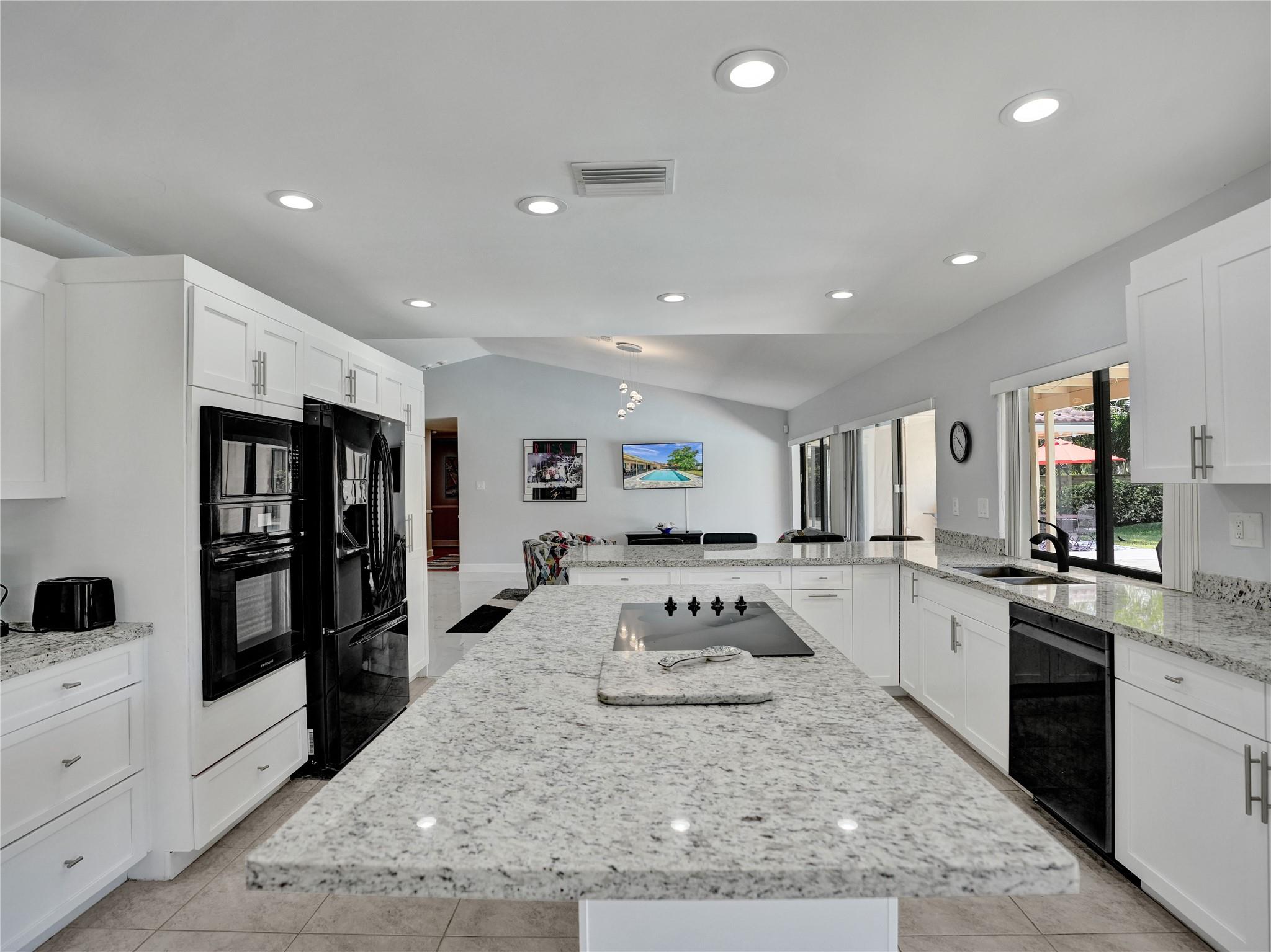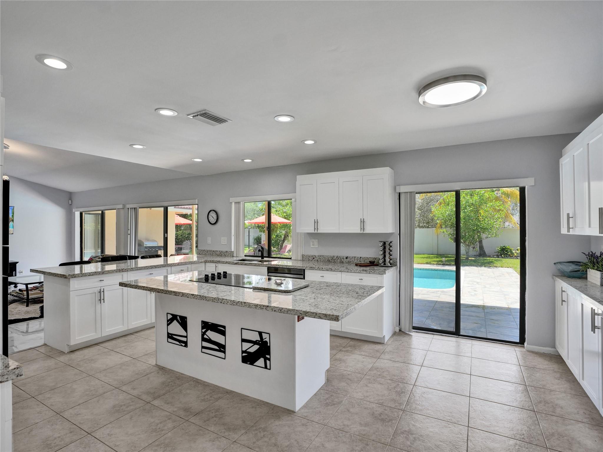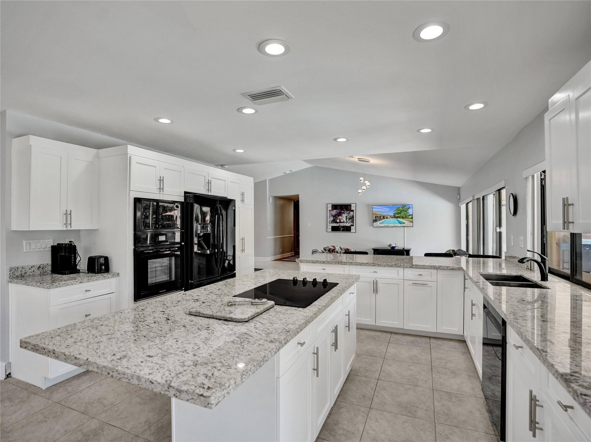 Motivated Seller has reduced the price! Beautifully updated with leveled flooring, (no step-down) updated kitchen cabinets, new countertops, new electric box wiring, replaced plumbing pipes. New exterior paint, new vanity in guest bath. Thermal fan in hallway, wired generator, solar water heater BRAND NEW A/C and refrigerator!! Come see this lovely pool home with circular driveway, hurricane rated decorative entry doors, impact windows. Sliders have panels. Vaulted ceilings. Big kitchen with tons of storage overlooks open pool and covered outdoor sitting area. Flat roof installed 2019. 3 patios make the most of outdoor living! Appliances new within the last few years -AND American Home Shield warranty free to buyer! You'll fall in love with this gorgeous, well maintained home.