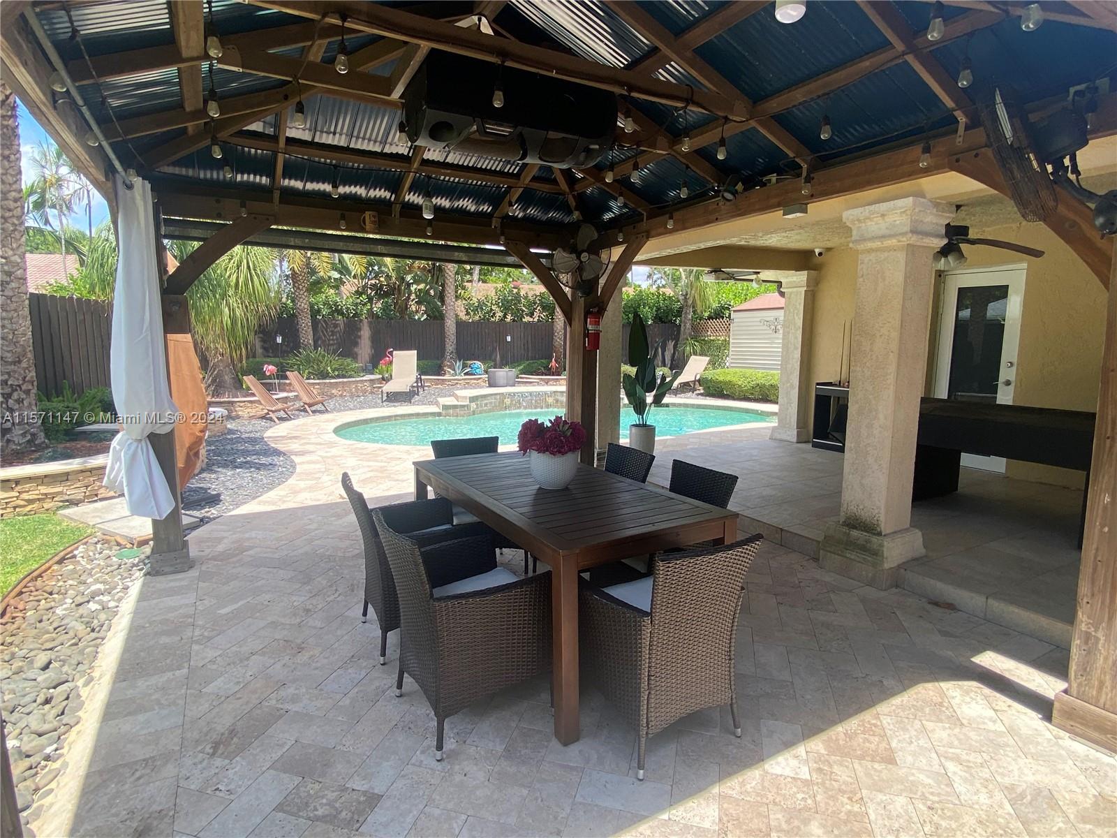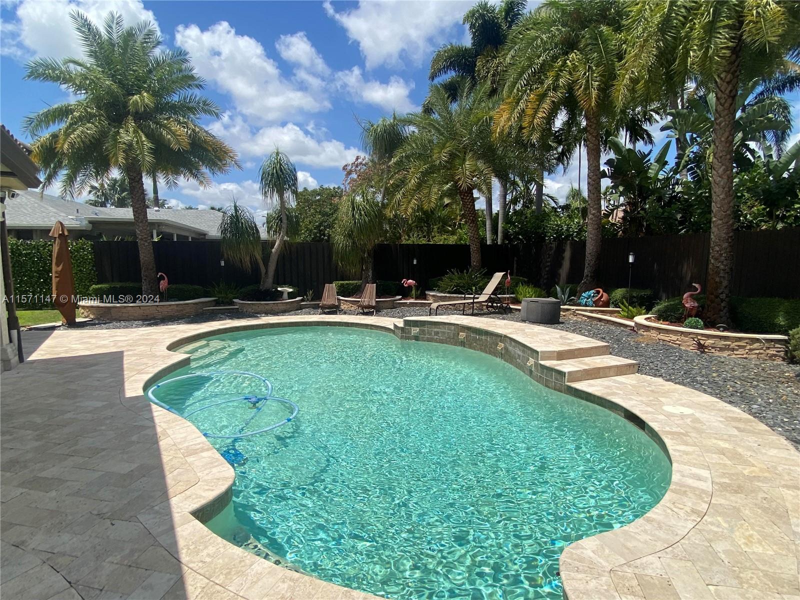 Immerse yourself in luxury living with this designer's dream house. This completely remodeled four bedroom split floor plan home spares no detail, boasting a fusion of elegance and functionality. This immaculate home features complete impact windows and doors, brand new kitchen and appliances, and a spectacularly remodeled garage, all complemented by an 8 year old pool and a comprehensive security system wired throughout the house. Entertain in style within your own outdoor tropical oasis, next to the breathtaking pool with cascading waterfall. The expansive outdoor area is a true entertainer's paradise, featuring a stunning pergola with sound system, perfect for embracing the vibrant South Florida lifestyle. NO HOA FEES! Don't miss the chance to make this exceptional property your own.
