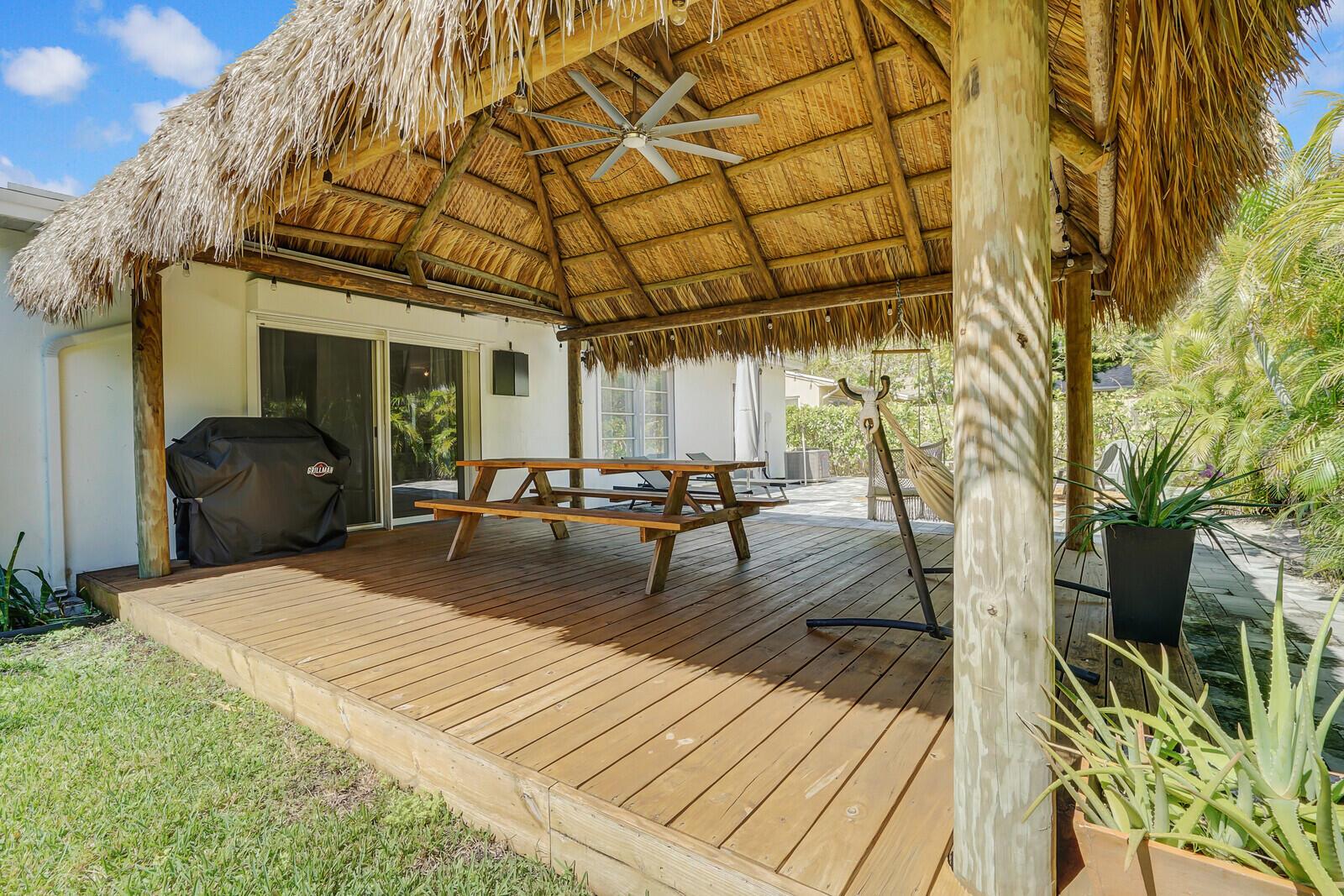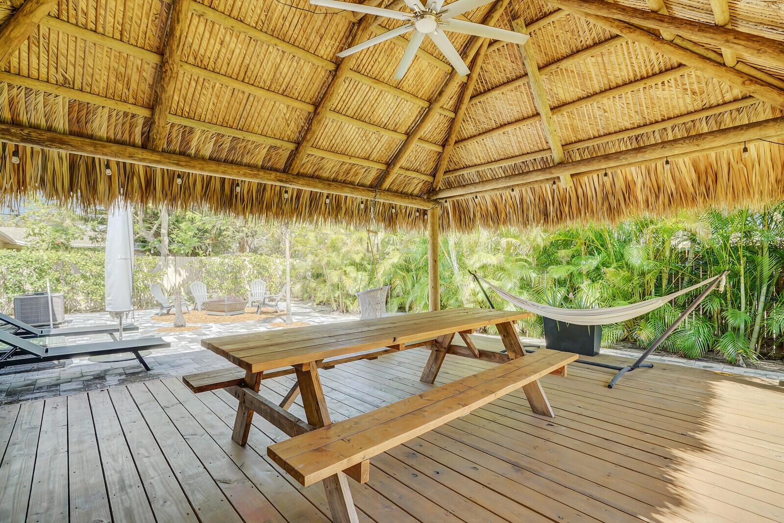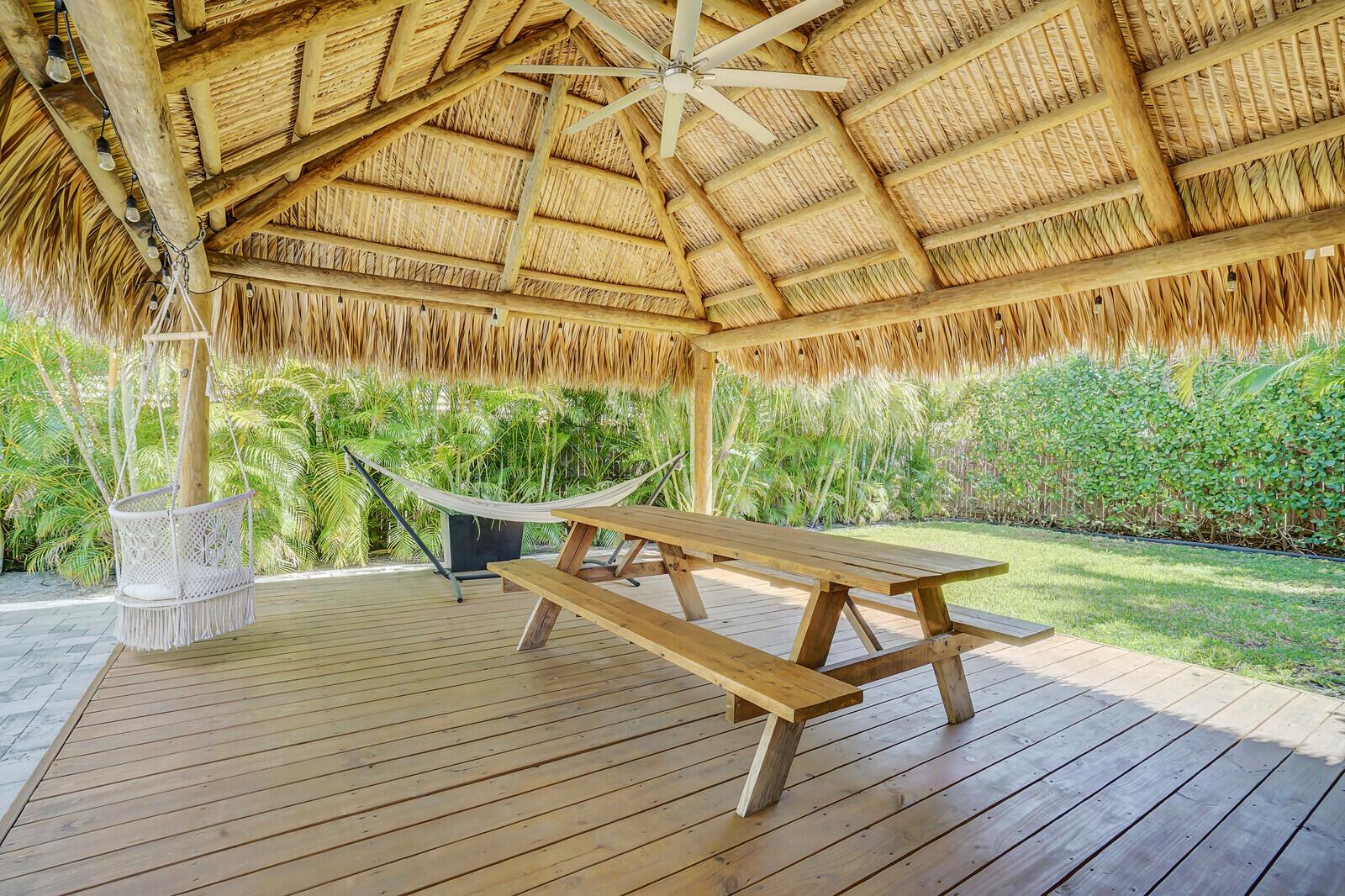 This charming two-bed, two-bath concrete block home offers a tranquil retreat on a quiet street in Old Northwood Harbor! Blending classic elegance with modern convenience. The inside of the property features original terrazzo floors that lead to a newly renovated kitchen featuring sleek appliances, roll down hurricane shutters on most windows with new 2020 roof, water heater, and air conditioner ensure peace of mind. This residence combines comfort and convenience with ceiling fans, a smart lock, and a new sprinkler system, while the freshly painted interior and exterior. Step outside to a freshly decorated backyard with a charming tiki hut, perfect for entertaining or relaxation. Completely fenced in yard, beautifully landscaped, a one-car garage and a prime location near downtown.