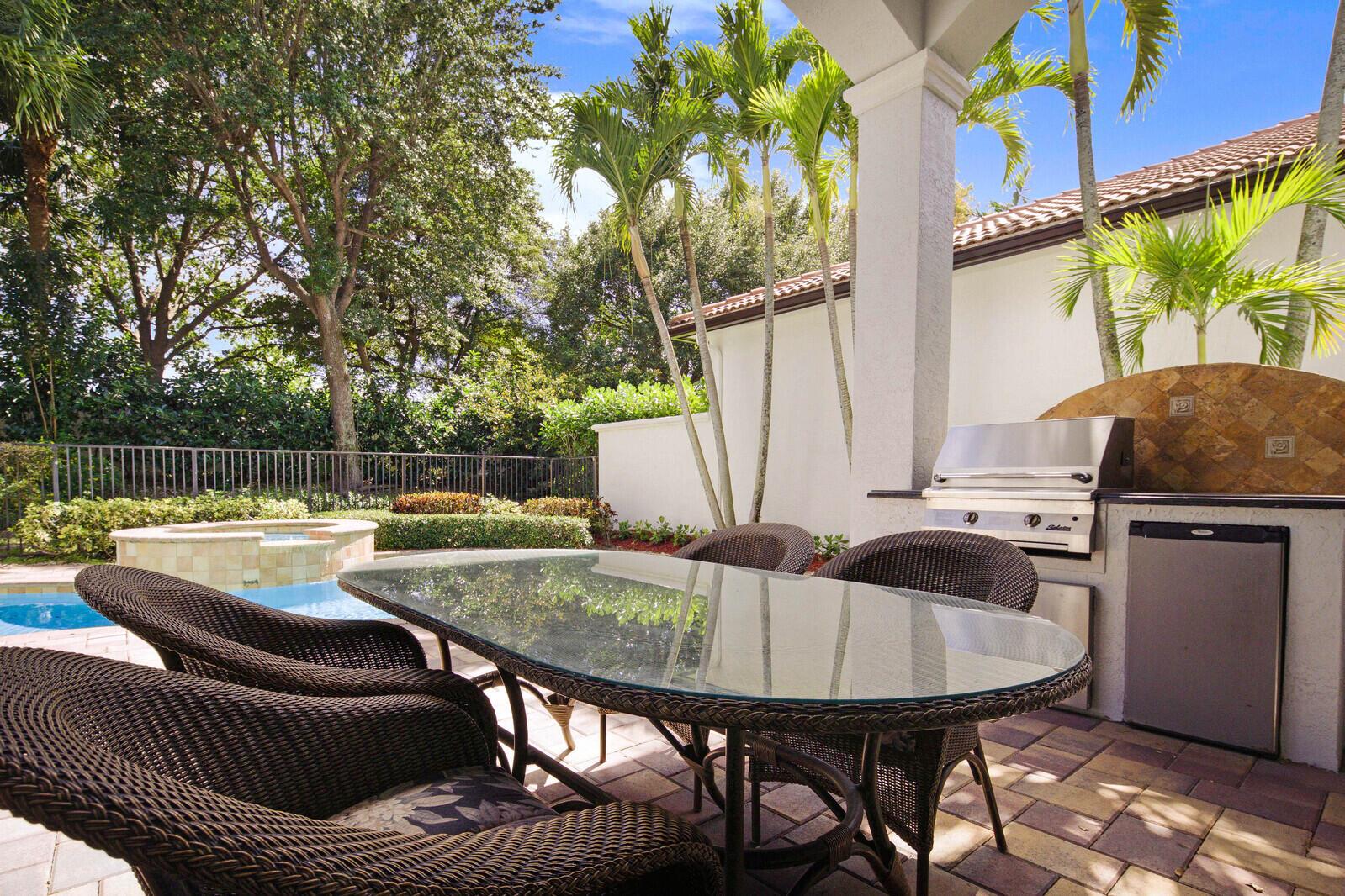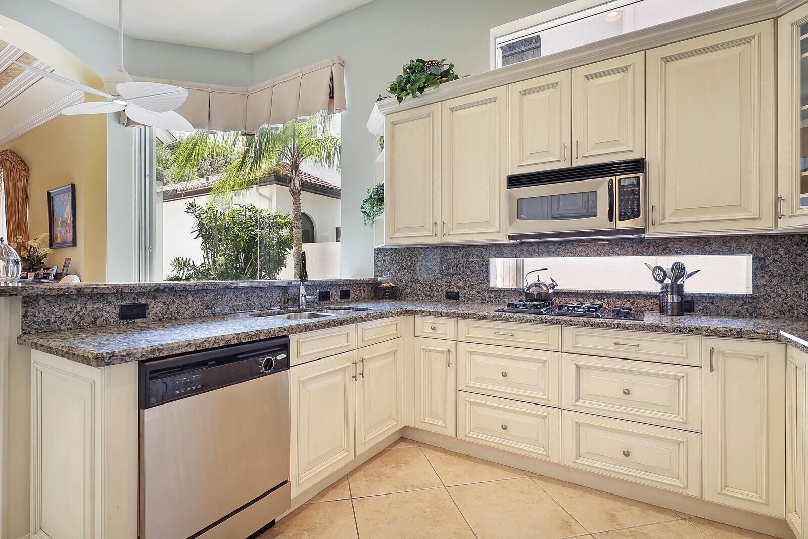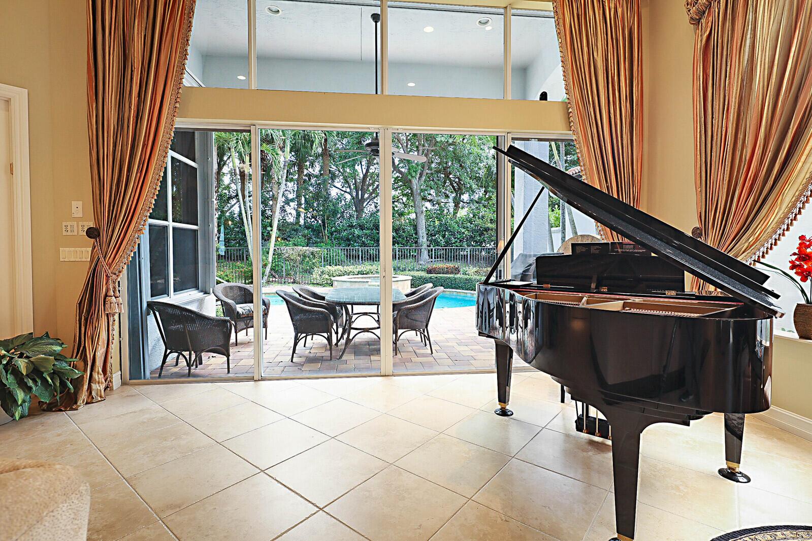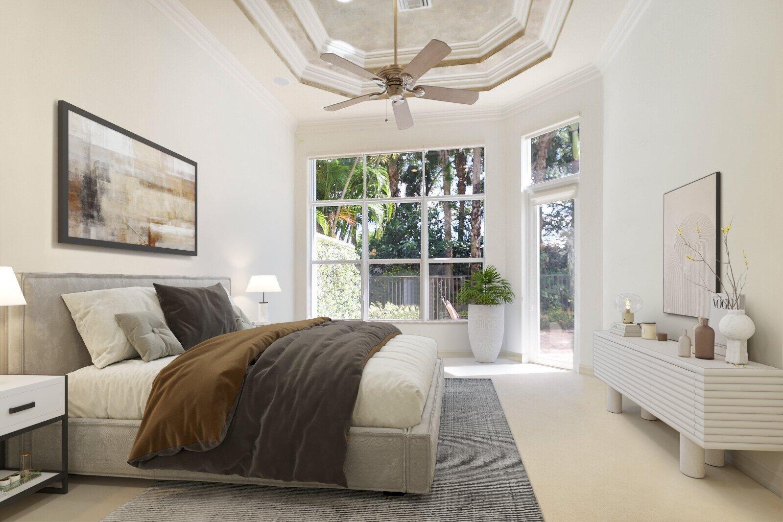 Experience understated elegance in this rarely available one story 3 bedroom, 3 bathroom, complete with a home office. The spacious layout features a split floor plan, volume ceilings with stunning detailing, crown molding, bespoke millwork and a custom bar and wall unit. The home is perfect for gracious living and entertaining with its open floor plan and sun drenched eat in kitchen with stainless steel appliances. Glass double doors open to a handsome home office with coffered ceilings an gorgeous backyard views. A beautiful and inviting master retreat features tray ceilings, custom walk in closet and a luxurious master bath with dual vanities, glass enclosed shower and soaking tub. Relax and entertain in your own newly landscaped backyard oasis featuring a covered lanai, summer