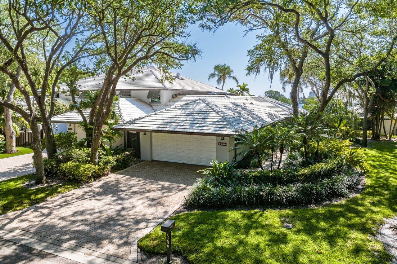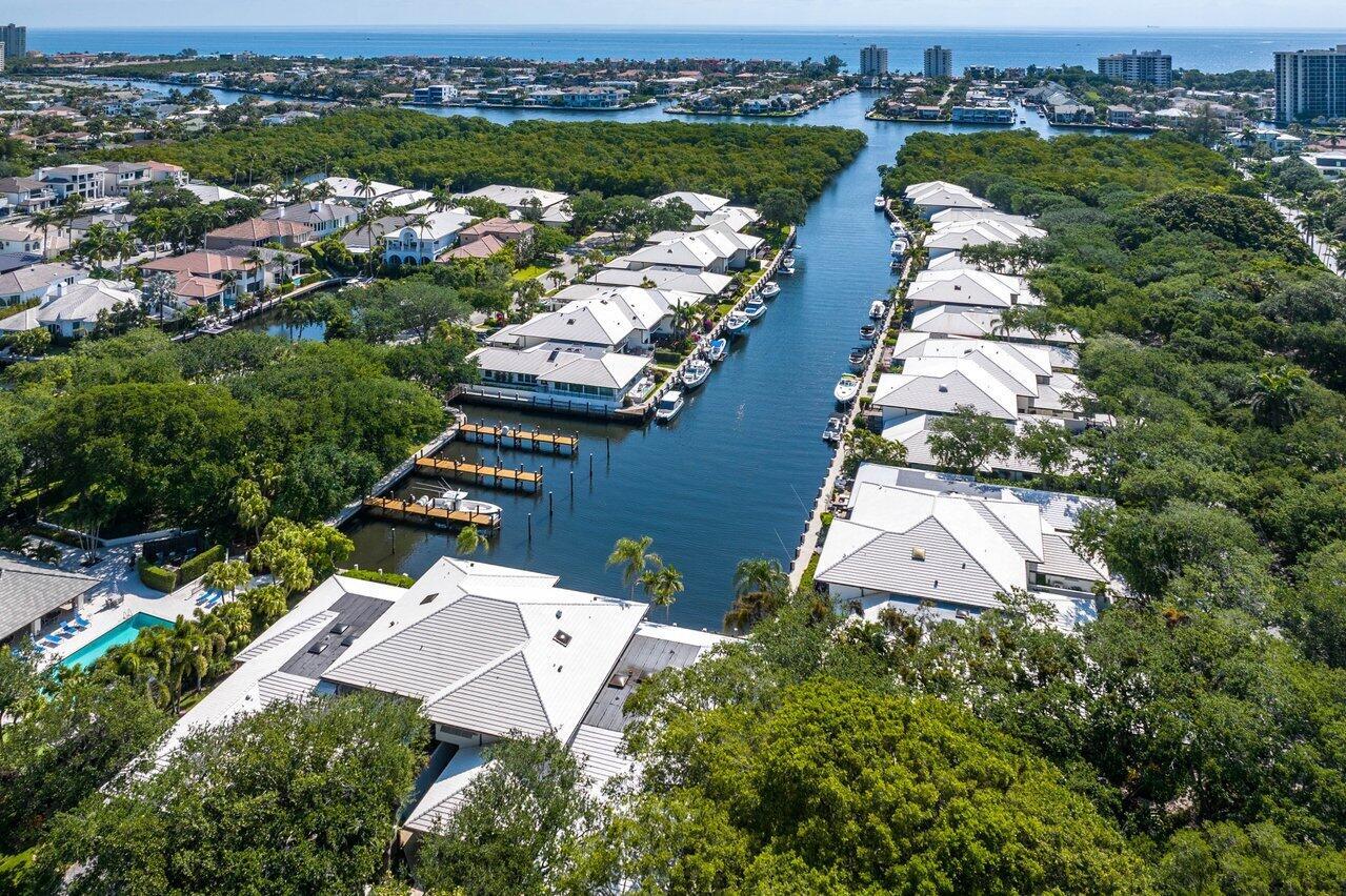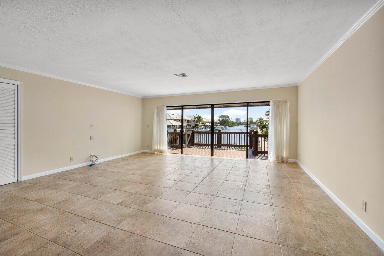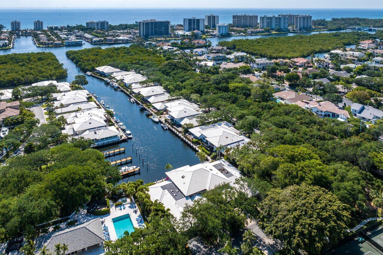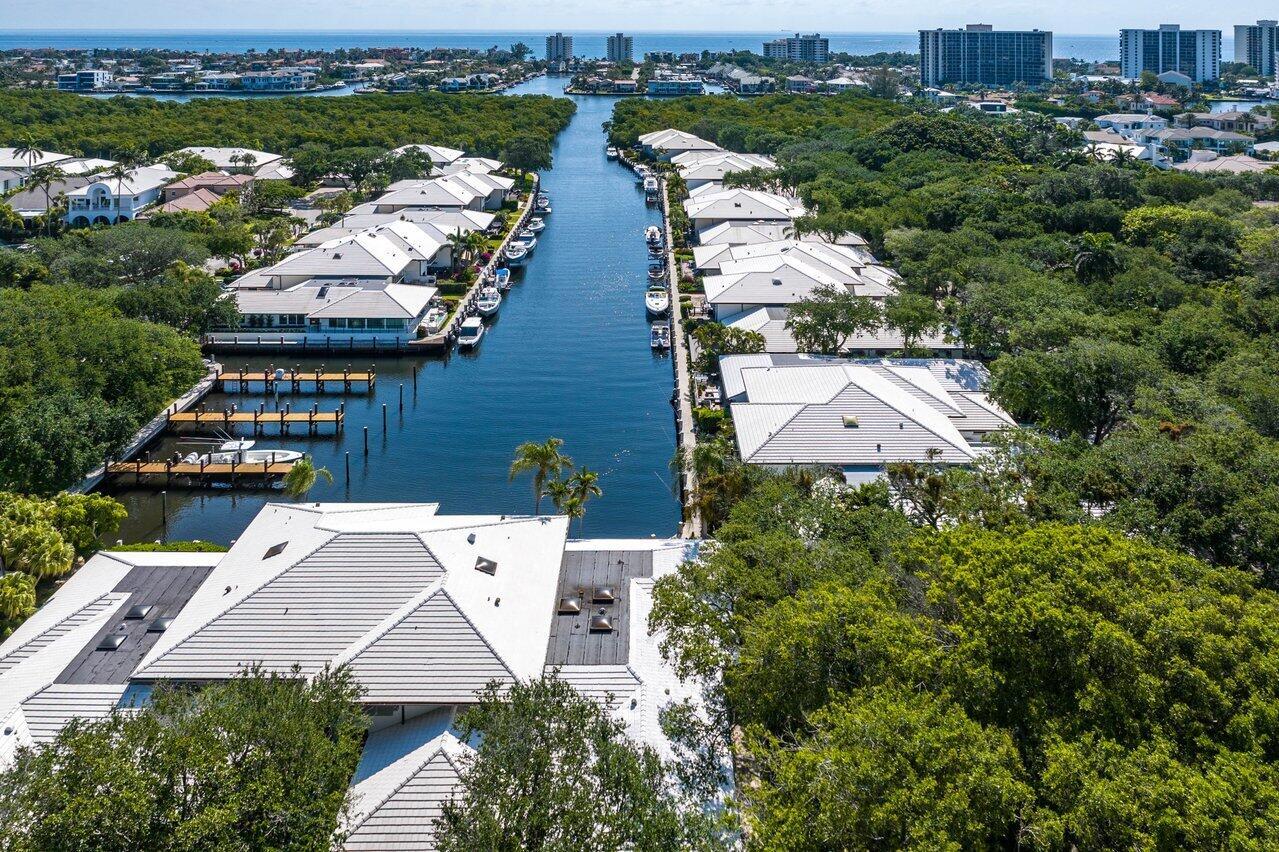 The best water views in Boca Marina Yacht Club. Your private 60' dock allows you to experience the ultimate waterfront lifestyle living in this hidden gem nestled in a lush paradise. This exclusive community boasts deepwater access with no fixed bridges, providing seamless ocean navigation. Revel in breathtaking water views and the convenience of your own private 60' dock, fulfilling every boater's dream.This exquisite 3-bedroom, 3-bathroom waterfront villa is situated on a spacious .23-acre lot adorned with stunning trees and meticulous landscaping. With endless potential, this villa awaits your personal touch to transform it into a masterpiece.