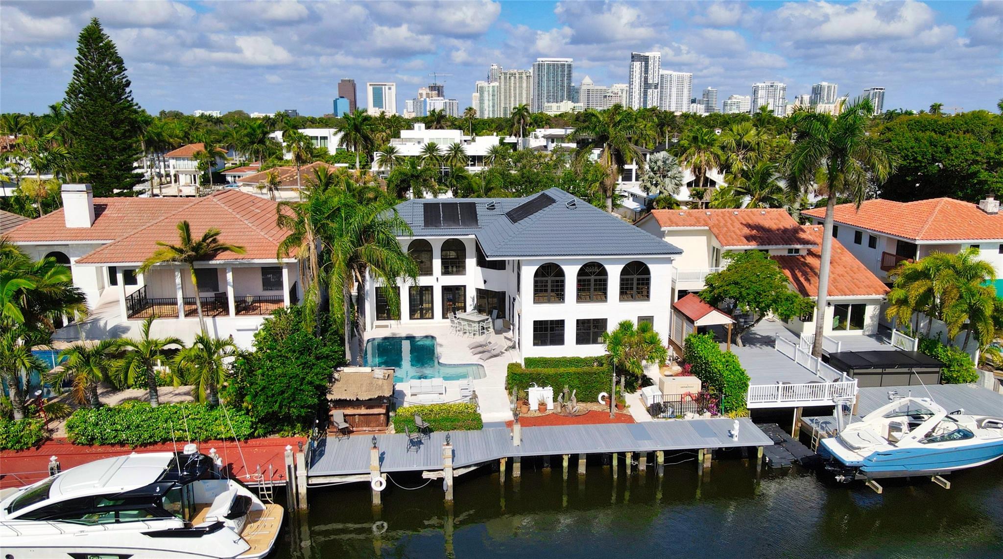 Sited on 70 ft +/- of Deepwater Dockage on the South side of Las Olas, offering quick access to Port Everglades by boat, this reimagined 5 Bedroom, 3 Full Bathroom, 1 Half Bathroom Coastal Residence boasts over 4,050 sqft of living space, with soaring ceilings, an open floor plan, and direct water views from every major room. Designed for entertaining, a grand living room leads to the open kitchen and waterside family room. French doors open to a large pool, jacuzzi, tiki bar/grill and new composite dock. Upstairs is dedicated to the owners suite, offering a huge bedroom with vaulted ceilings, nicely appointed master bath, a bonus loft or office, and a covered terrace with beautiful views down the canal. Other features include a cabana bath and a 2 car garage.